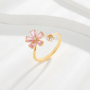 anillo de joyería estilo ins luz de lujo para mujer tridimensional simple circón rosa de alta calidad anillo para dedo índice en vivo modelo popular de Douyin