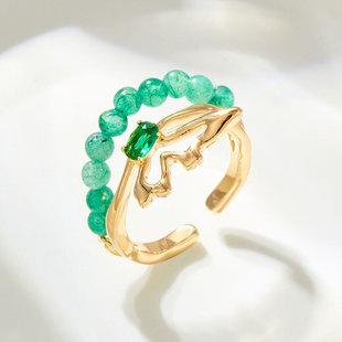 Nuevo anillo abierto de esmeralda de piedra natural con cuentas de estilo chino, nicho de lujo ligero, anillo de mariposa, anillo ajustable de moda