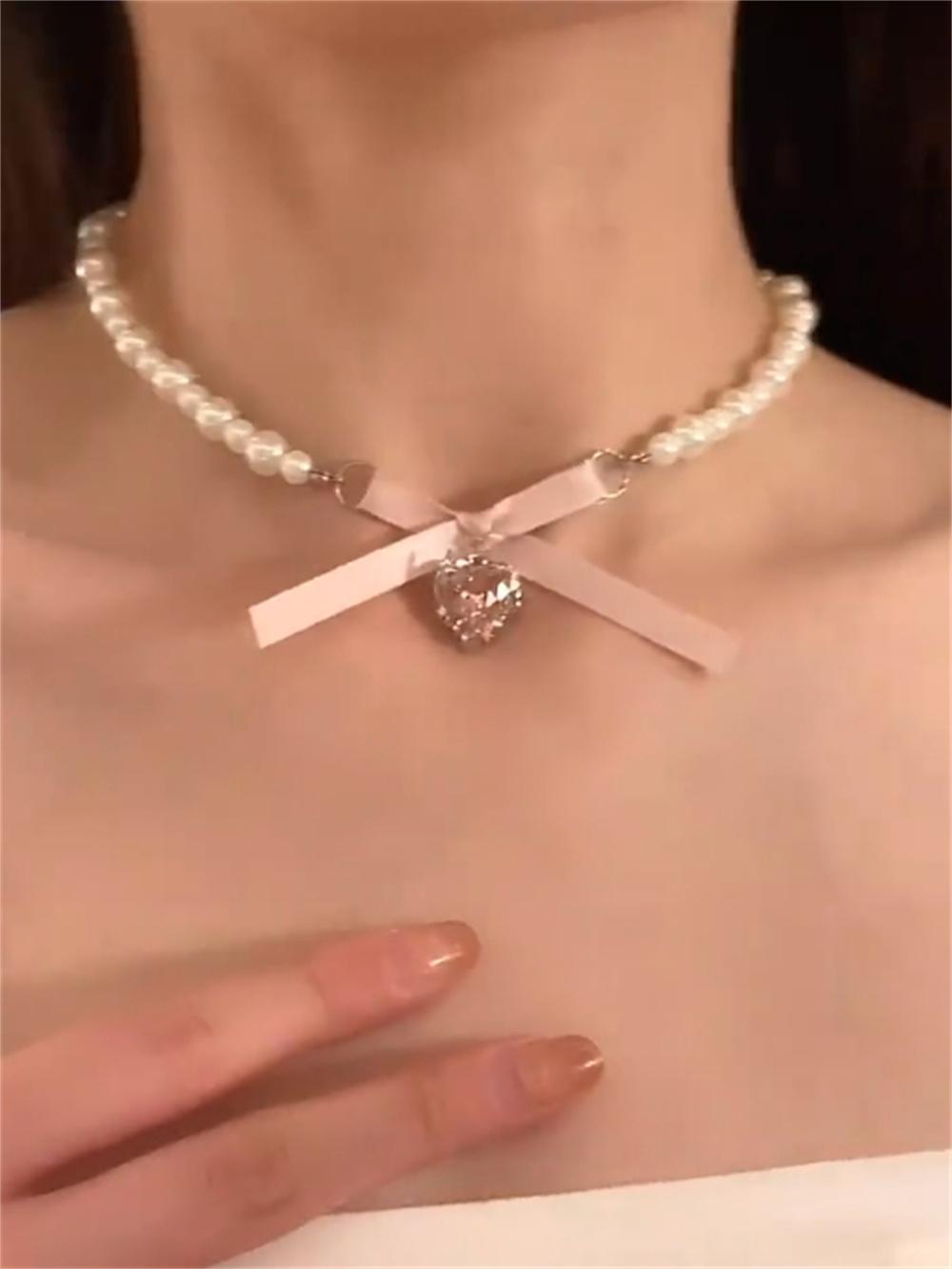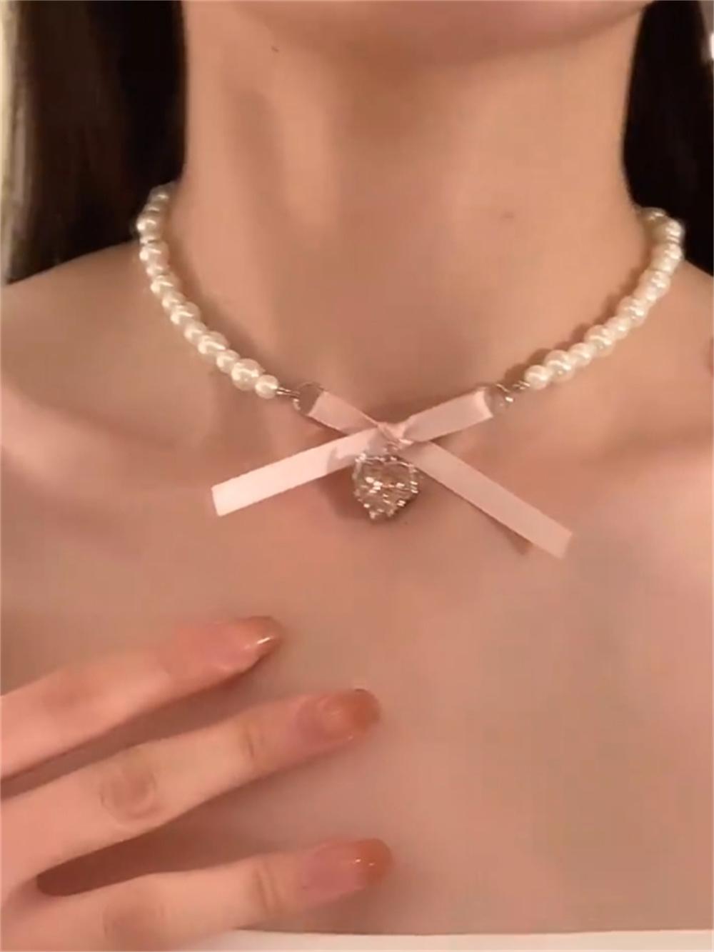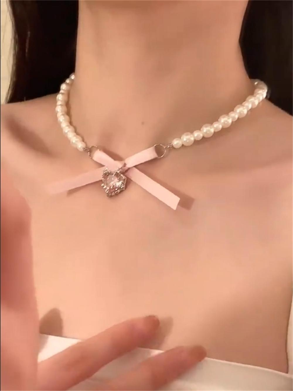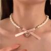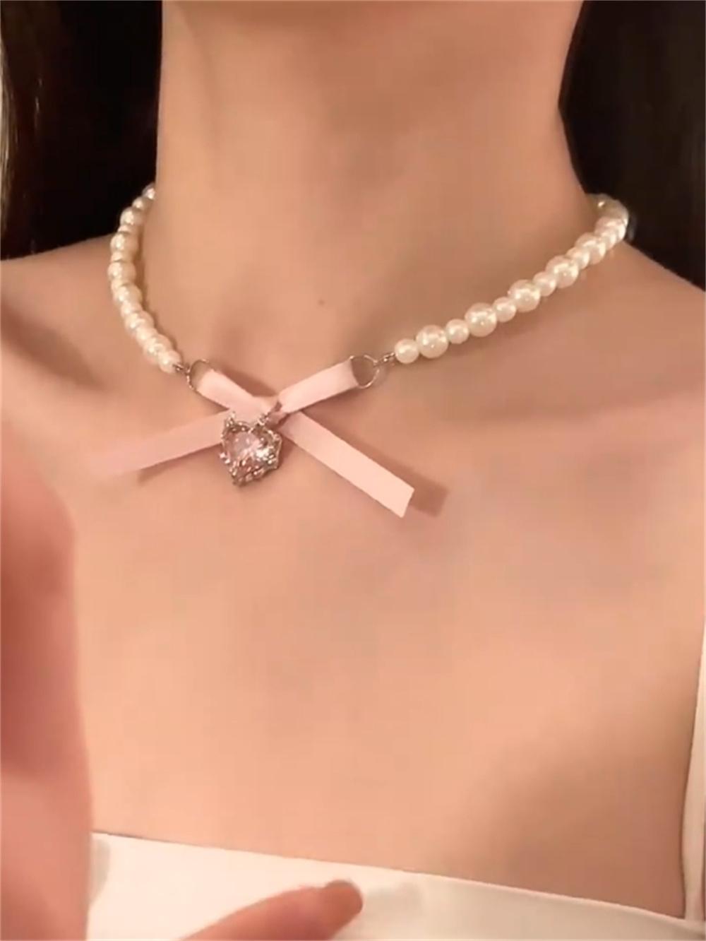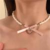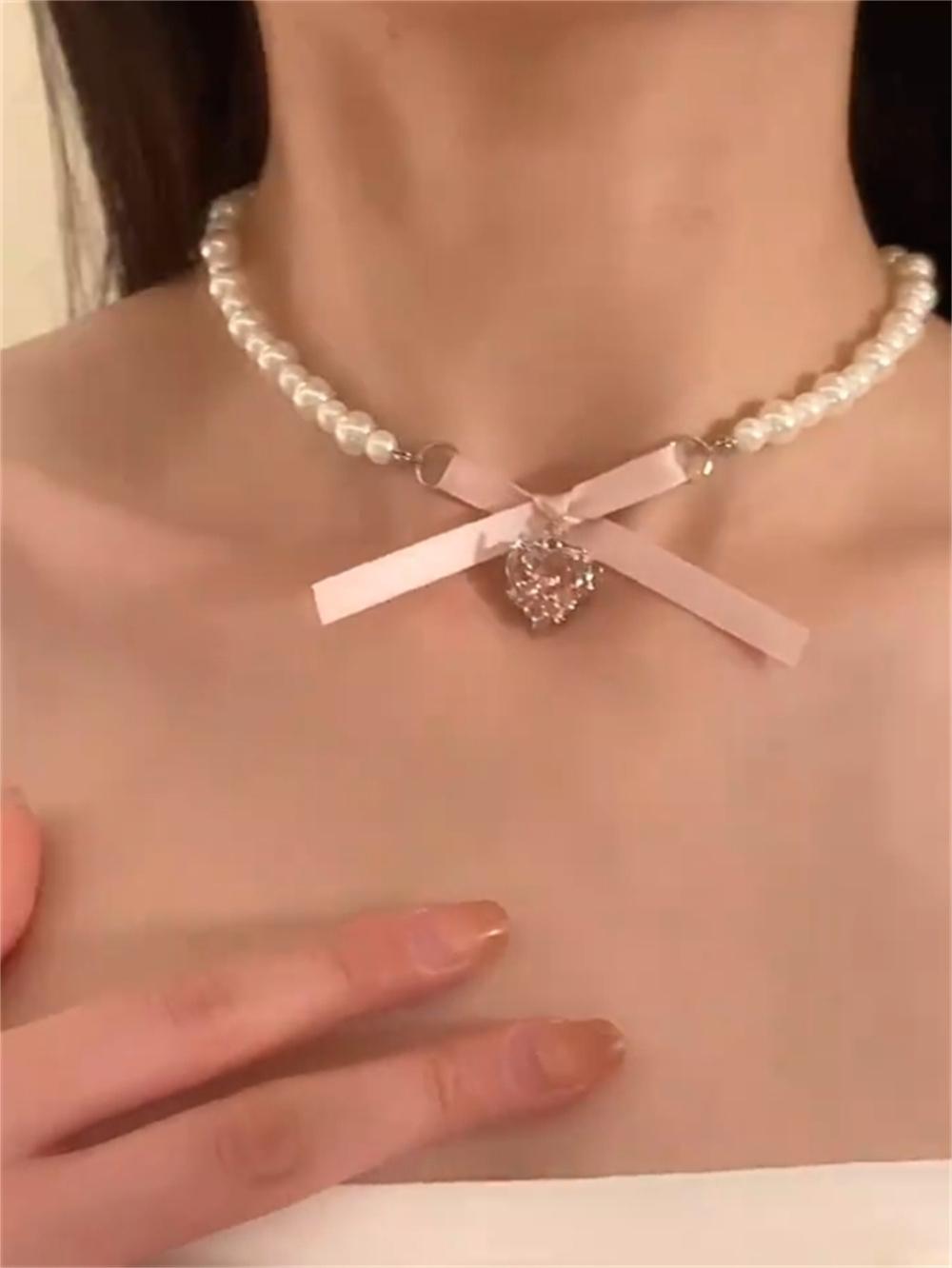 Escape Collar Princesa Lazo Perla Amor Collar Femenino Diseño Nicho Lujo Ligero Combinable Cadena Clavícula