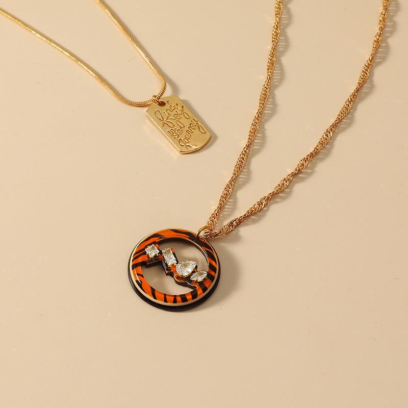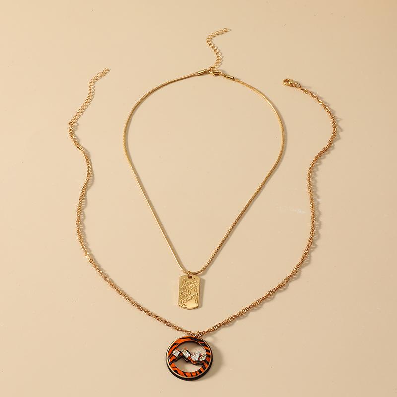 Collar de traje con etiqueta de metal creativo de moda simple, collar de resina redonda de 2 piezas nuevo europeo y americano