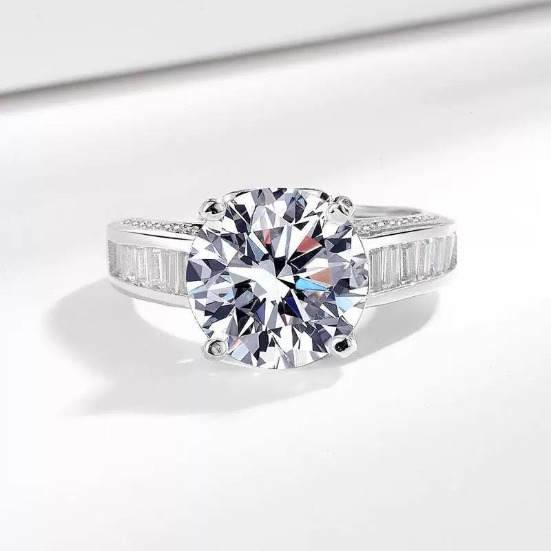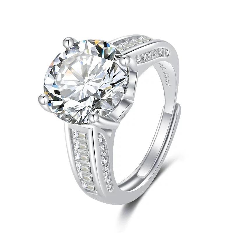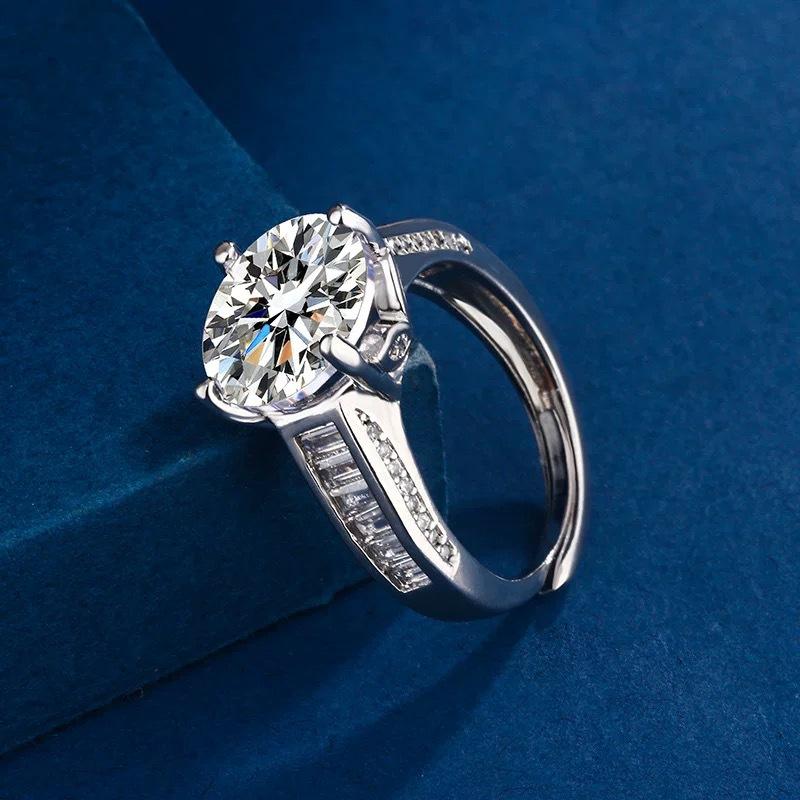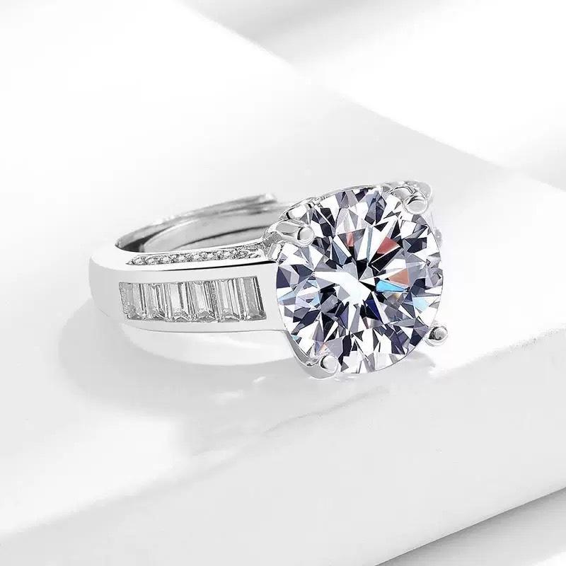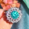 Sacudir el sonido de la transmisión en vivo transfronteriza Anillo de moissanita de imitación de 5 quilates hasta el final Flores Diamante de lujo Huevo de paloma Anillo de diamantes en vivo