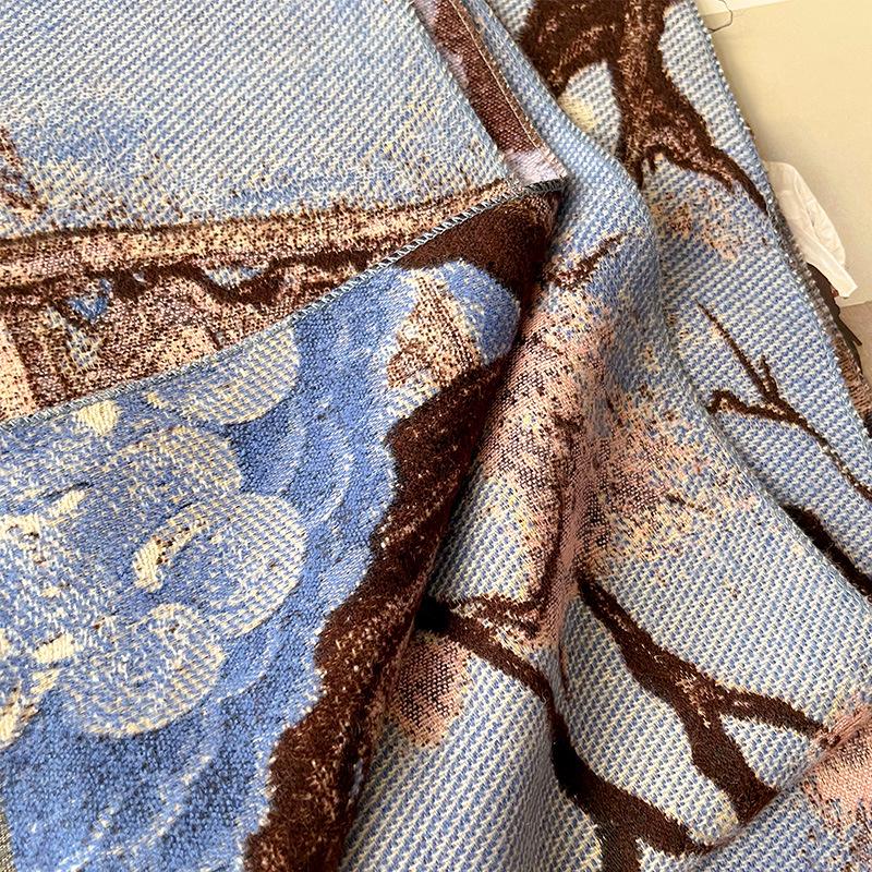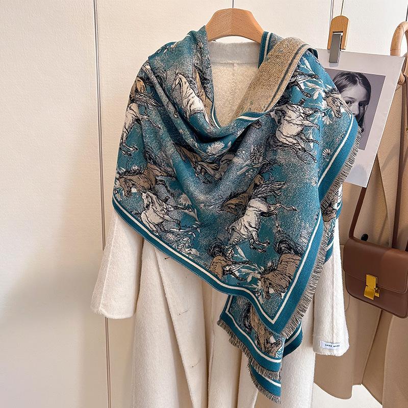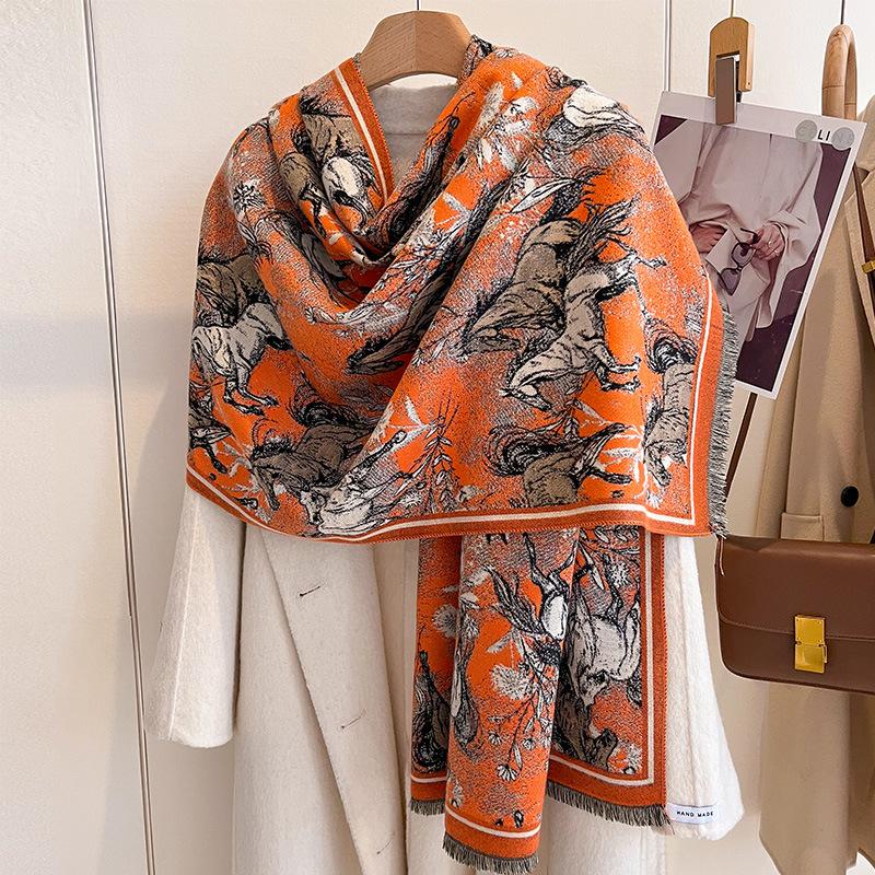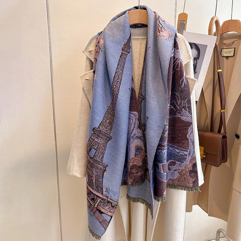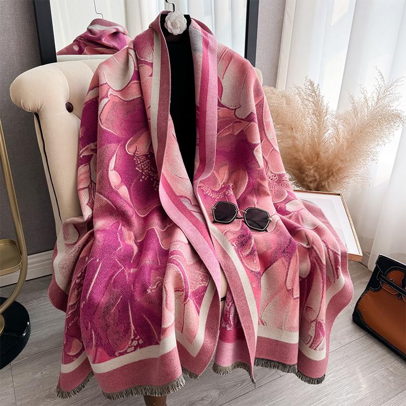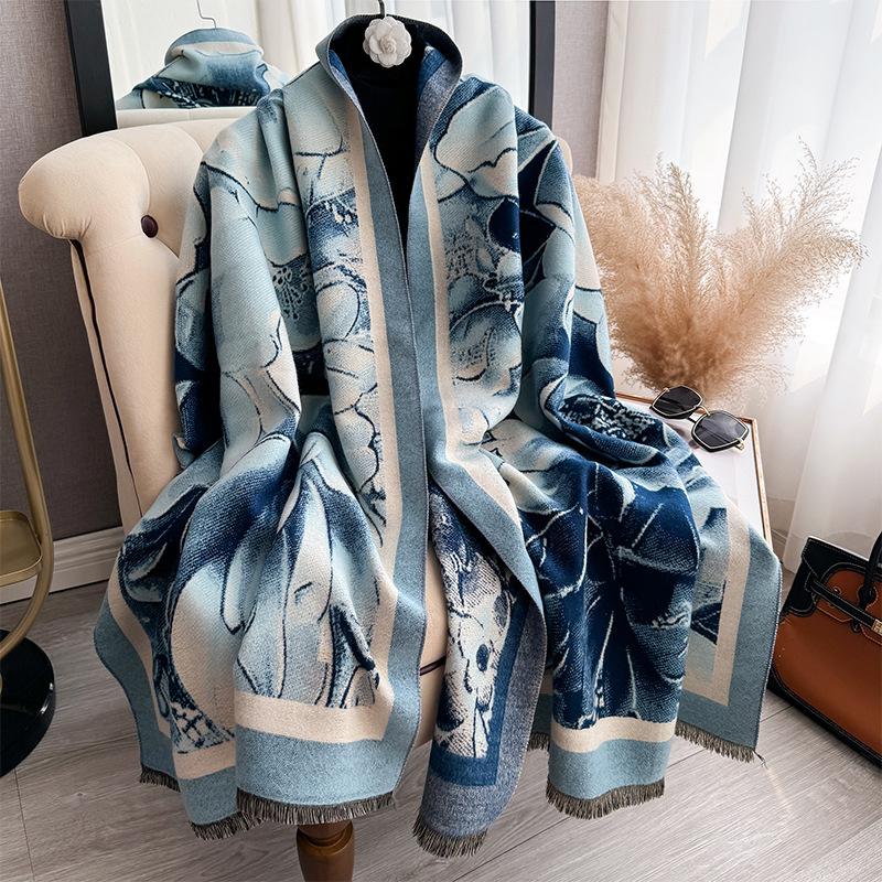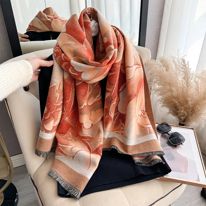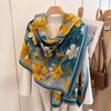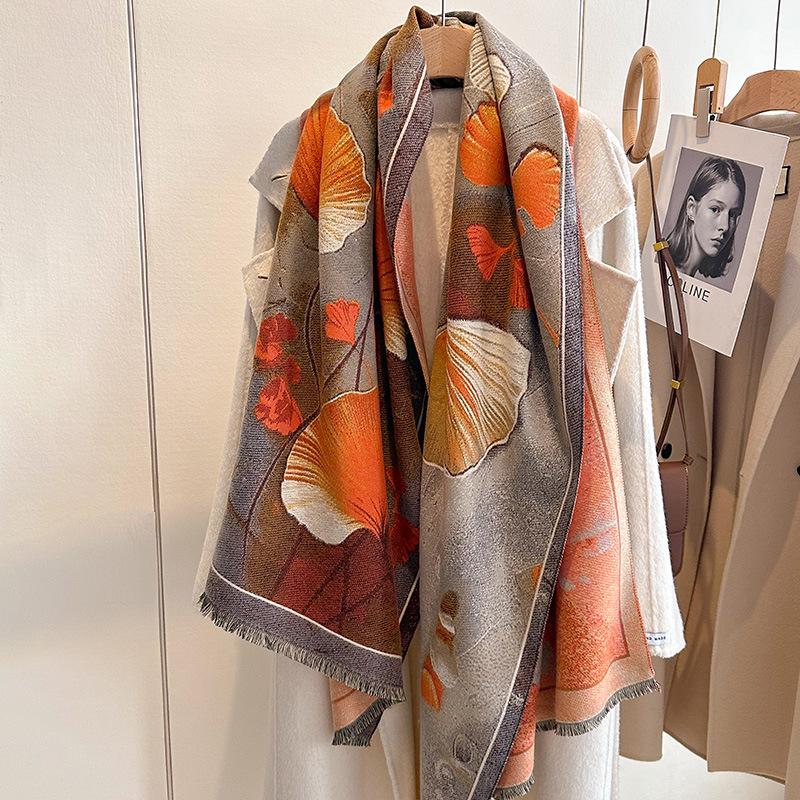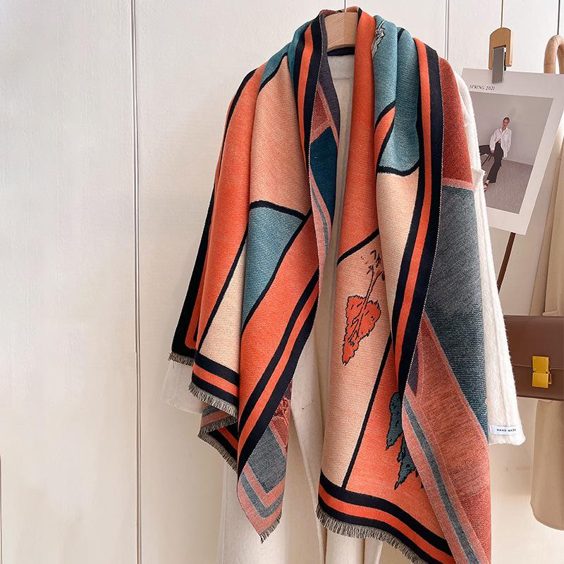 Otoño e Invierno Estilo Nacional Planta Flor Nuevo Estilo Pintura de Paisaje Elegante Bufanda Cálida de Imitación Cachemira para Mujer Moda Chal Vintage