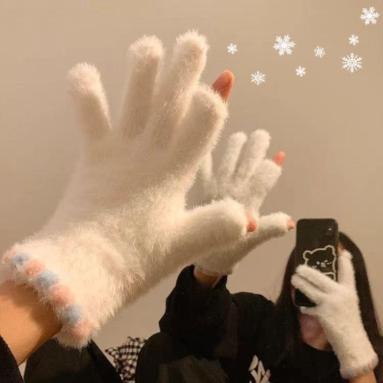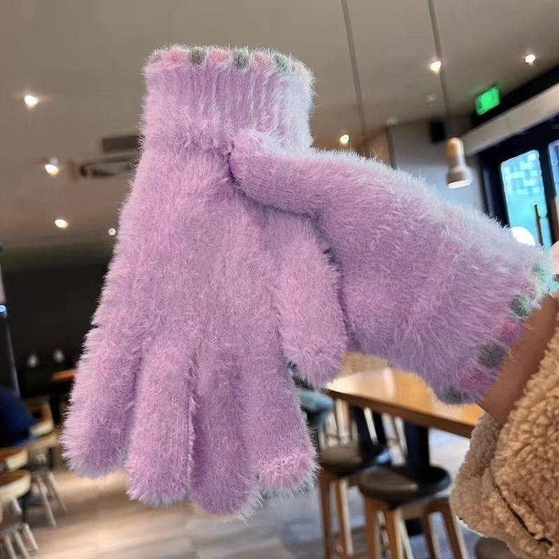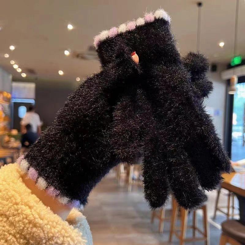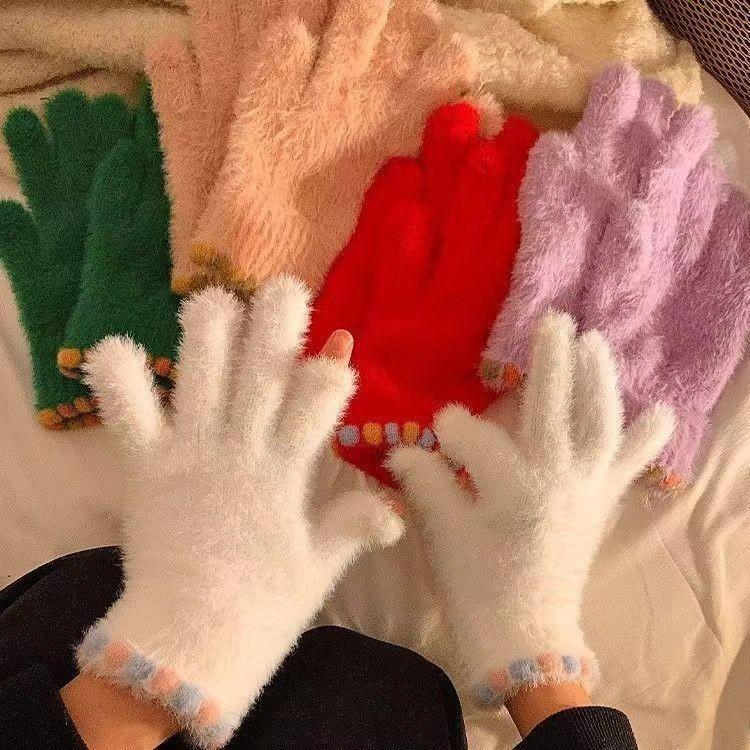 Guantes de felpa bonitos de estilo coreano para mujer, de otoño e invierno, gruesos, cálidos y resistentes al frío, para estudiantes.