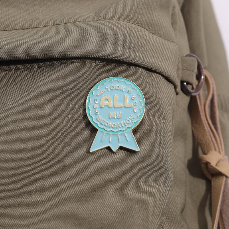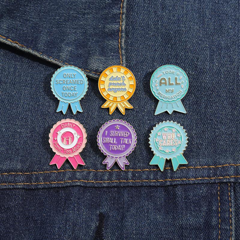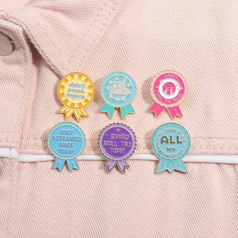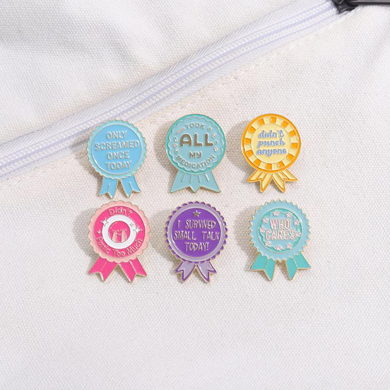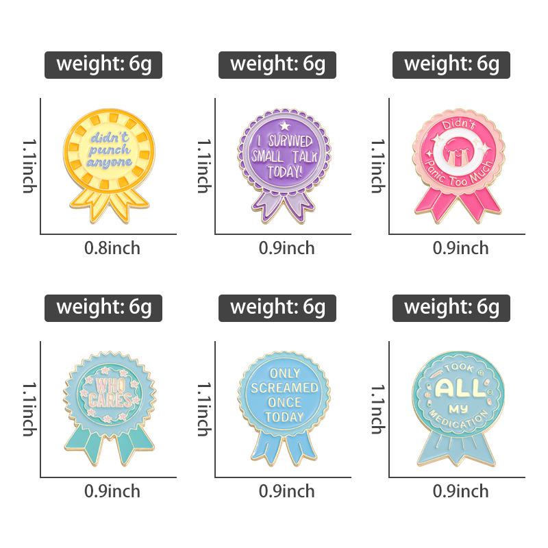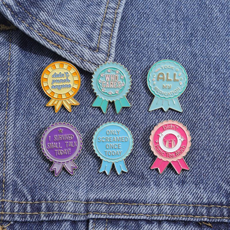 Broche de medalla con dibujos animados transfronterizos, accesorios creativos con letras, insignia de aleación con forma de medalla de color interesante
