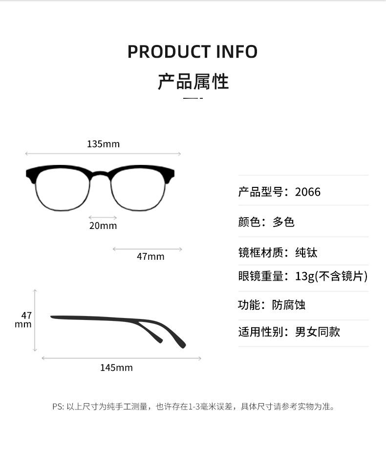 Gafas de titanio puro Danyang vintage para hombre con montura para miopía 2066, montura negra para mujer, montura avanzada para gafas.