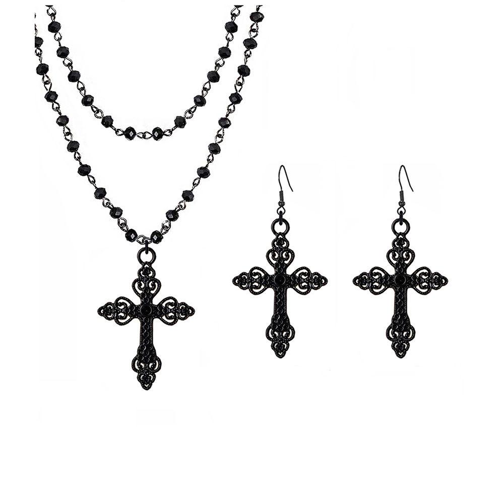 Collar cruzado retro multicapa estilo gótico europeo y americano con cruz oscura exagerada, accesorios de murciélago de Pascua y Halloween