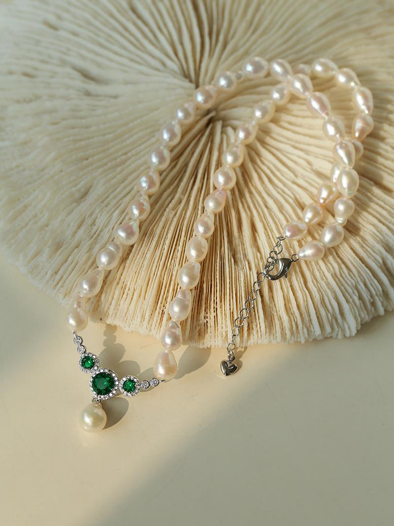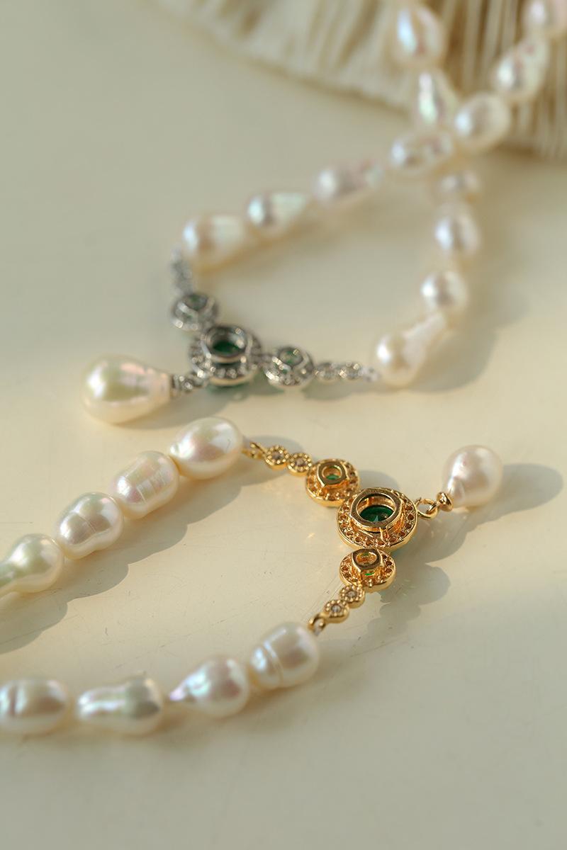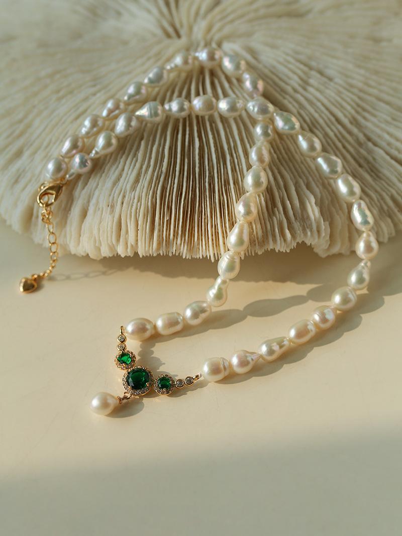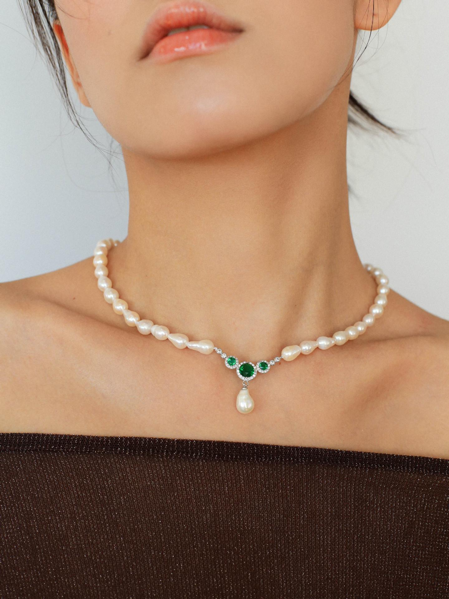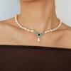 Collar de perlas barrocas con forma de gota de agua para mujer, elegante collar de perlas de circonita verde de estilo europeo y americano.