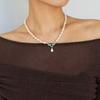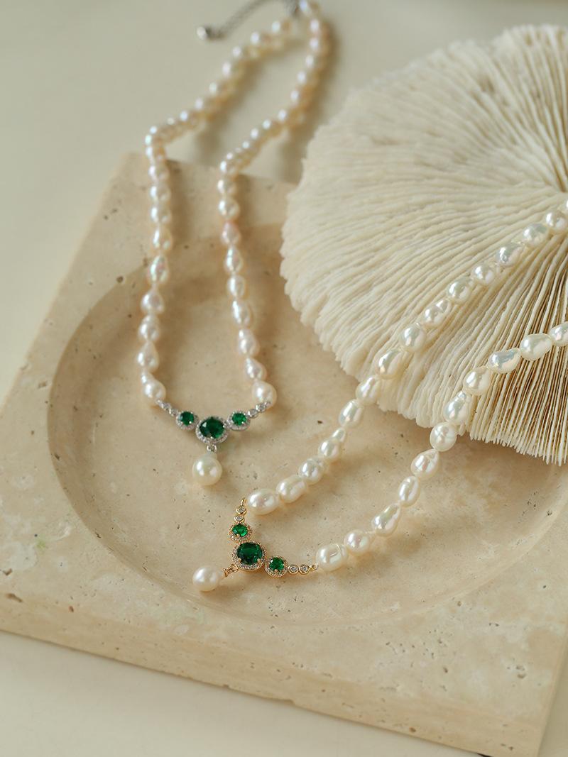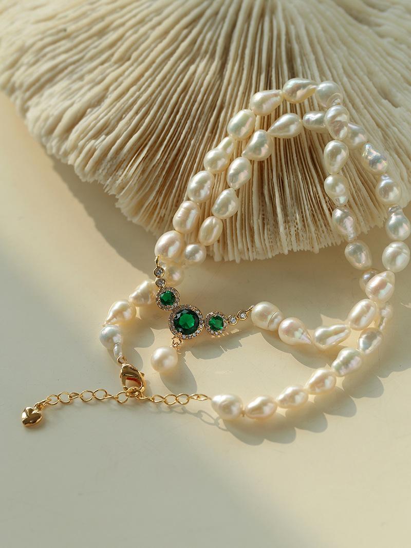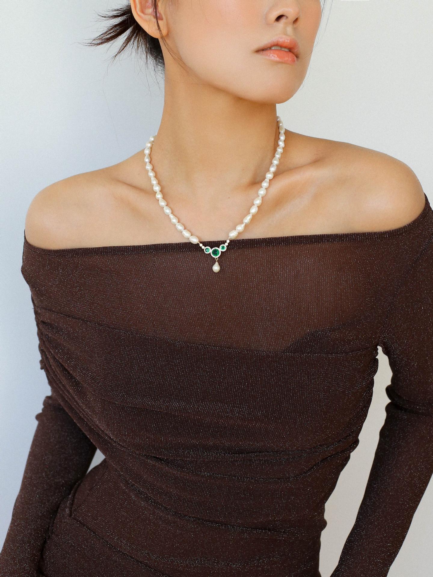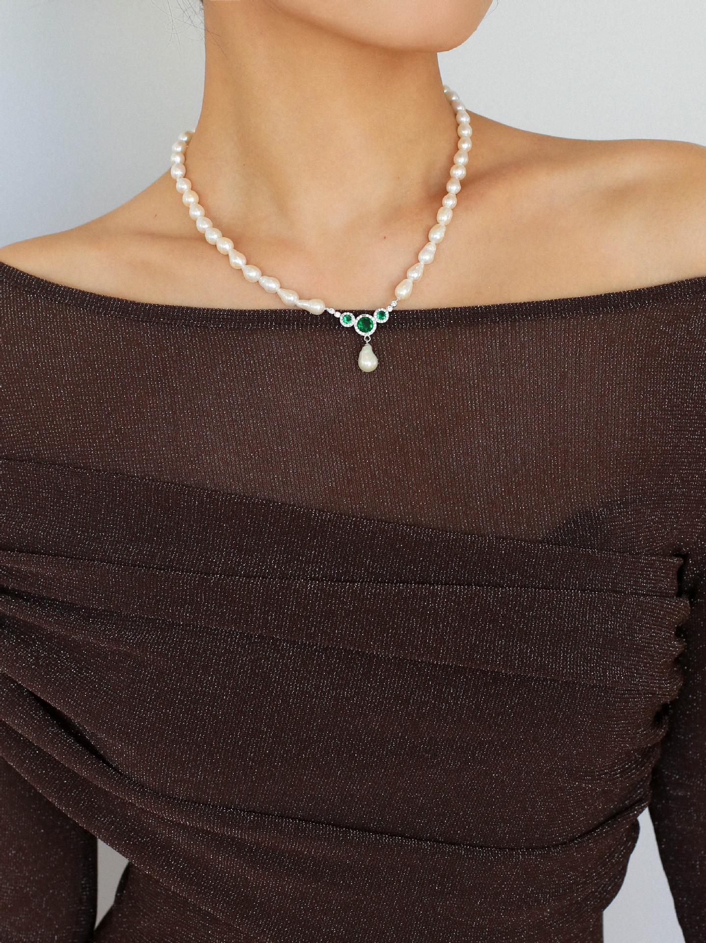 Collar de perlas barrocas con forma de gota de agua para mujer, elegante collar de perlas de circonita verde de estilo europeo y americano.