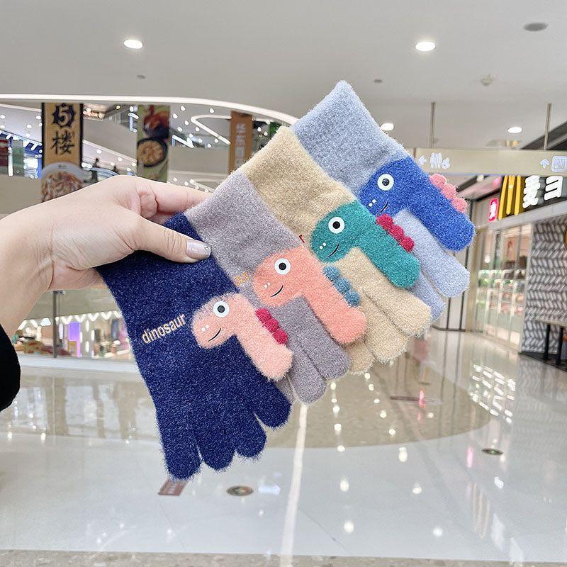 Guantes cálidos de cinco dedos para niños, estudiantes, invierno, resistentes al frío, para niños grandes, otoño e invierno, de 8 a 12 años, con dedos engrosados.