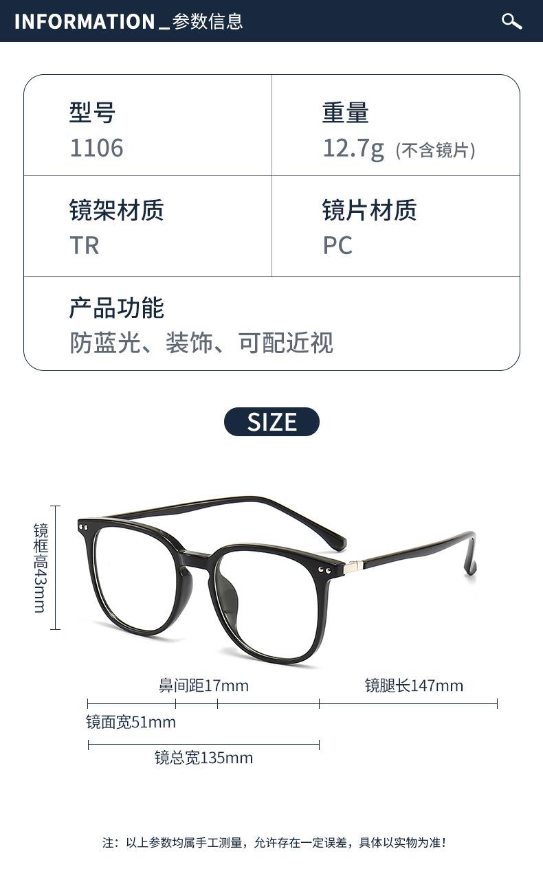1106 Cyber Celebrity - Gafas de montura ovalada TR90 antiazul para mujer, estilo liso, montura plana mixta, venta al por mayor