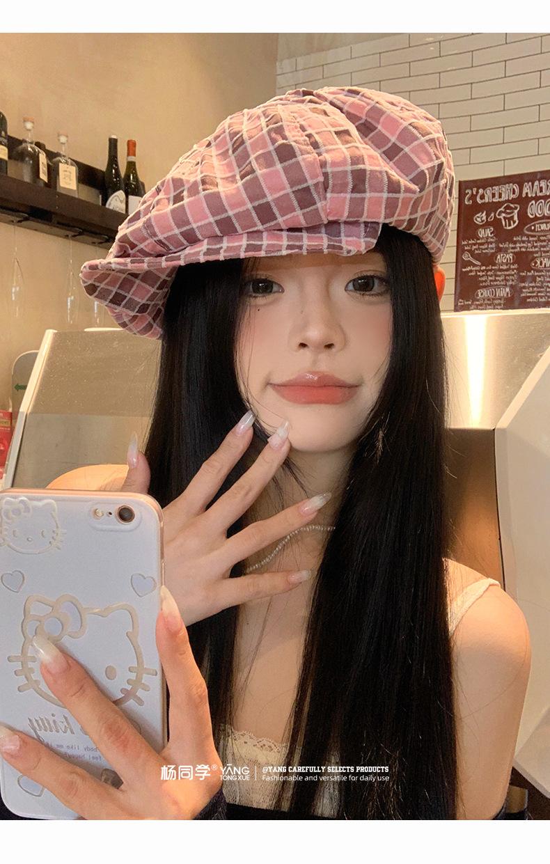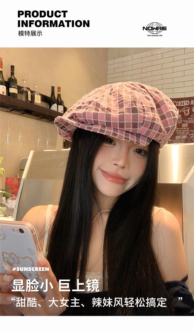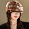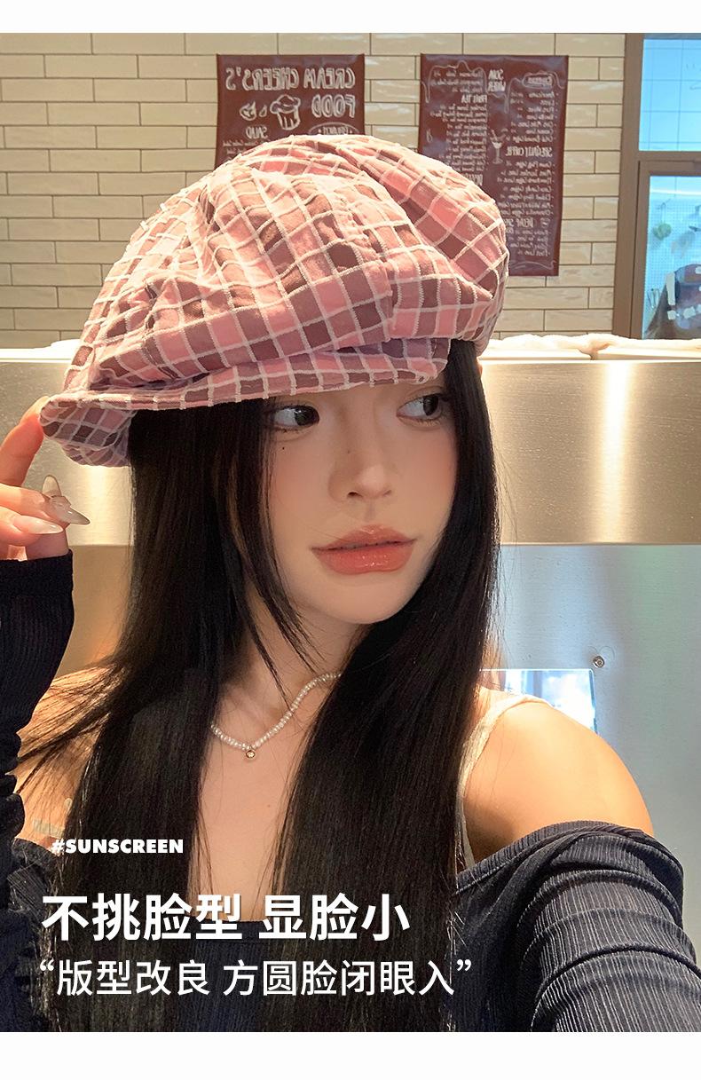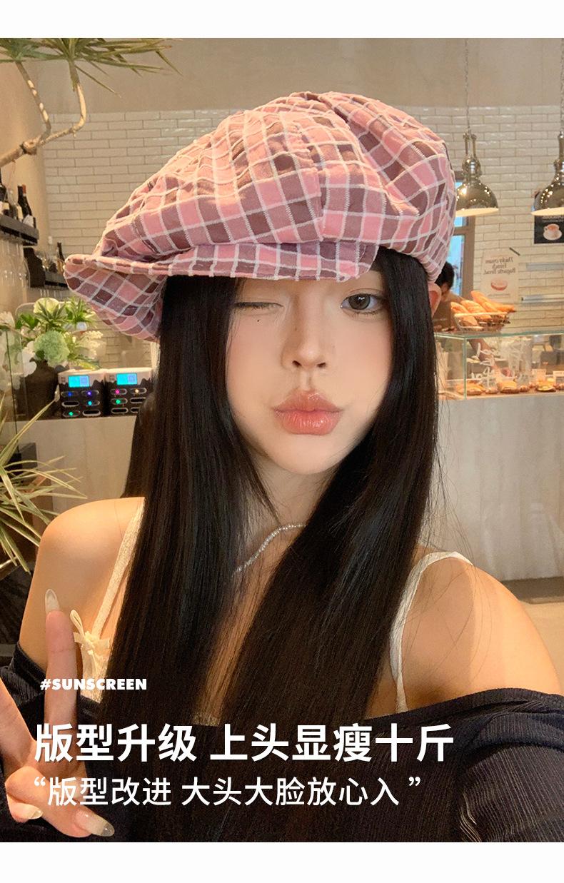Yang Classmate Selección Estricta Boina de Cuadros para Mujer 2024 Nueva Combinación Total Rostro Pequeño Sombrero Newsboy Ala Ancha Protección Solar Sombrero Sin Pintura