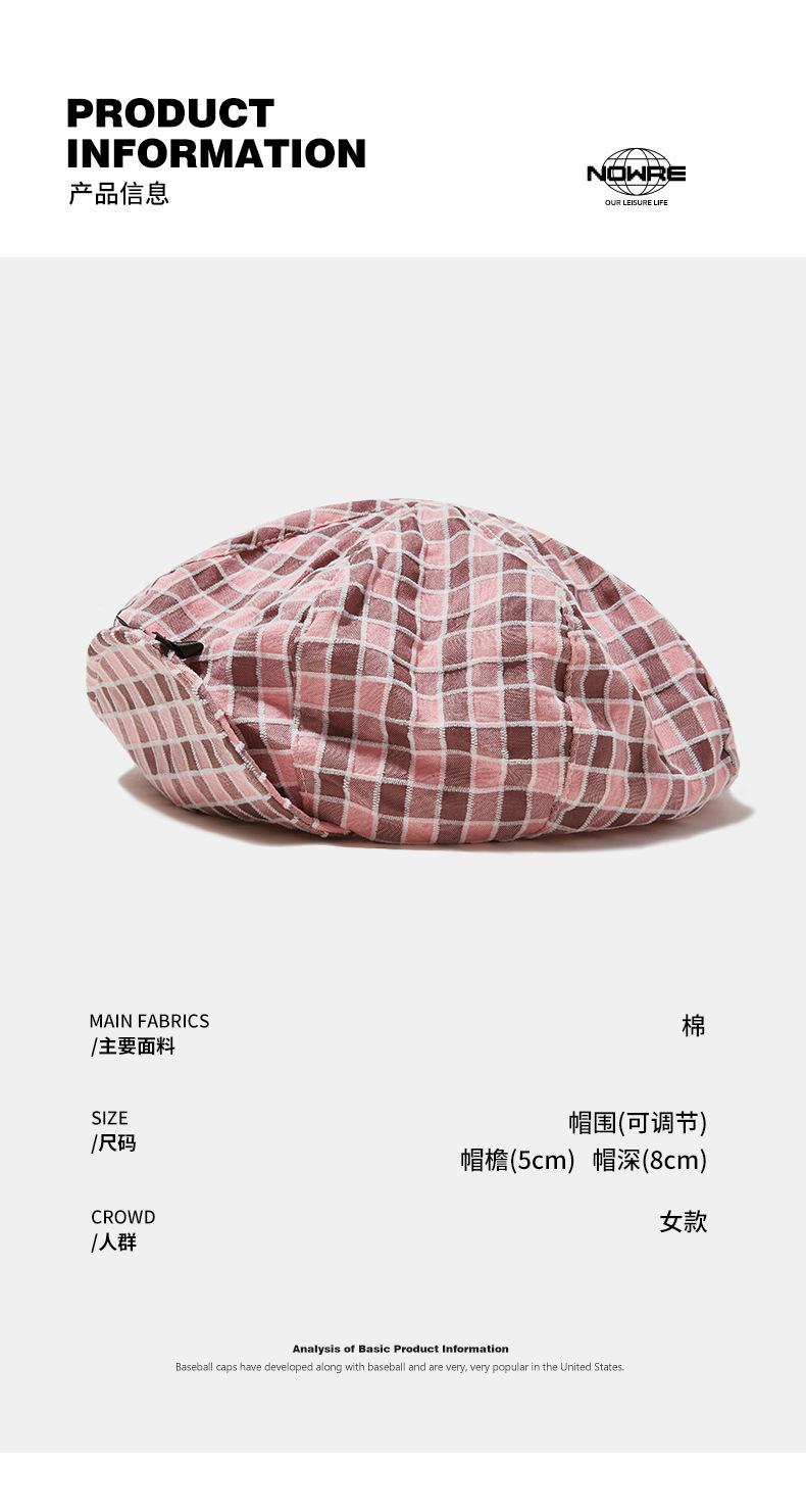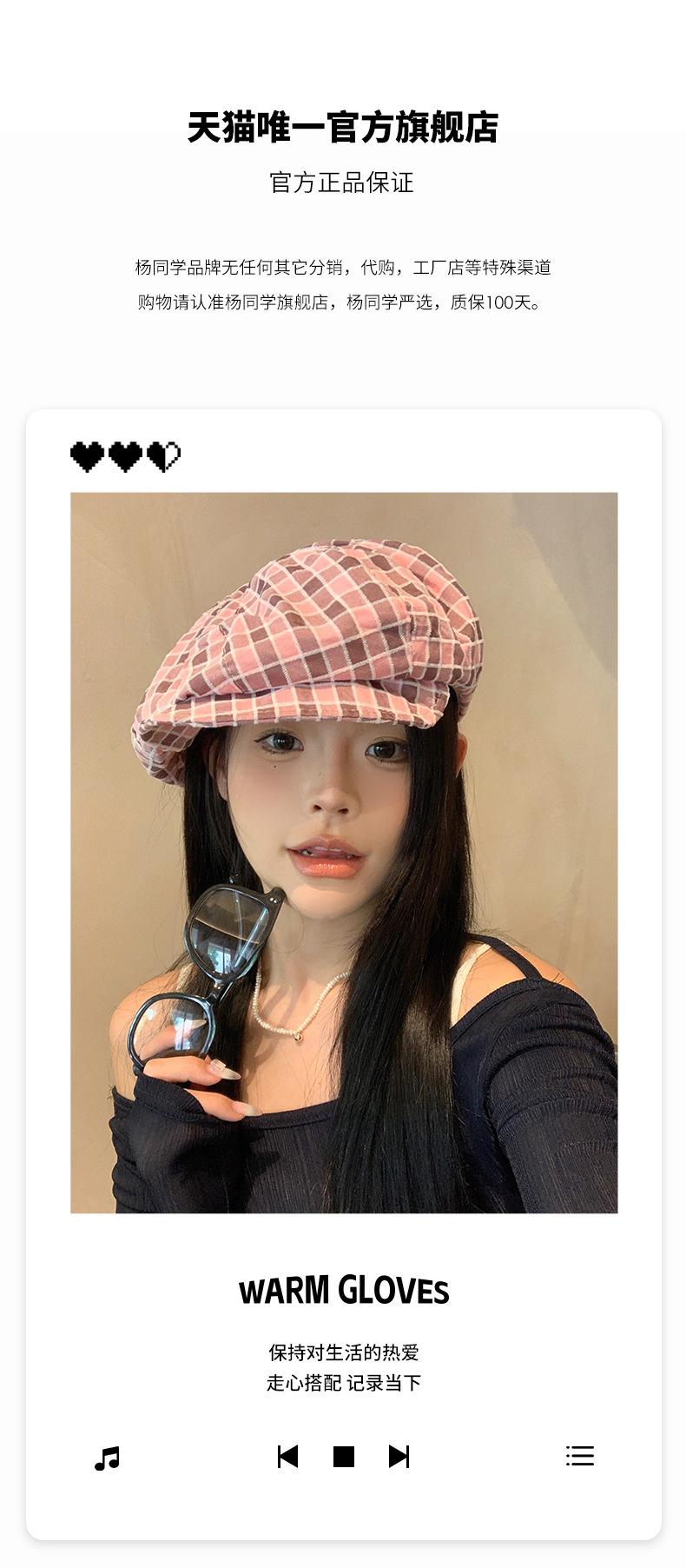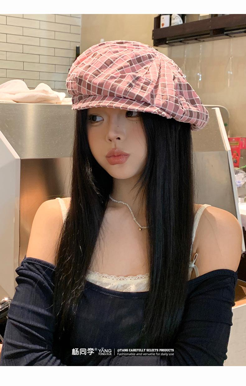 Yang Classmate Selección Estricta Boina de Cuadros para Mujer 2024 Nueva Combinación Total Rostro Pequeño Sombrero Newsboy Ala Ancha Protección Solar Sombrero Sin Pintura