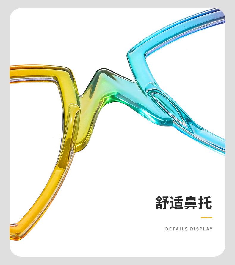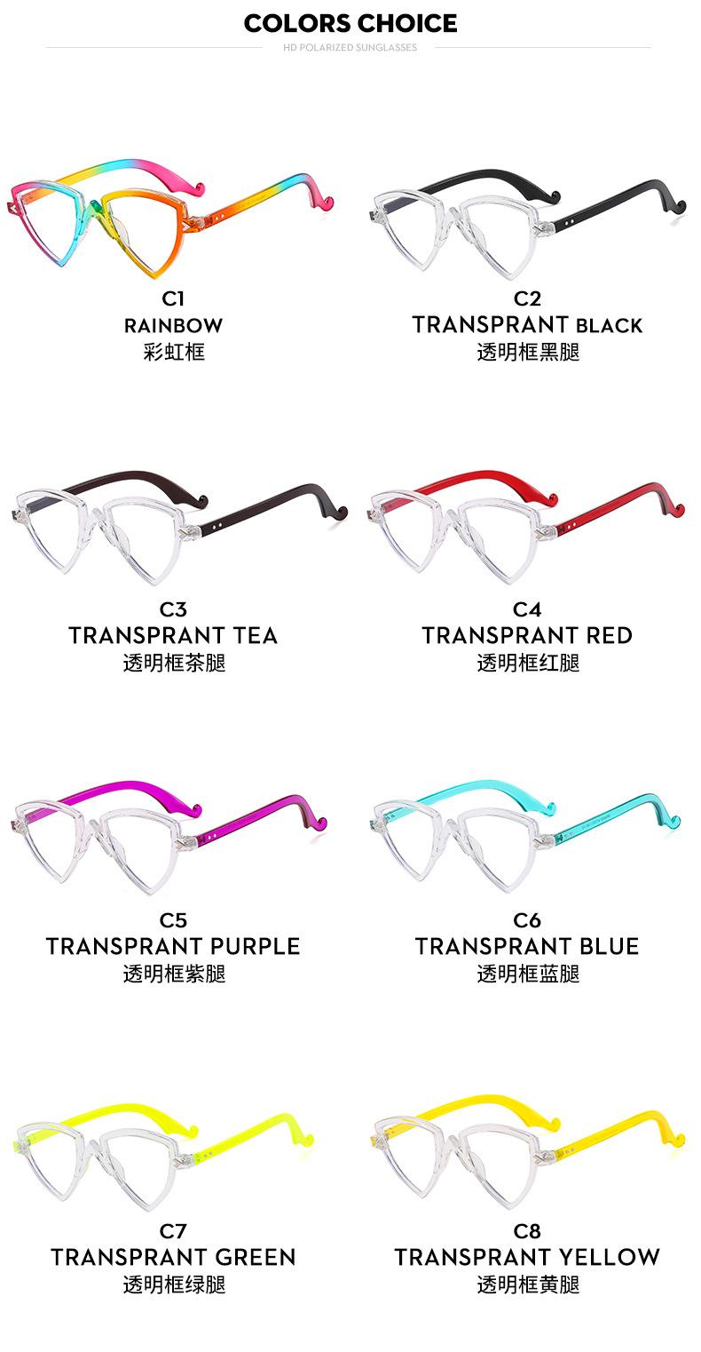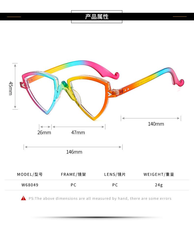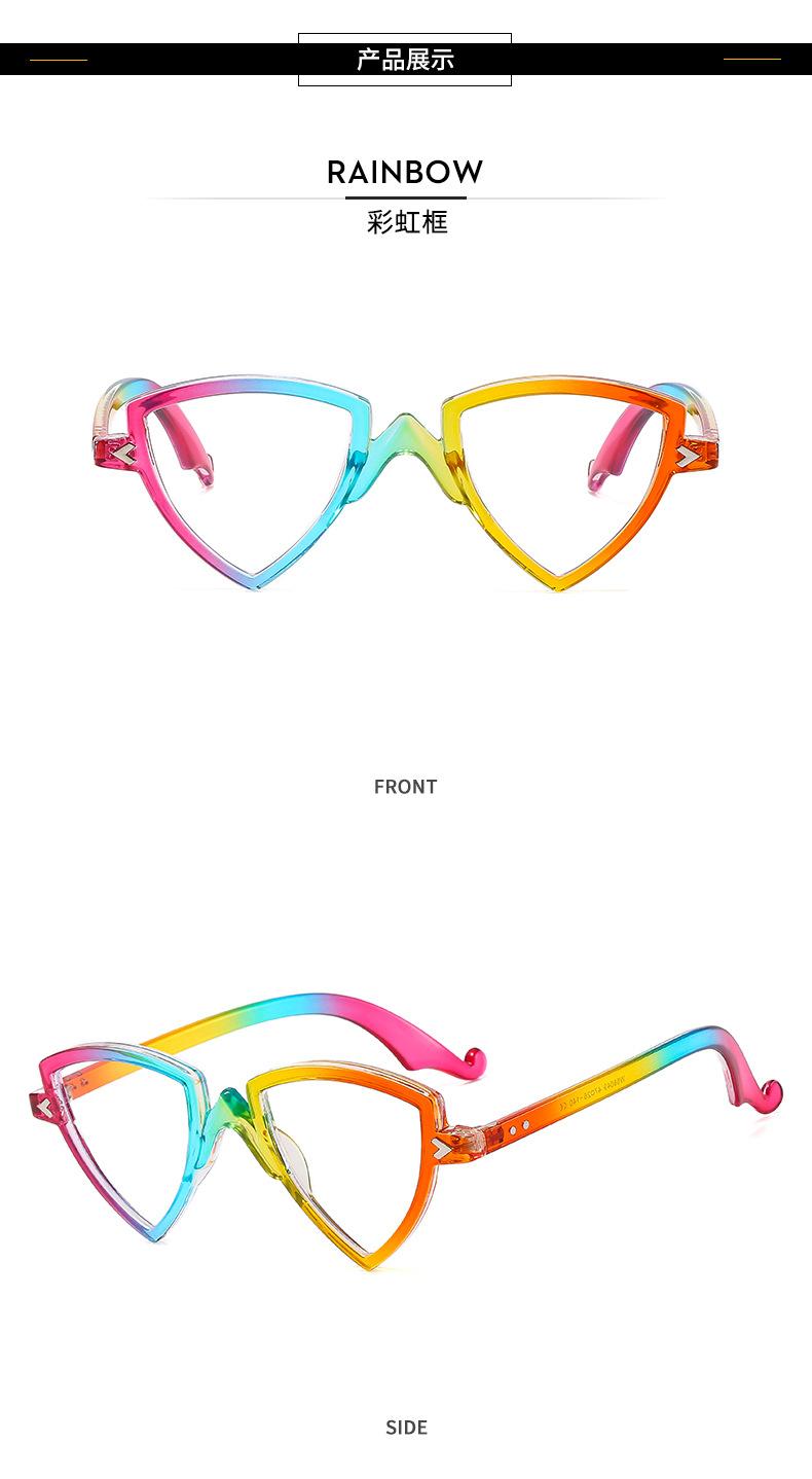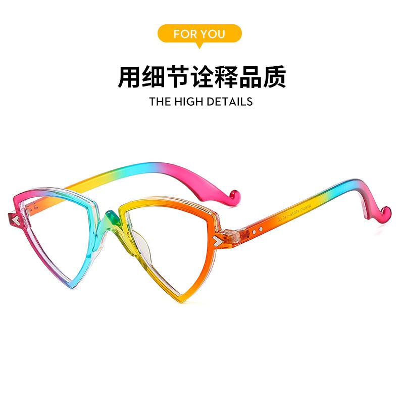 Gafas decorativas de moda de espejo plano, nuevas transfronterizas, montura arcoíris, degradado, triángulo, fiesta, anti-luz azul