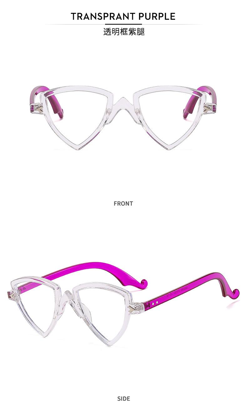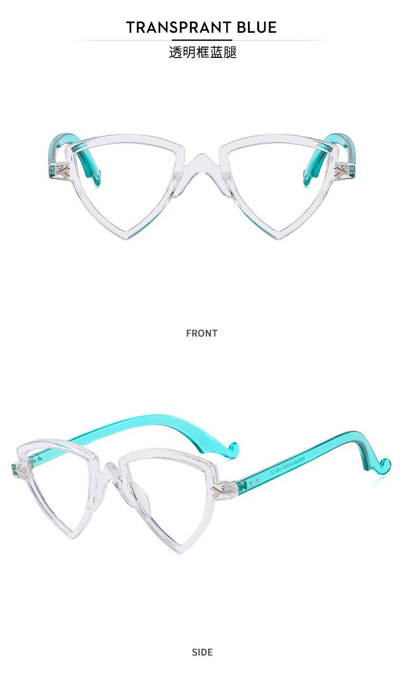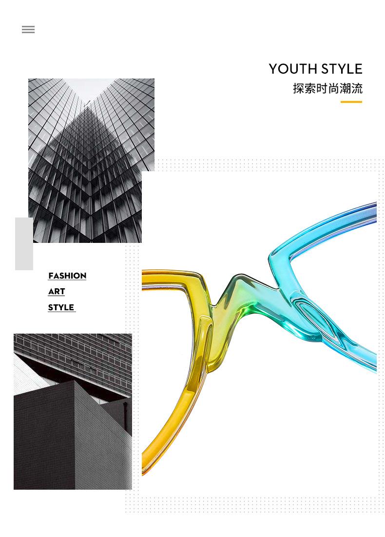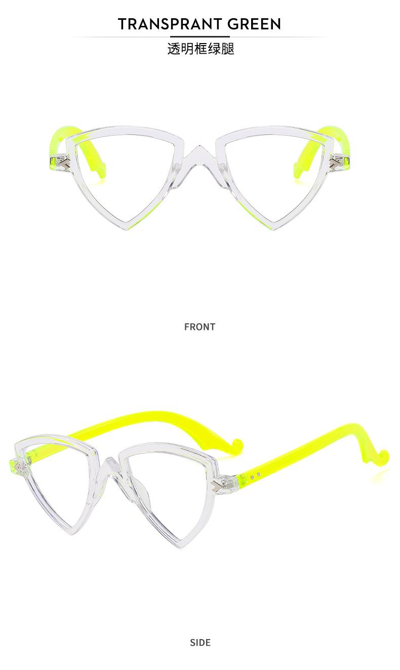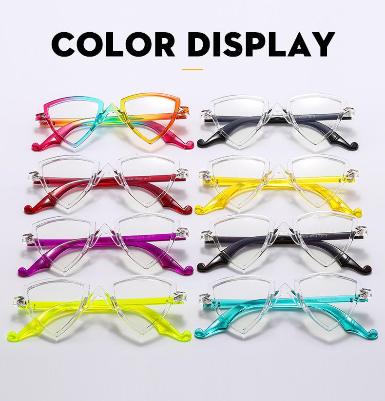 Gafas decorativas de moda de espejo plano, nuevas transfronterizas, montura arcoíris, degradado, triángulo, fiesta, anti-luz azul