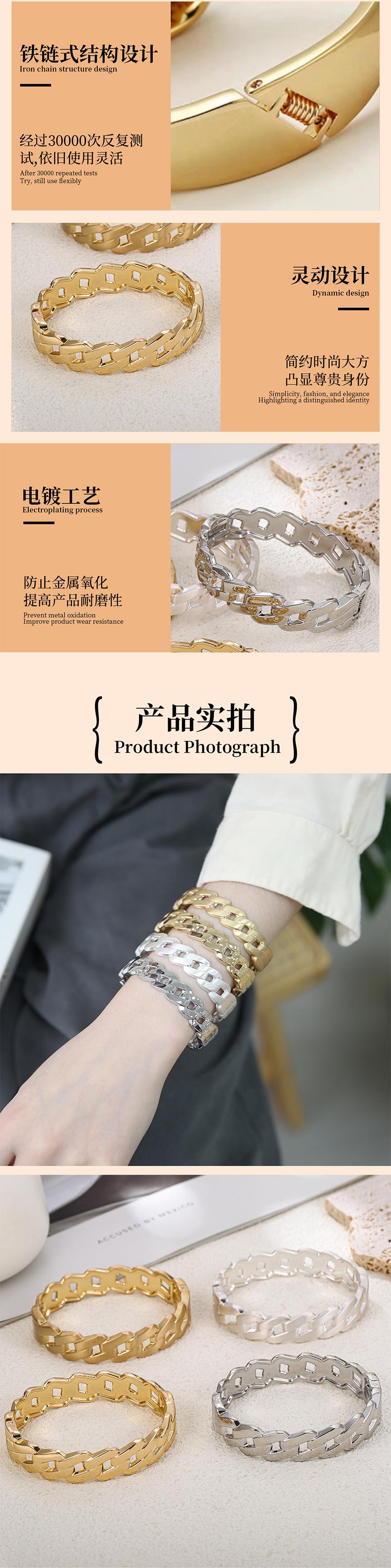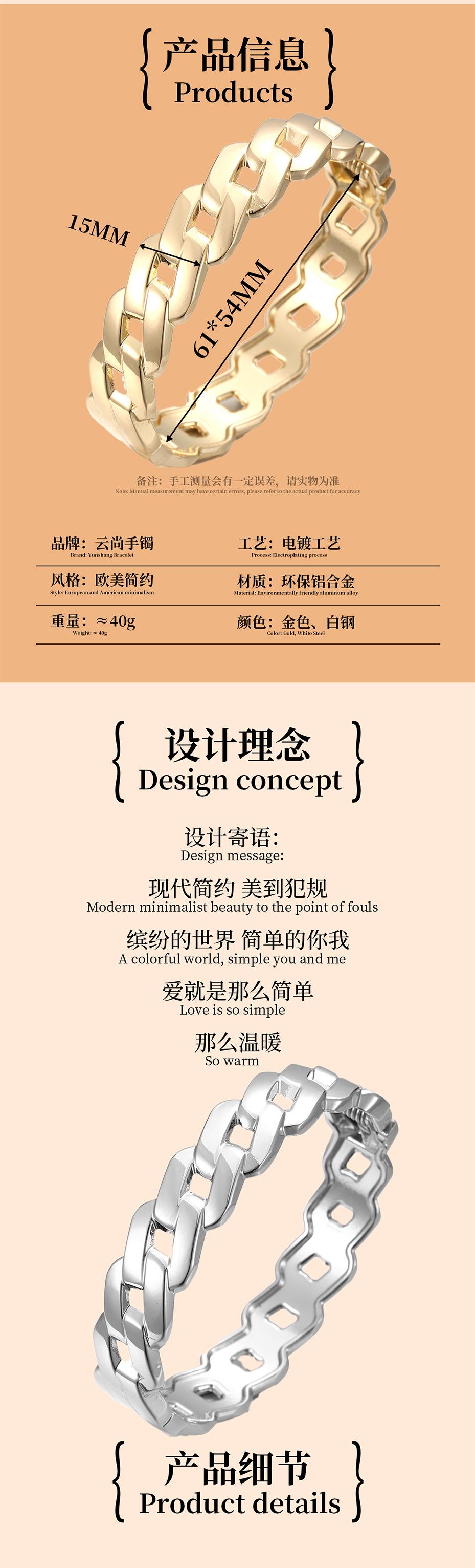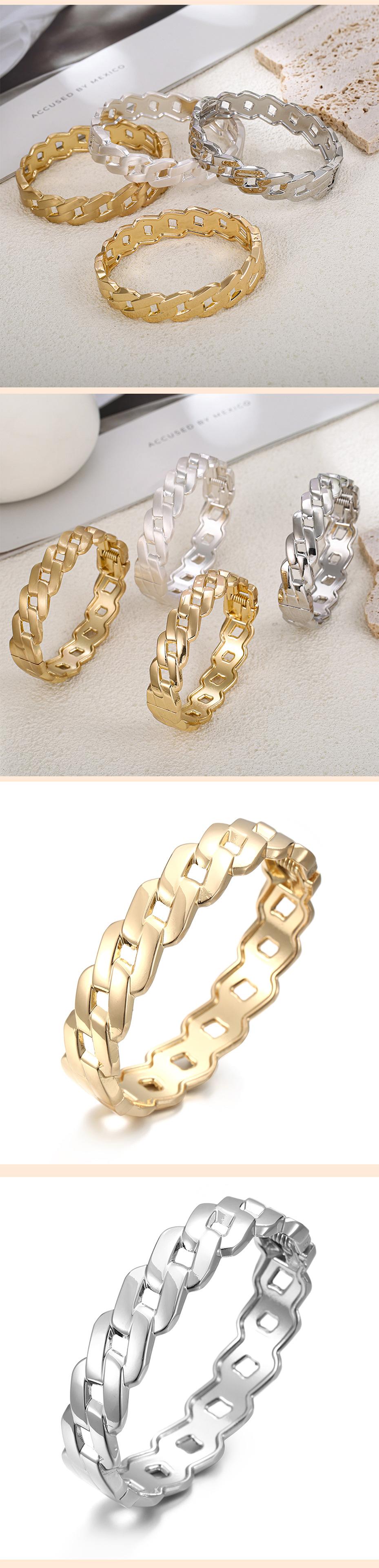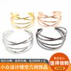 Pulsera anillo entrelazado abierto de aleación hueca lisa chapada ancha pulsera francesa pulsera para mujer de fábrica