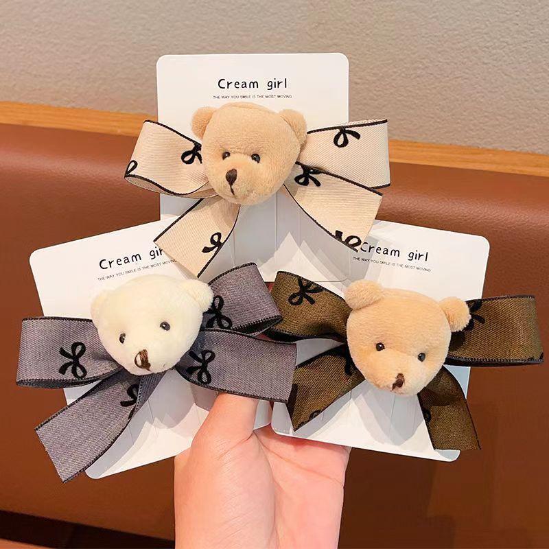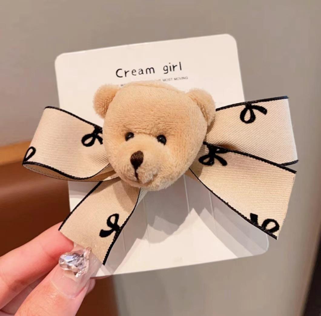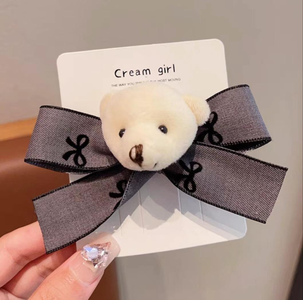 Black bow bear hairpin (no card), Brown bow bear hairpin (no card), Off-white bow bear hairpin (no card)