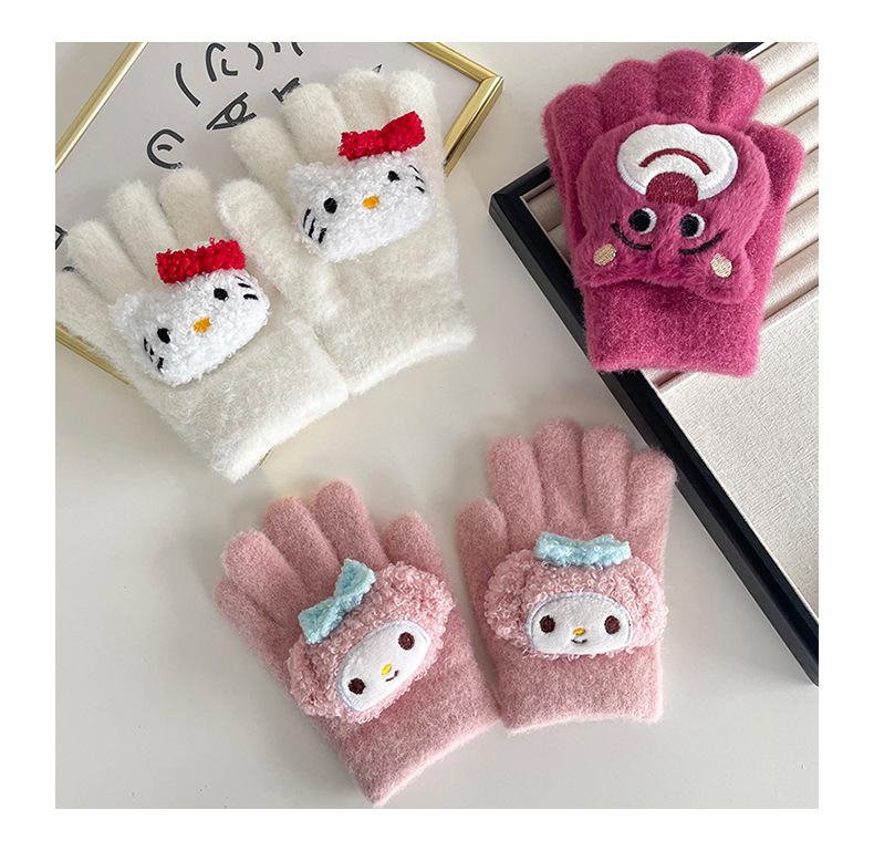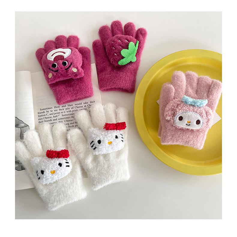 Guantes de dibujos animados para niños, guantes de invierno fríos y cálidos de cinco dedos, acolchados de felpa, lindos guantes de punto para los dedos, venta al por mayor