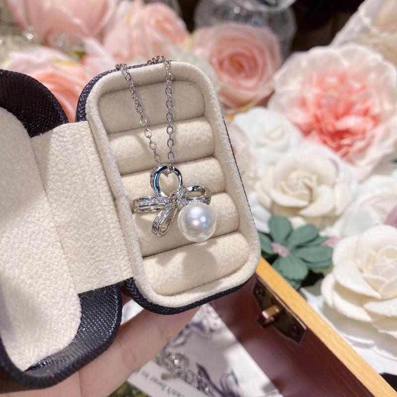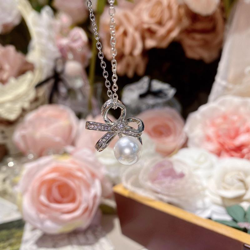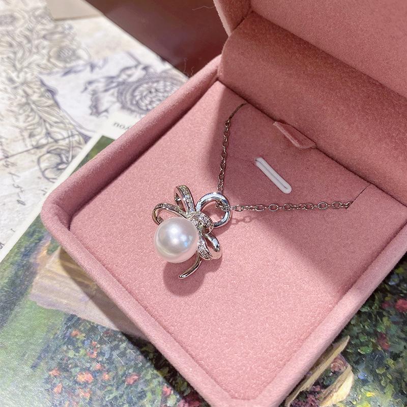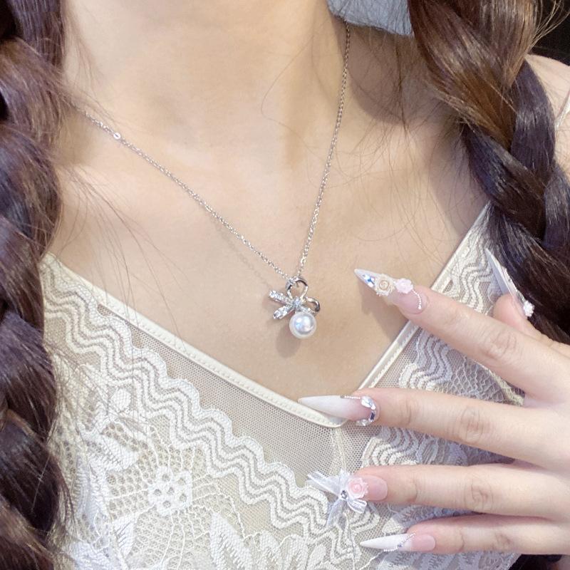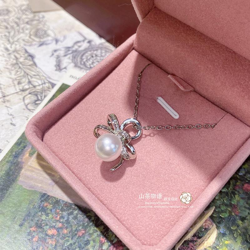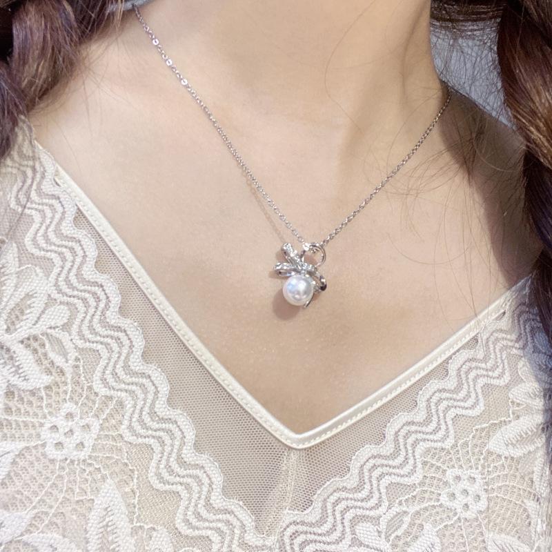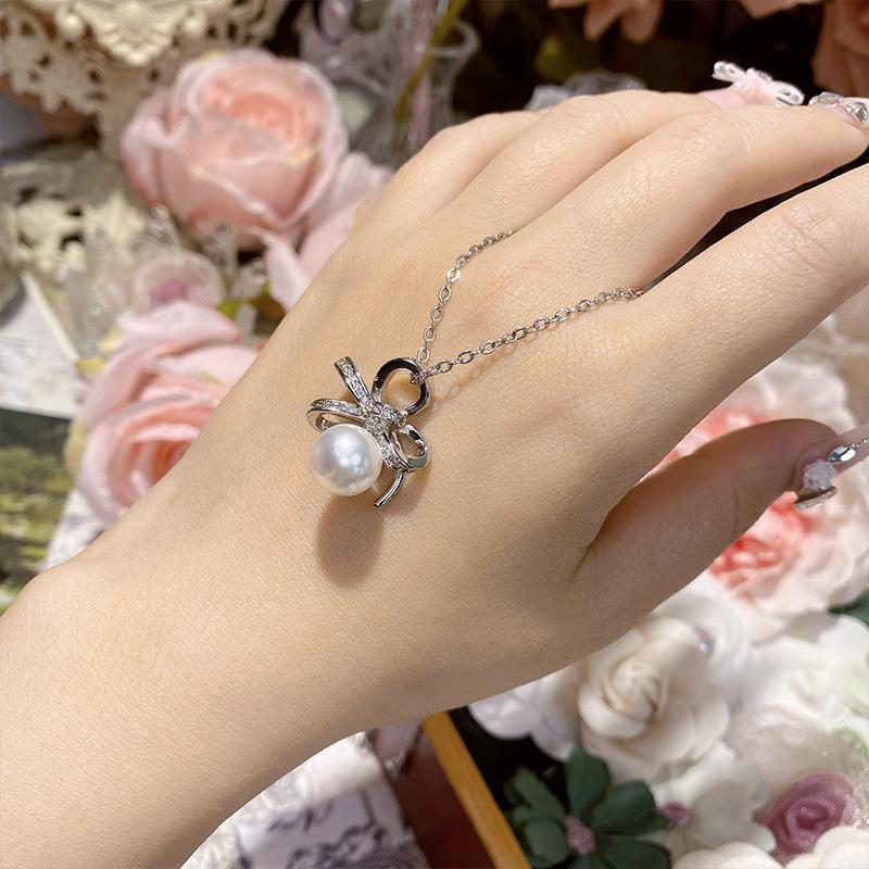 Colgante de perla de agua dulce natural de imitación con lazo francés de camelia, cadena de clavícula con cuentas de diamante de temperamento pequeño y exquisito