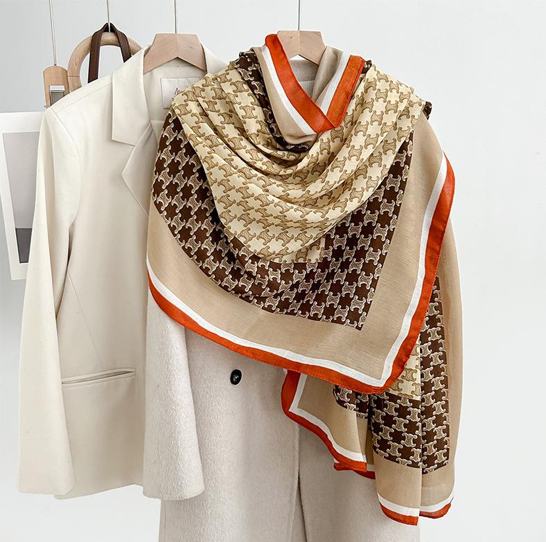 Nueva marca de alta calidad, chal estampado de alta calidad, 90 x 180 cm de largo, textura de lana de seda, bufanda cálida con diseño de espiga