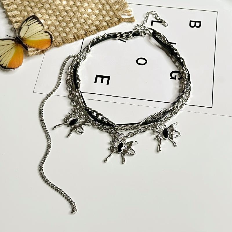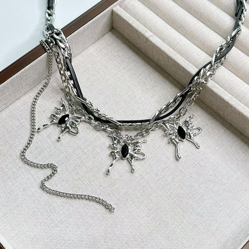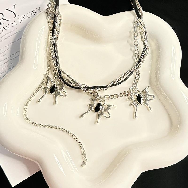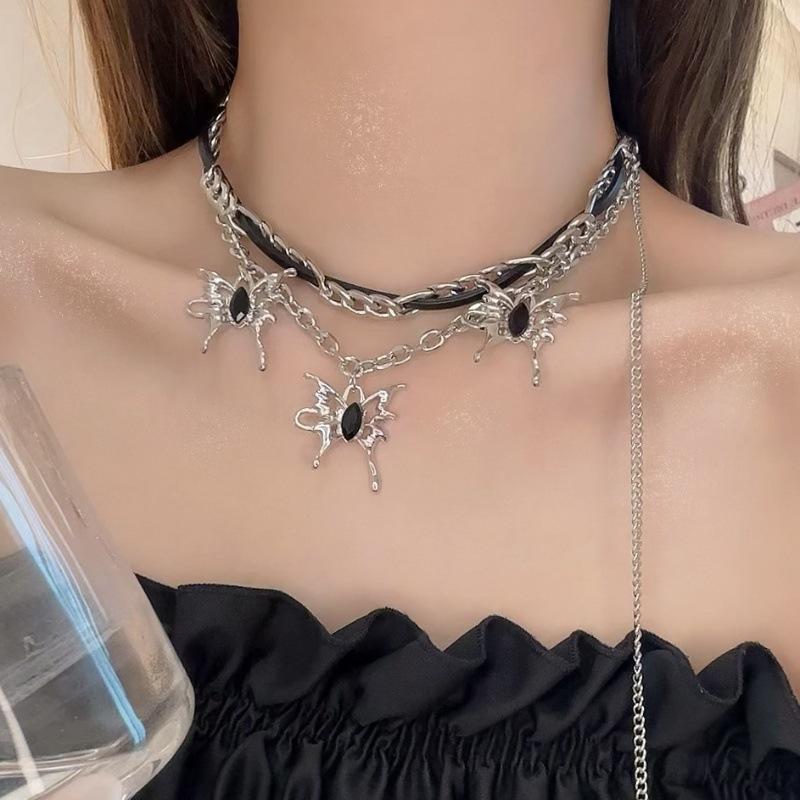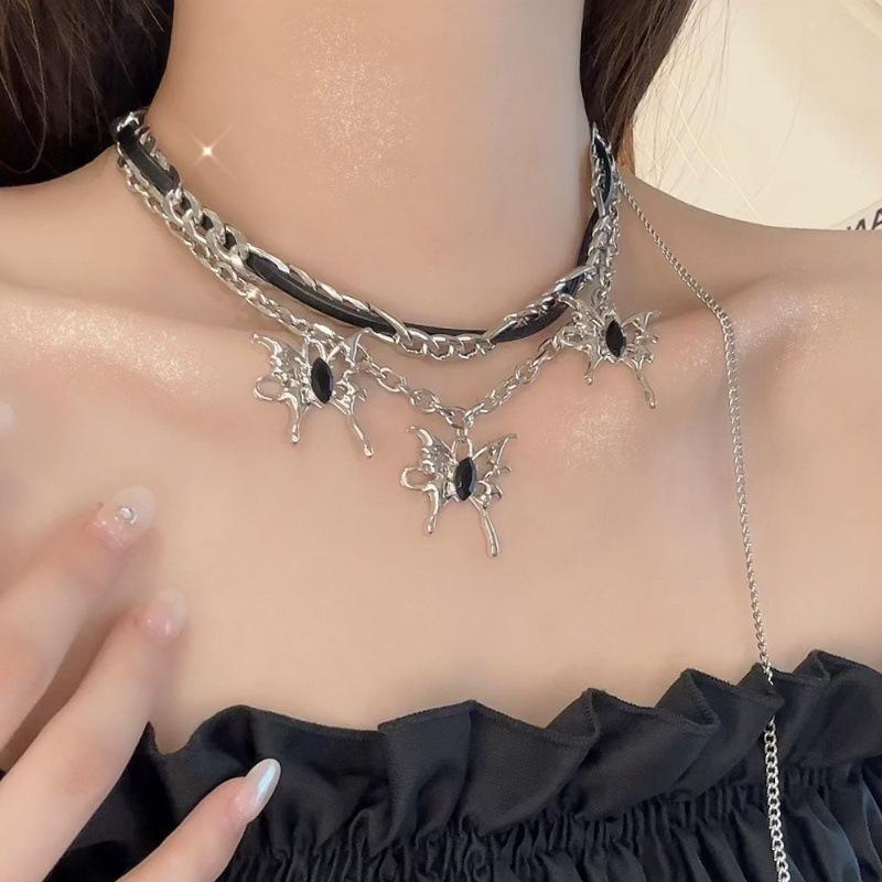 Collar con borlas y costuras de mariposa negra, moderno y moderno, para mujer, accesorios de hip hop, diseño de nicho, cadena de clavícula de alta calidad.
