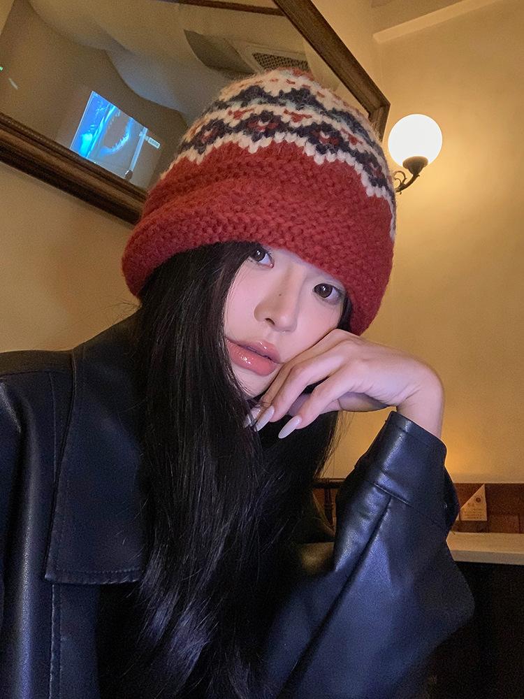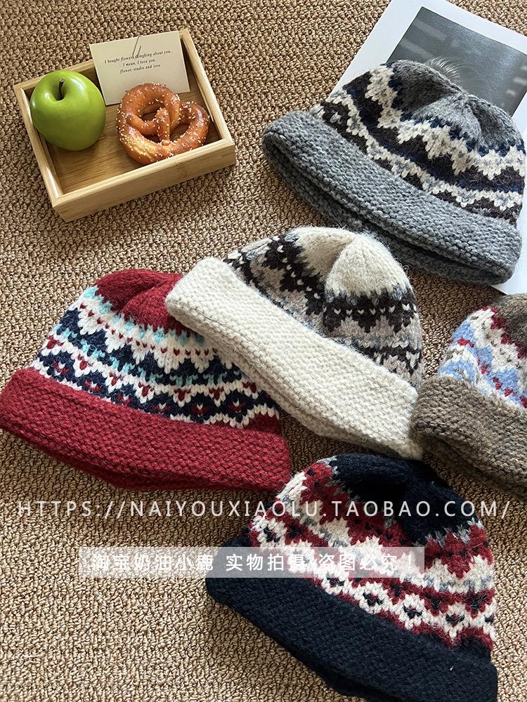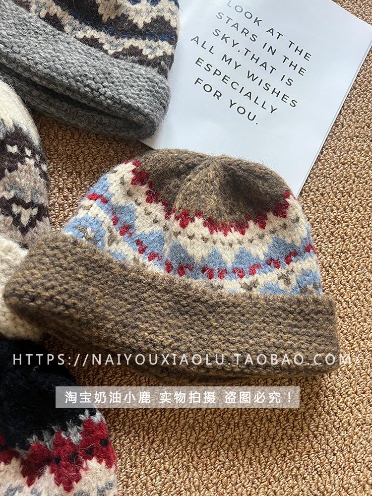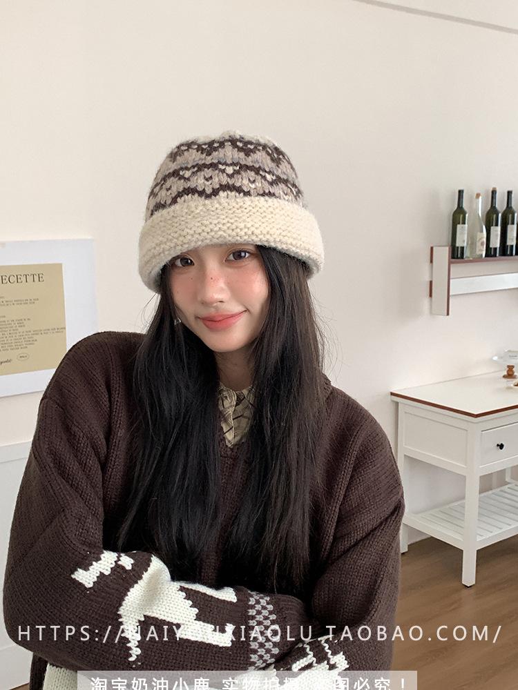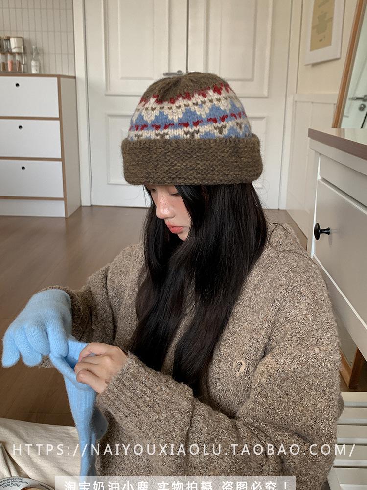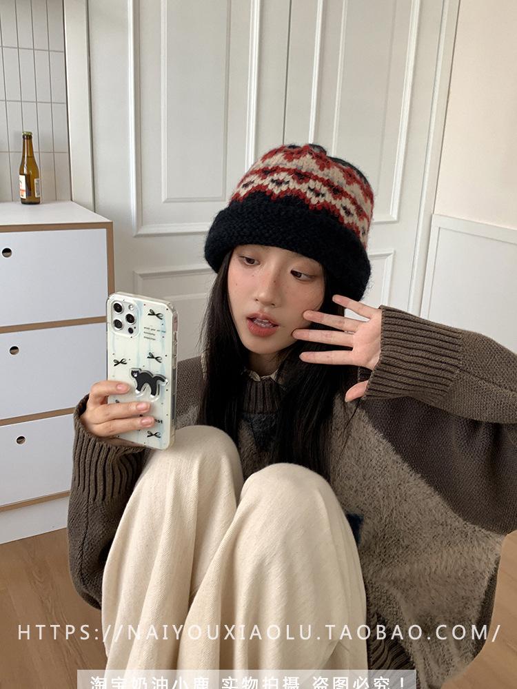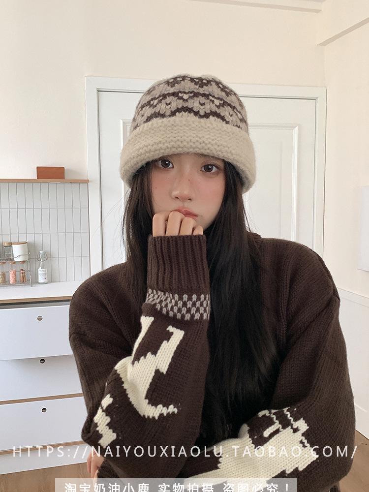 Gorro de punto estilo Fairisland para mujer, otoño e invierno, estilo vintage, con protección para las orejas, de lana, grueso y cálido, Baotou.