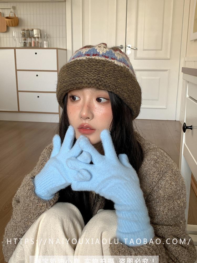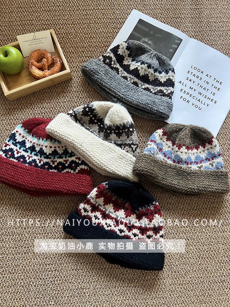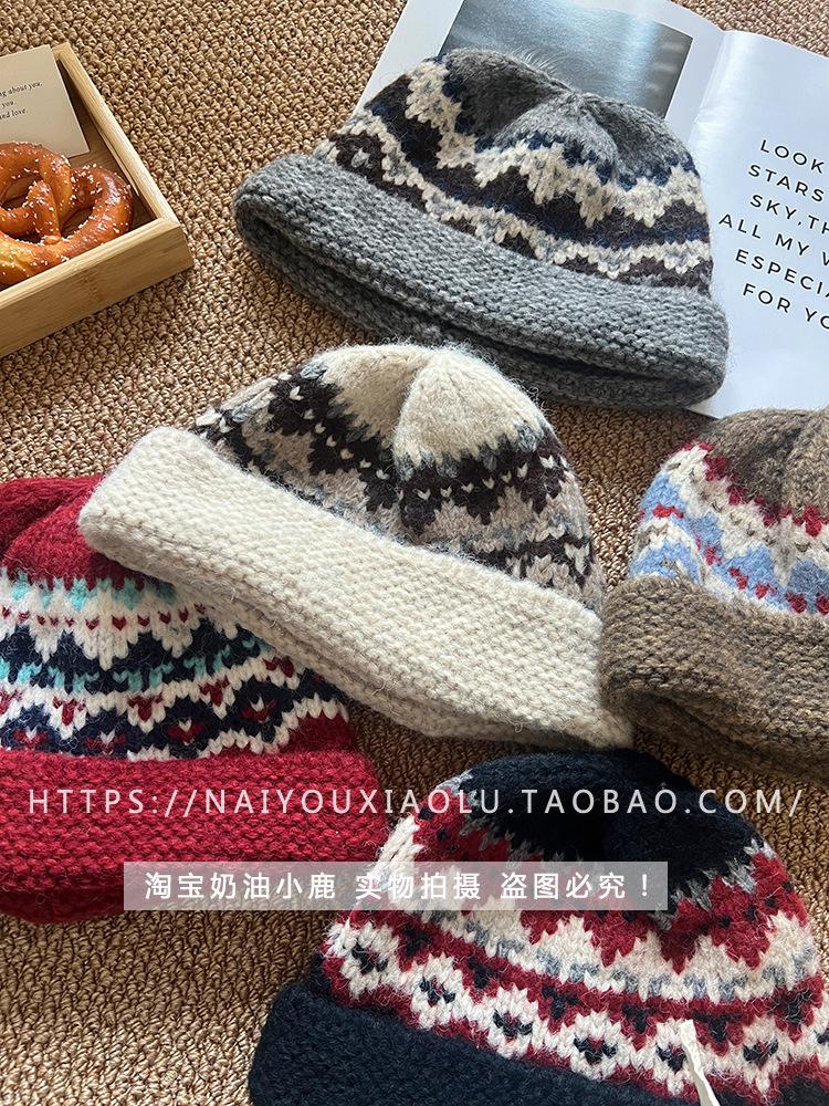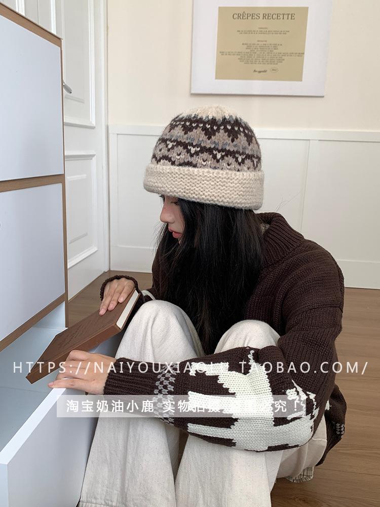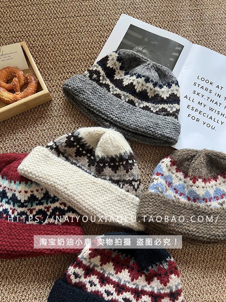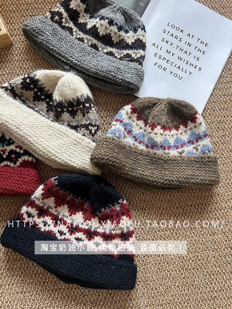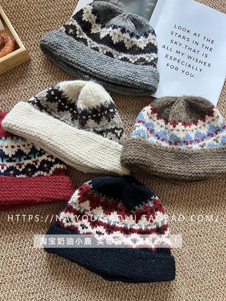 Gorro de punto estilo Fairisland para mujer, otoño e invierno, estilo vintage, con protección para las orejas, de lana, grueso y cálido, Baotou.