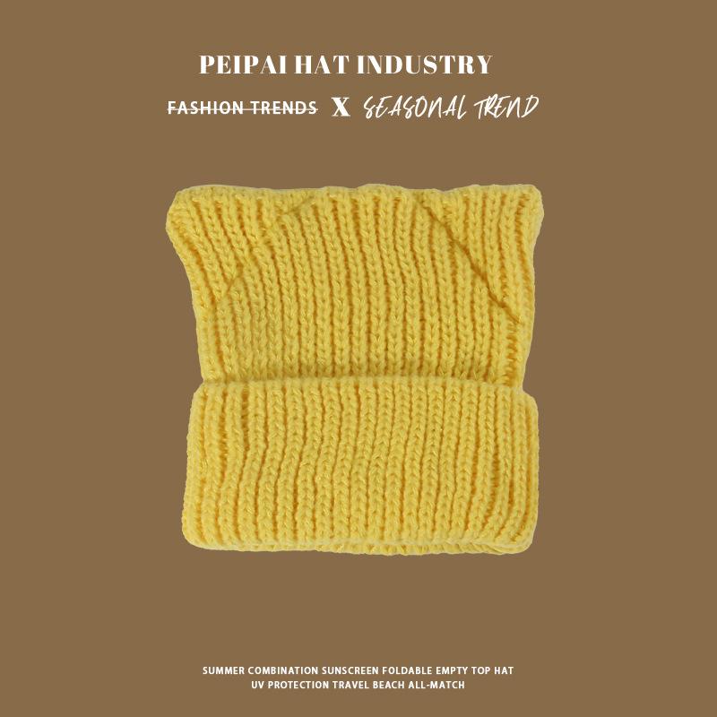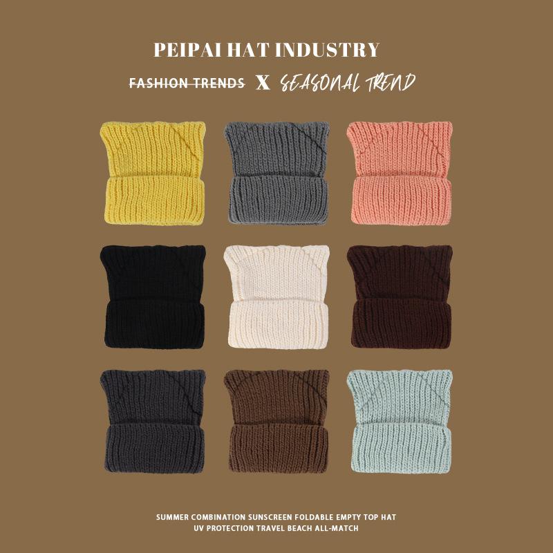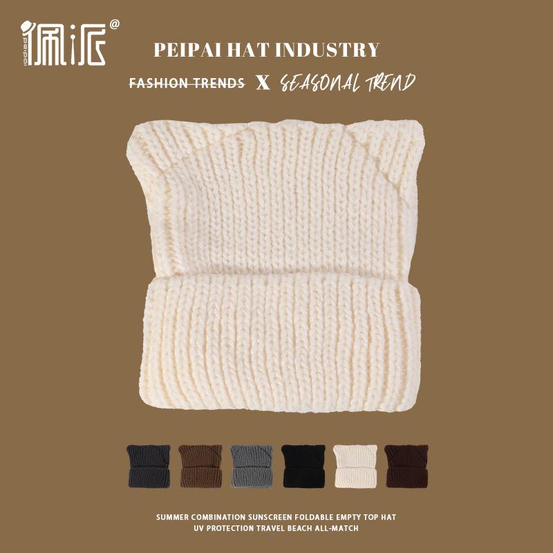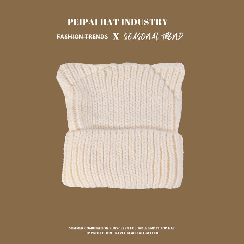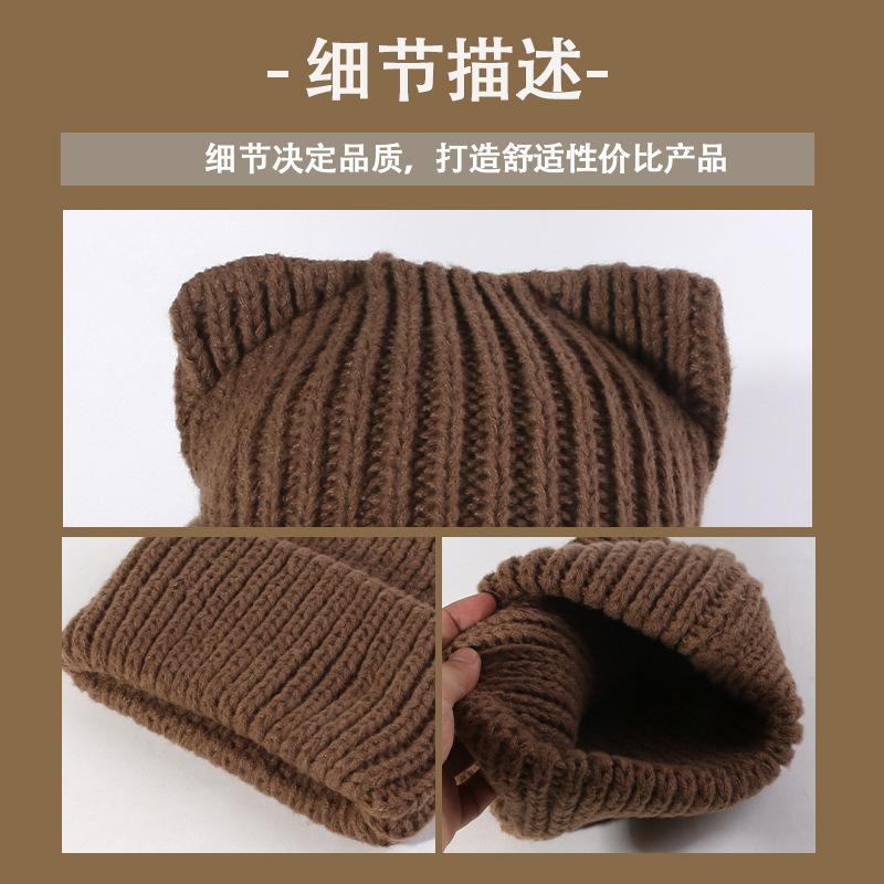 Gorro japonés de lana con orejas de gato para otoño e invierno, cálido, con protección para las orejas, para todo tipo de rostros, pequeño gorro de punto.
