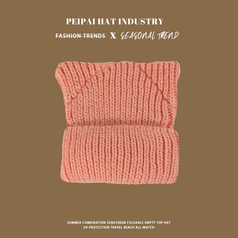 C4304 double line cat earring knitted hat pink, C4304 double line cat earring knitted hat light blue, C4304 do...