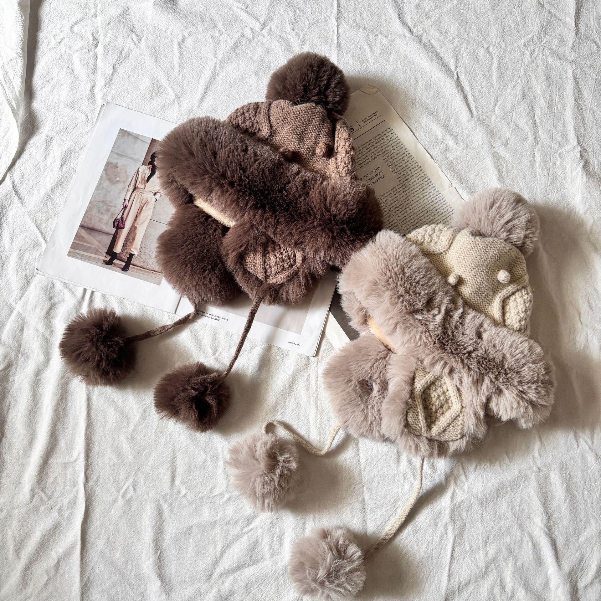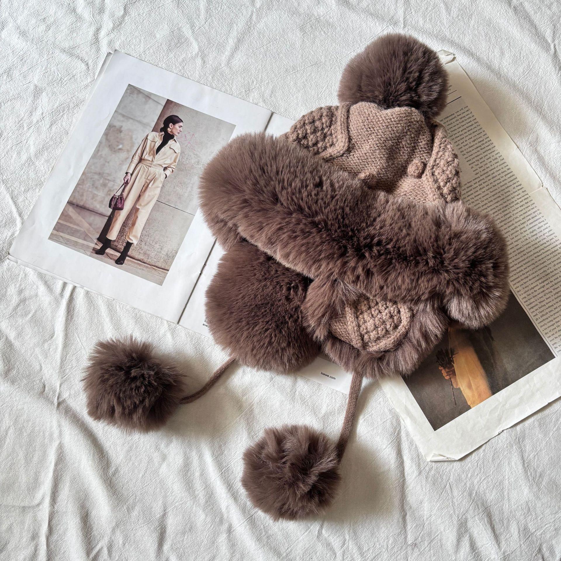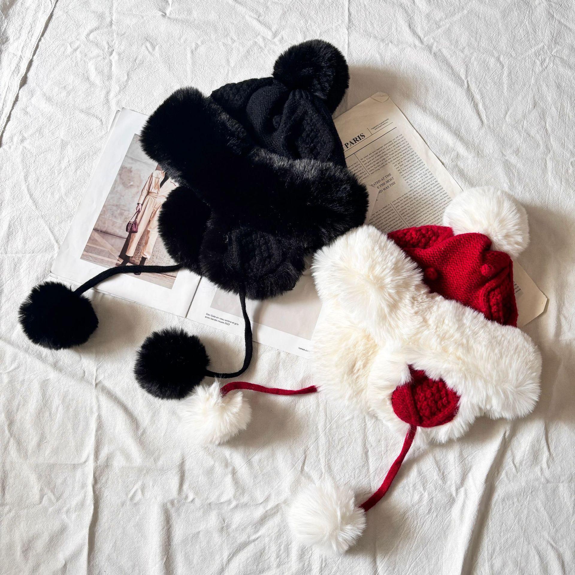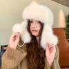 Sombrero grueso de piel con pompón de otoño e invierno para mujer, a prueba de frío del noreste, lindo, con protección para las orejas, resistente al viento, para esquiar, de lana