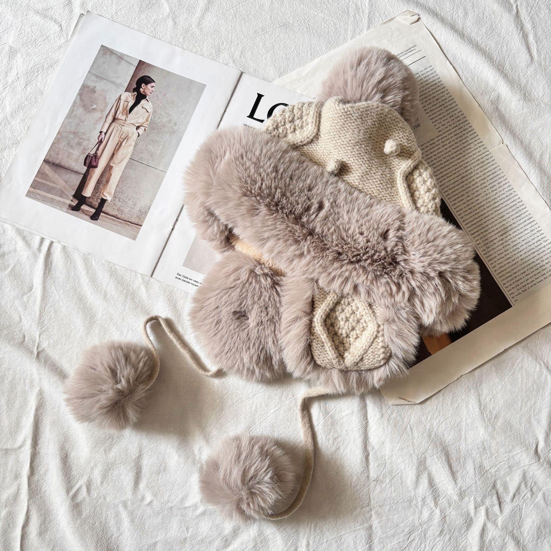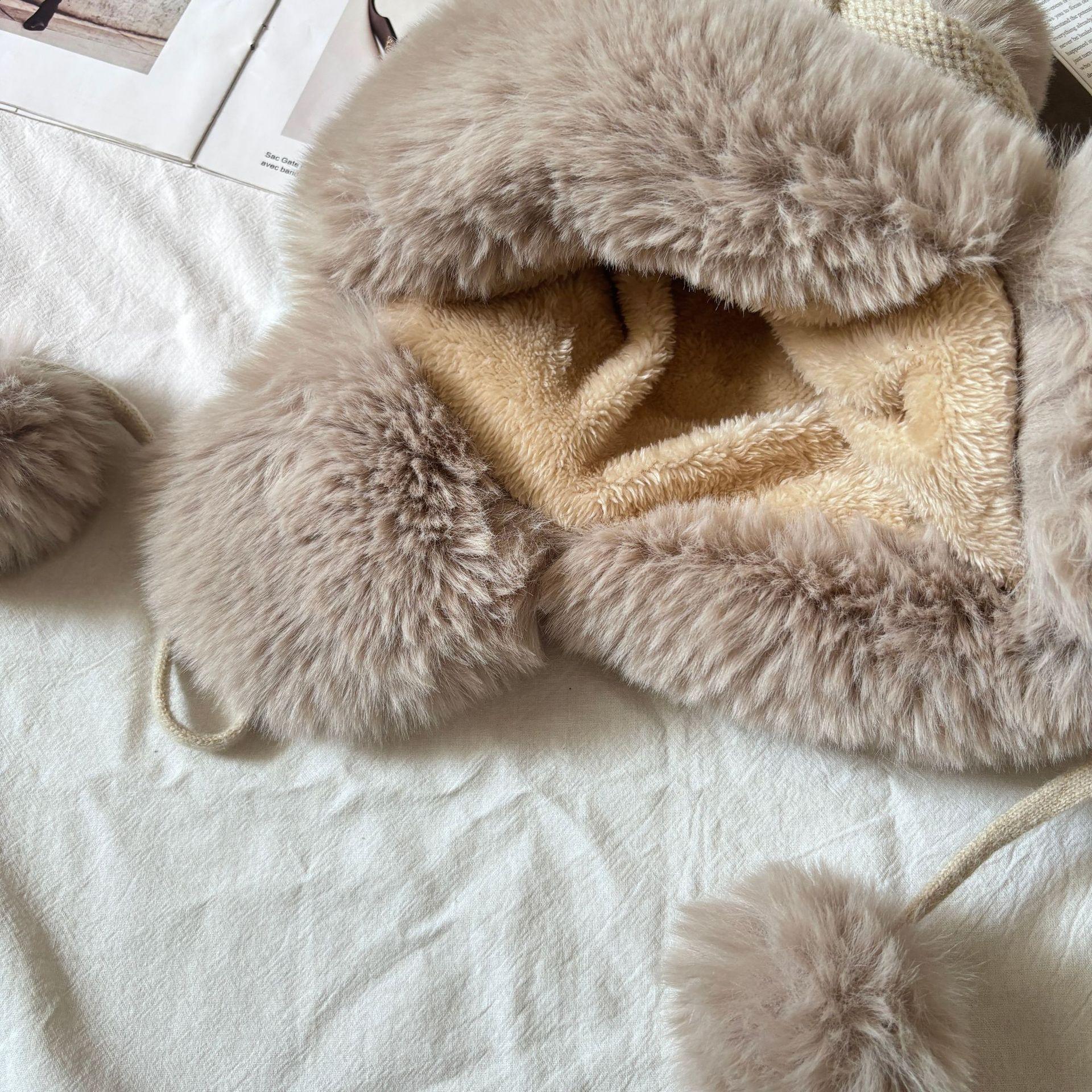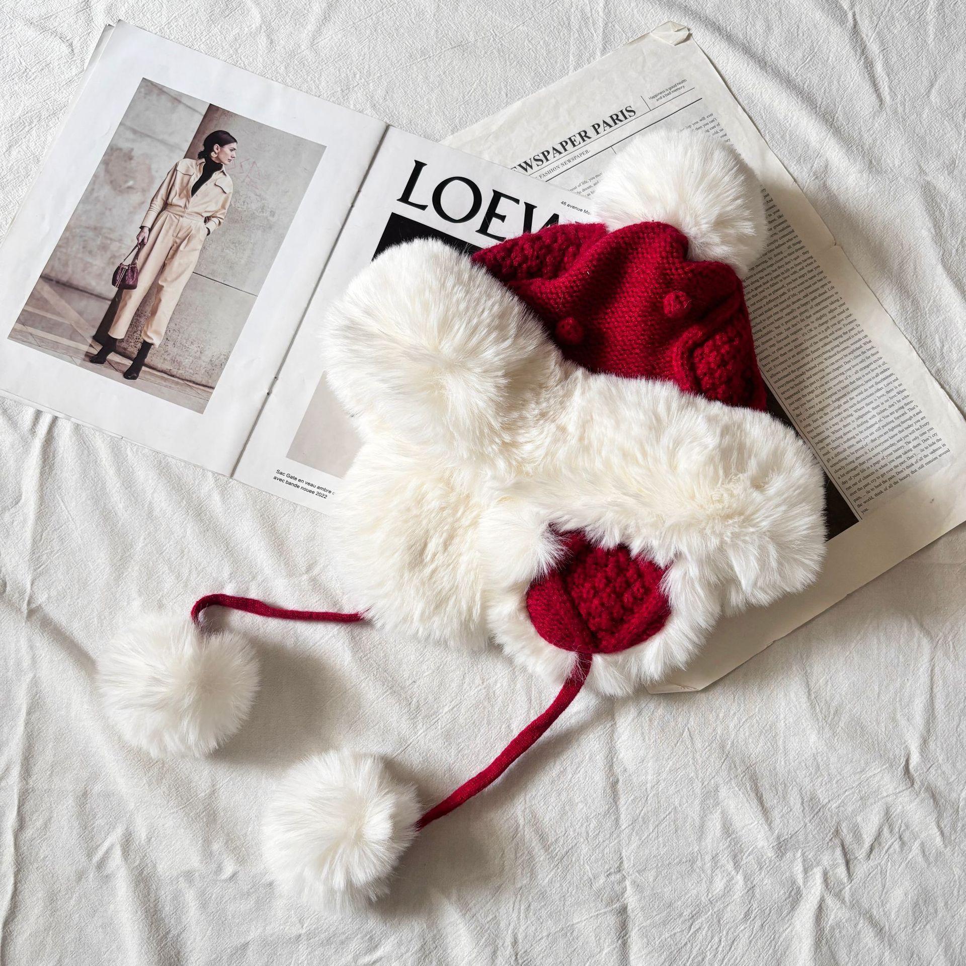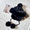 Sombrero grueso de piel con pompón de otoño e invierno para mujer, a prueba de frío del noreste, lindo, con protección para las orejas, resistente al viento, para esquiar, de lana