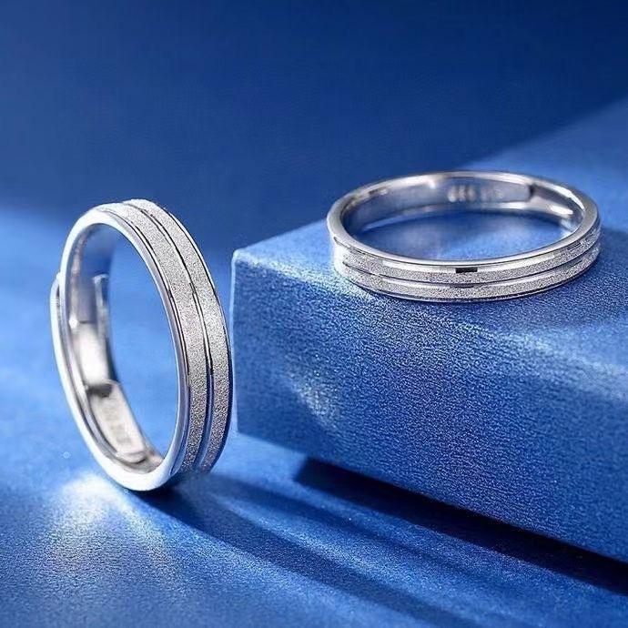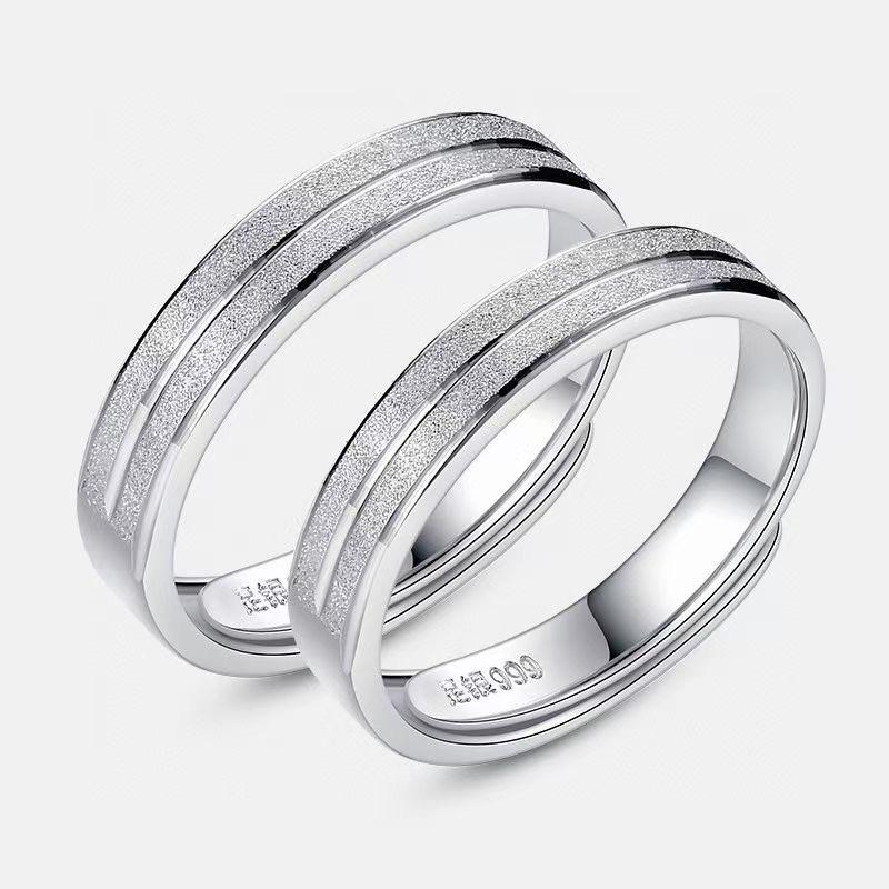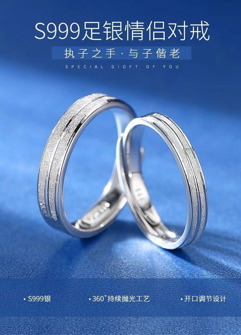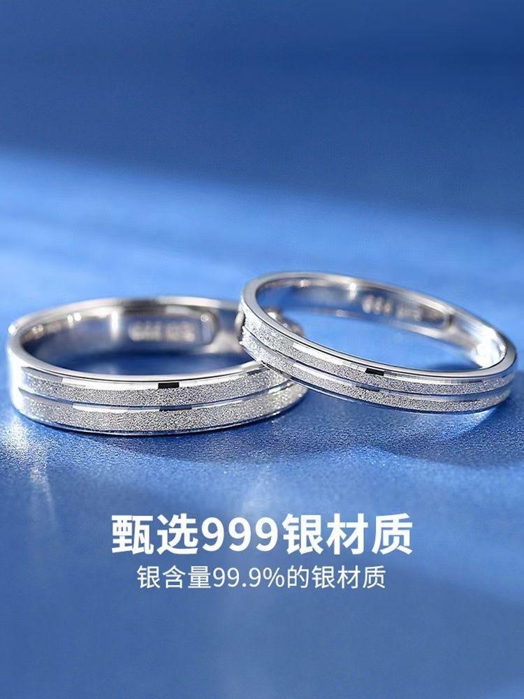 GYMPI Anillo de Lujo de Alta Gama para Hombre y Mujer, Regalo de Tanabata, Plata Esterlina 999, Par de Anillos para Pareja, Ajustable