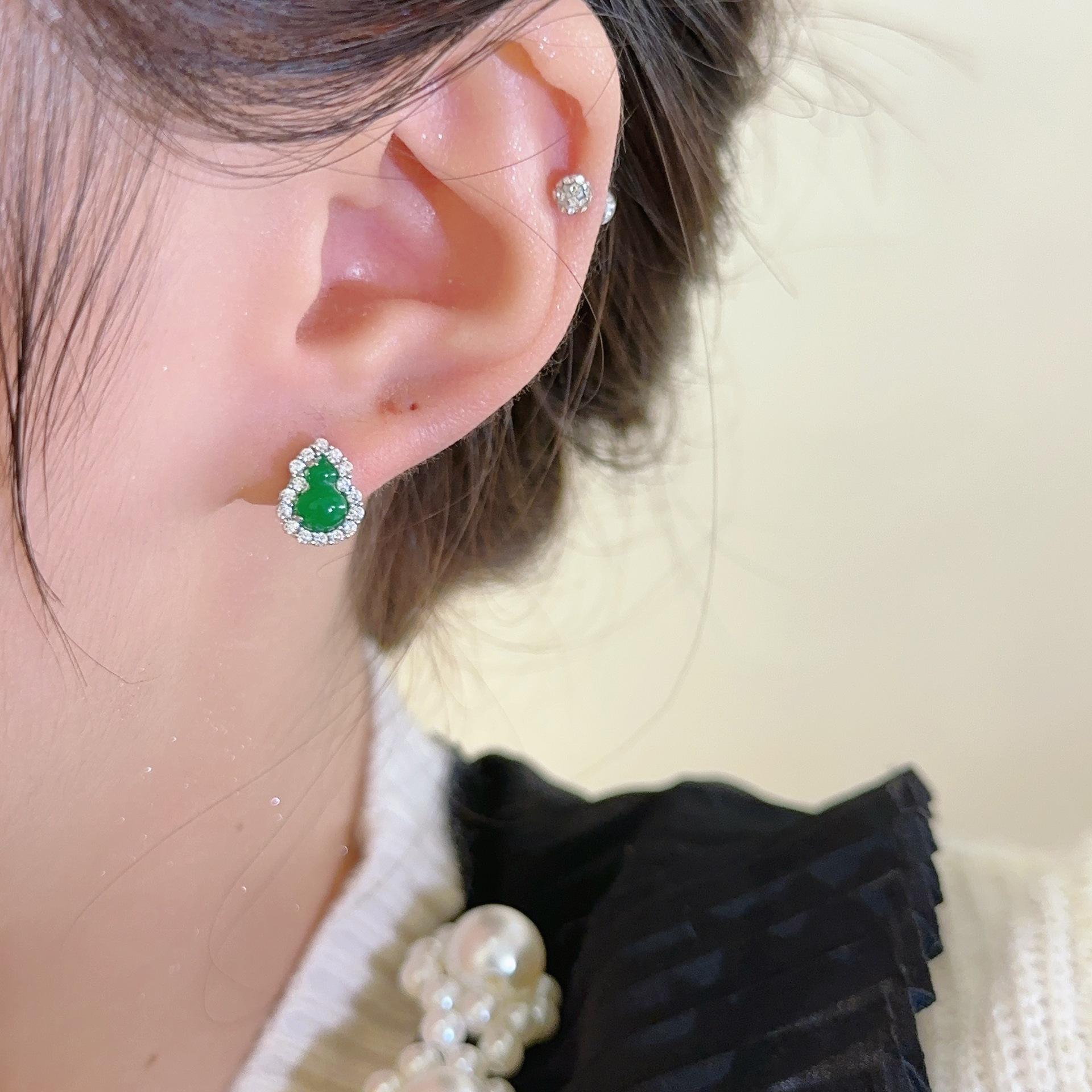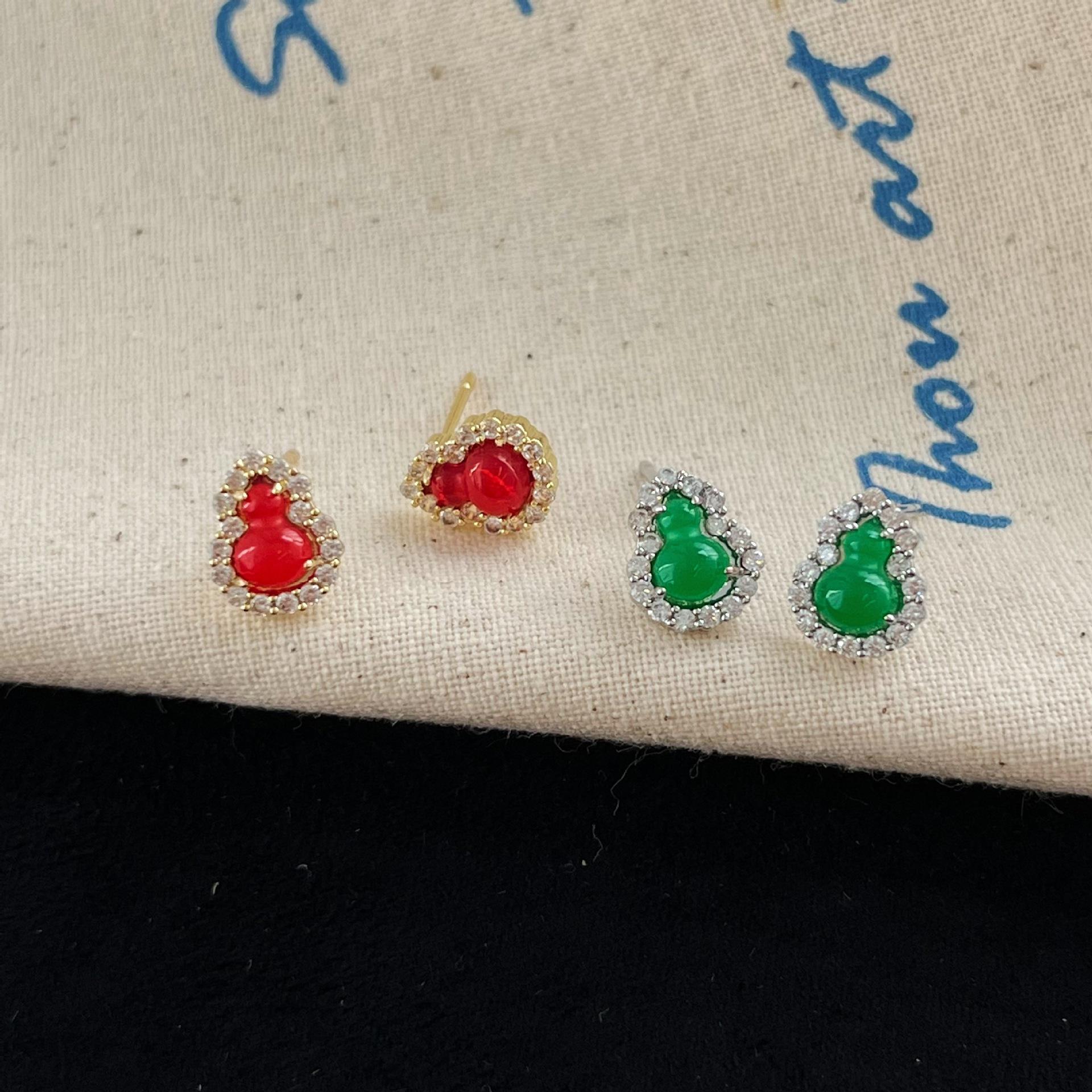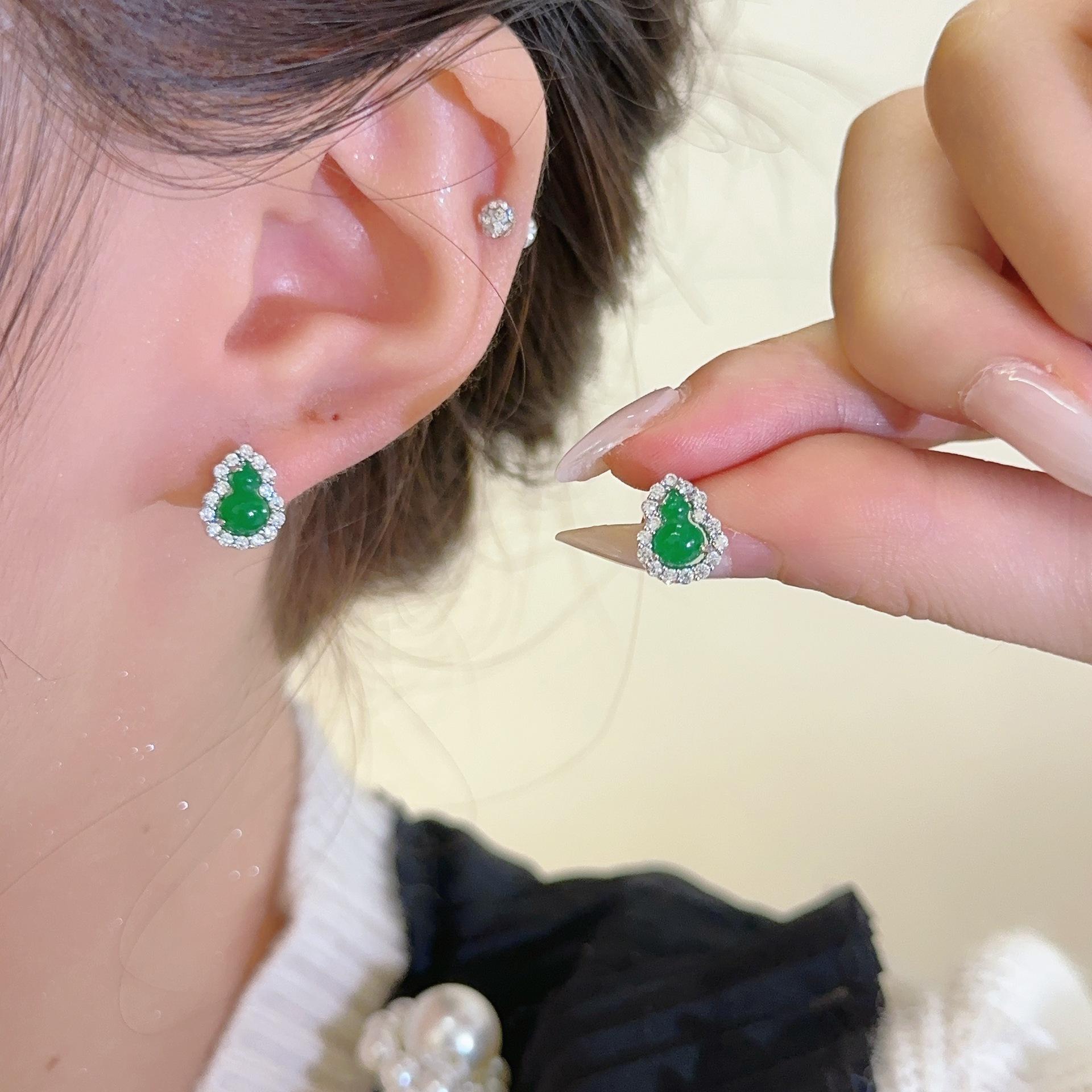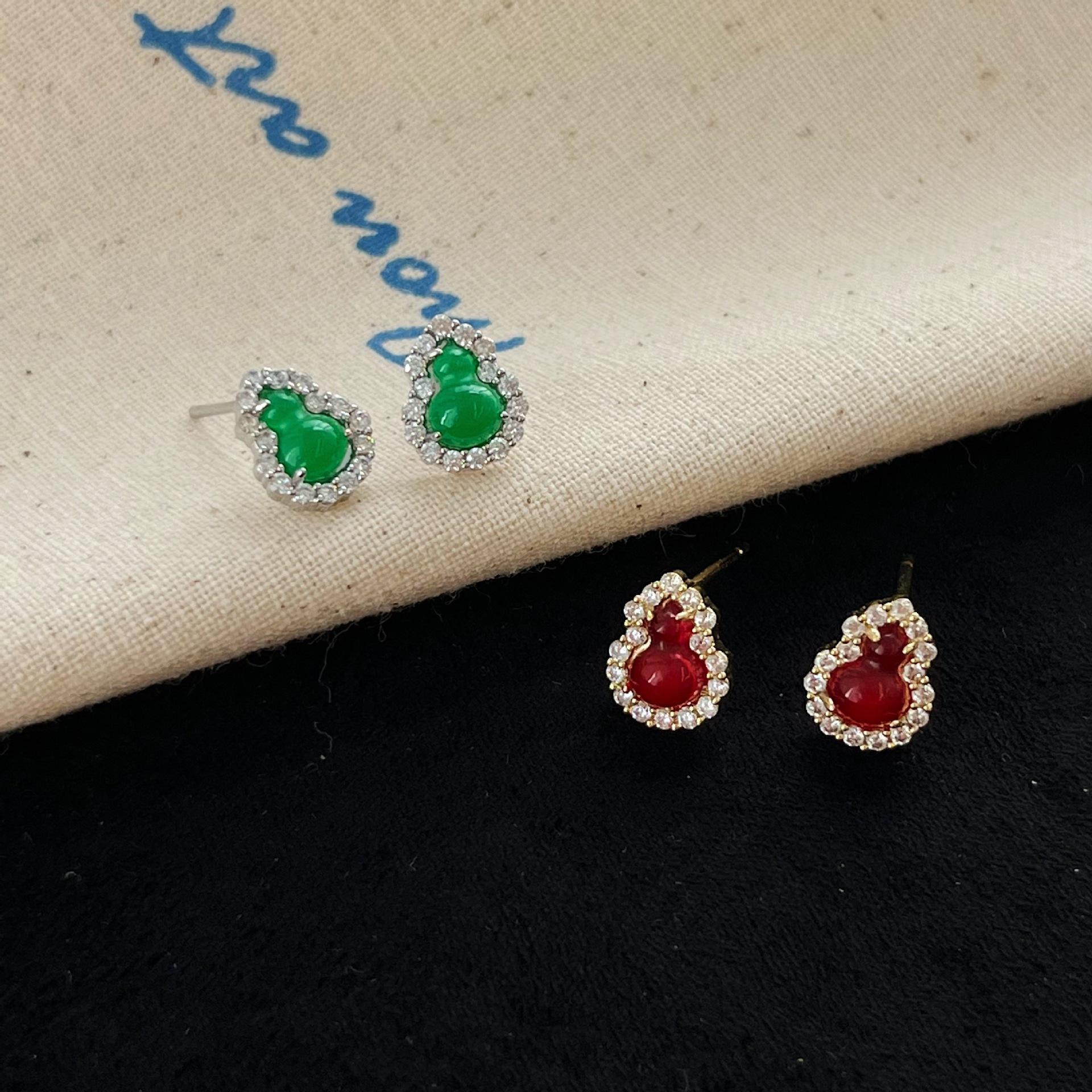 Nuevos pendientes de calabaza verde china para mujer, estilo nacional vintage, con pequeños agujeros en las orejas de calabaza, pendientes de lujo con luz explosiva.