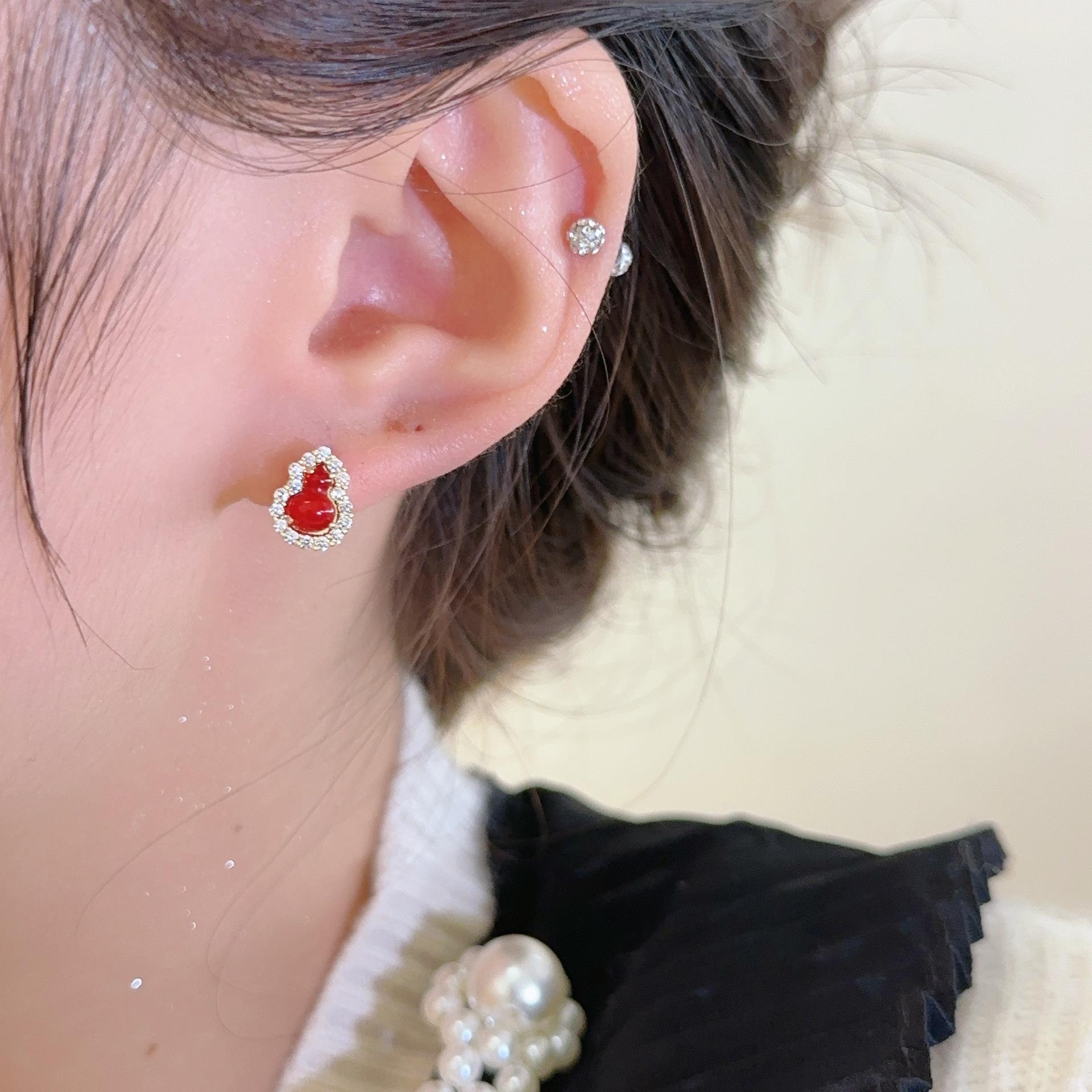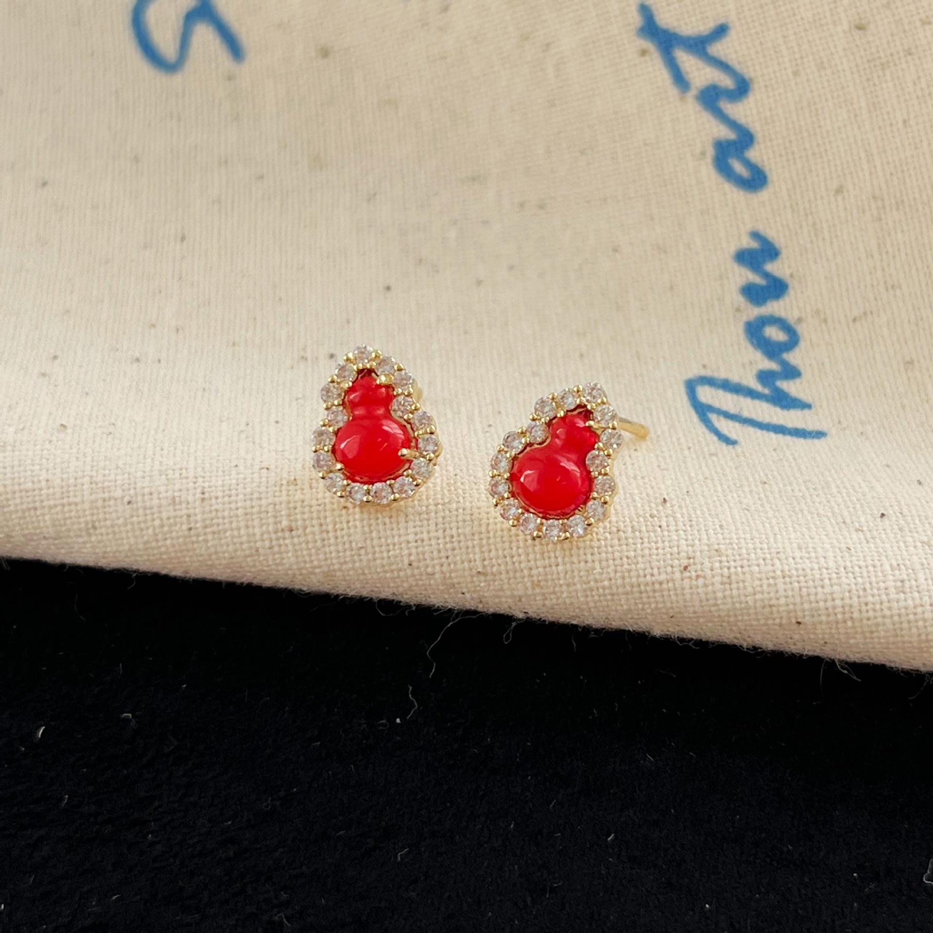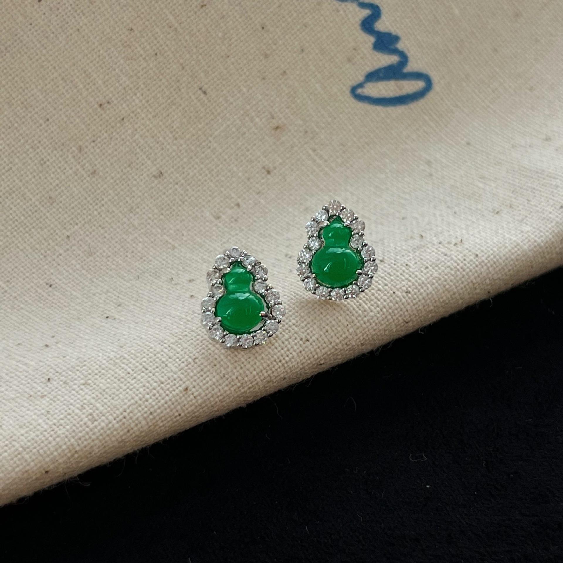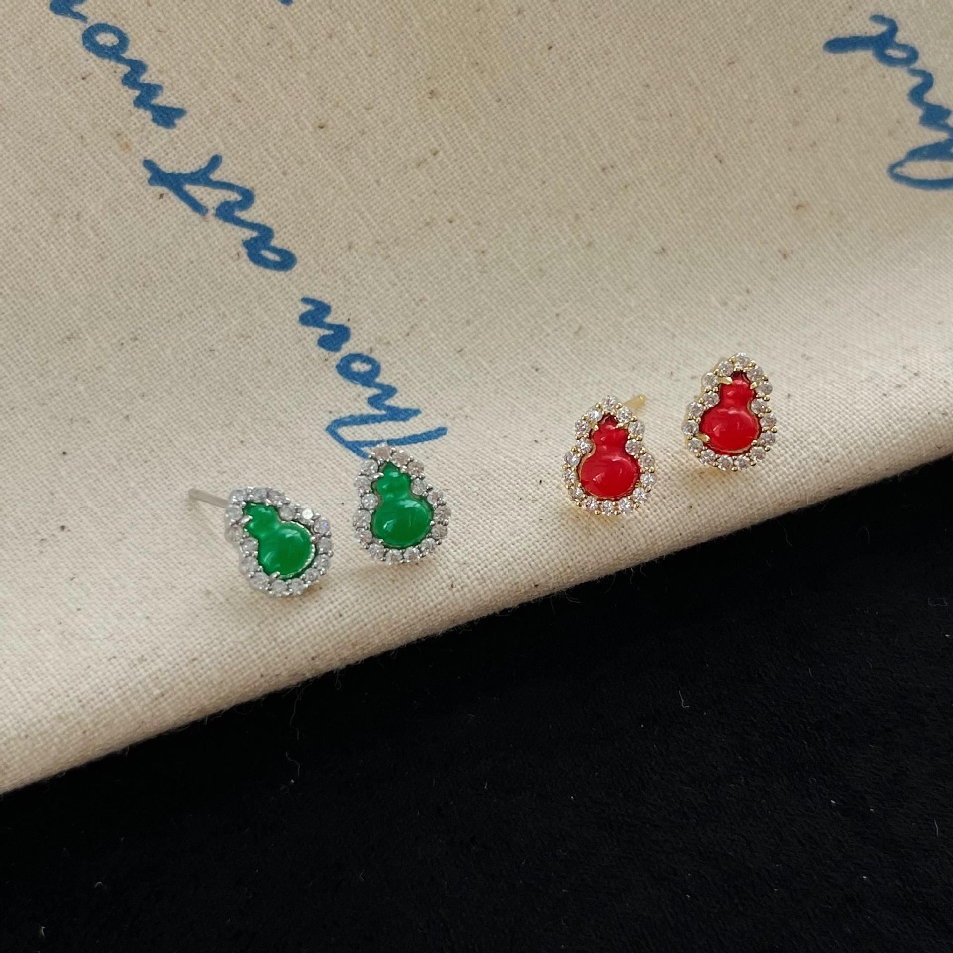 Nuevos pendientes de calabaza verde china para mujer, estilo nacional vintage, con pequeños agujeros en las orejas de calabaza, pendientes de lujo con luz explosiva.