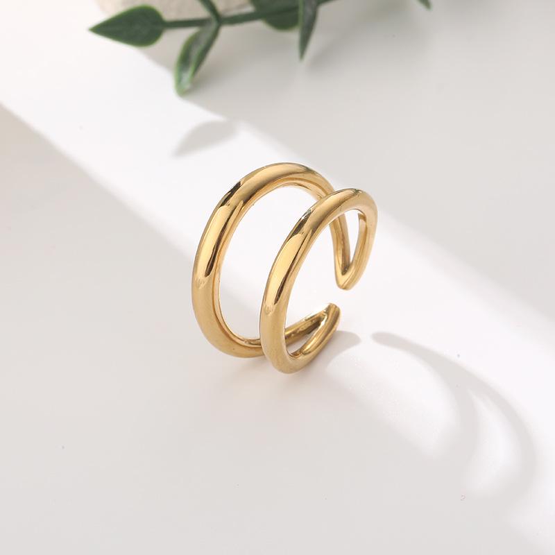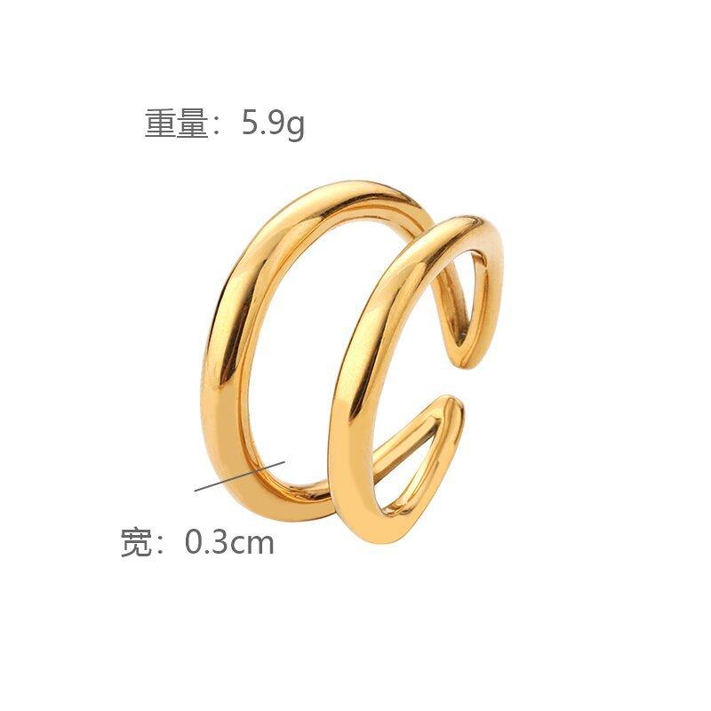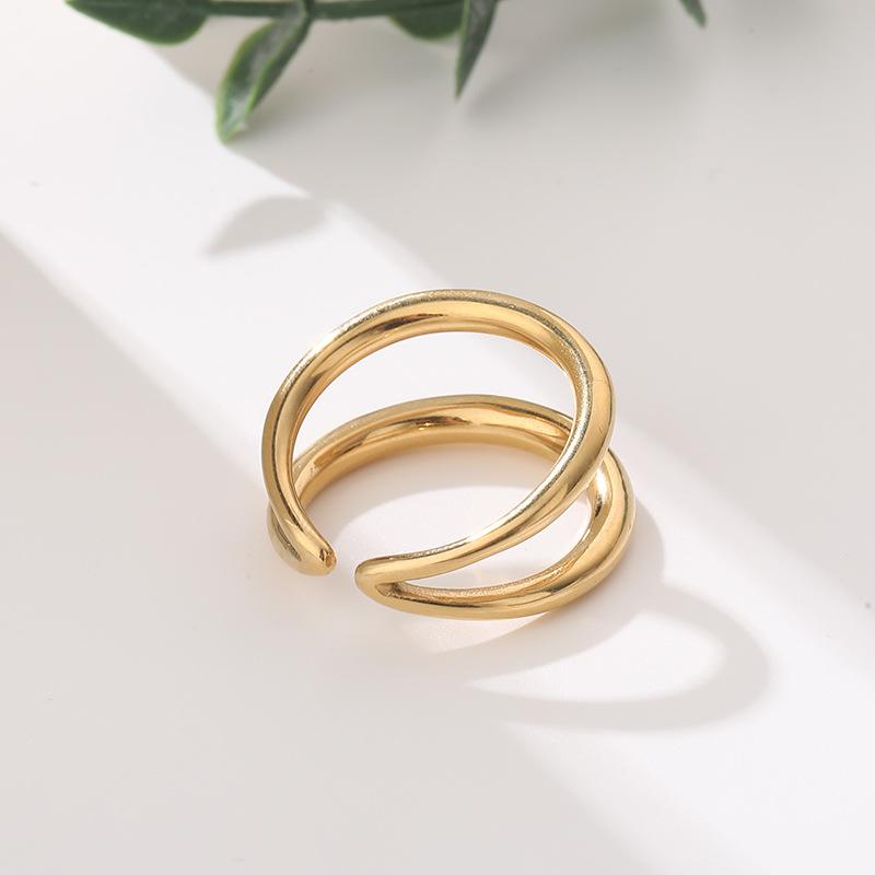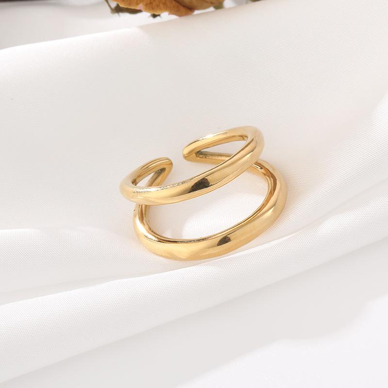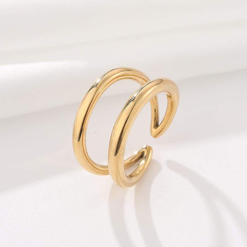 Anillo Abierto de Doble Capa de Oro de Lujo Ligero de Moda Diseño Coreano Simple Nicho Elegante Acero de Titanio Joyería de Mano Venta Directa de Fábrica