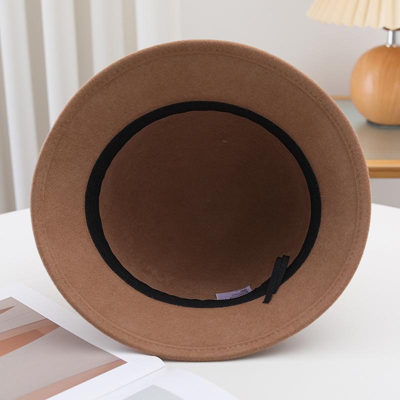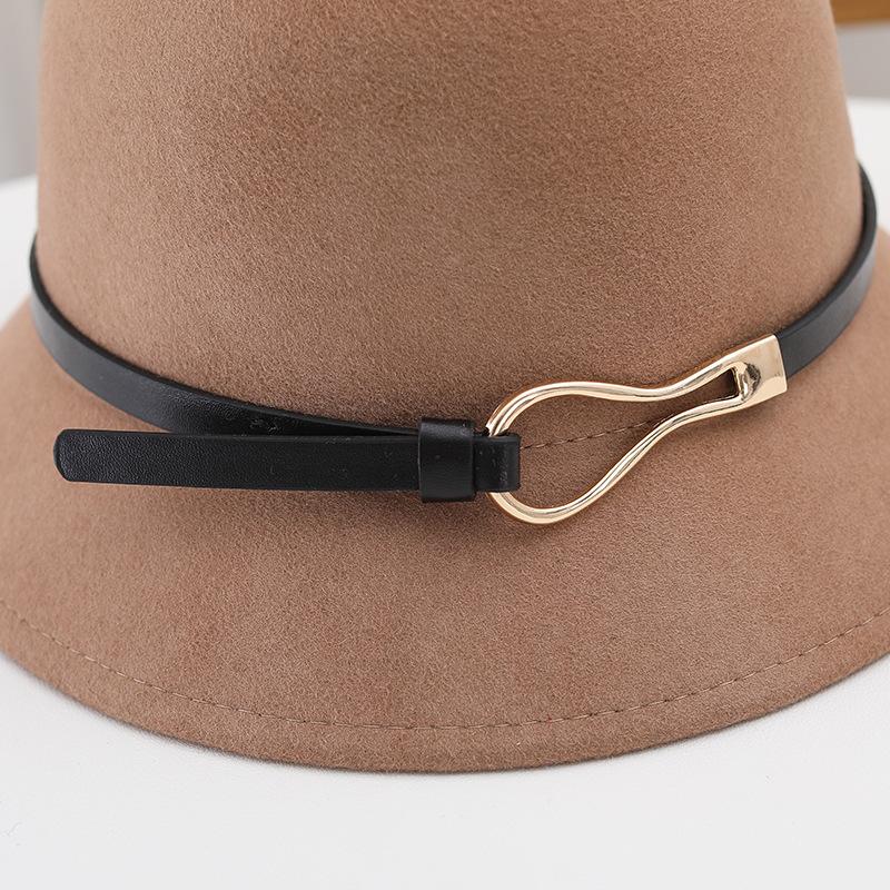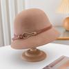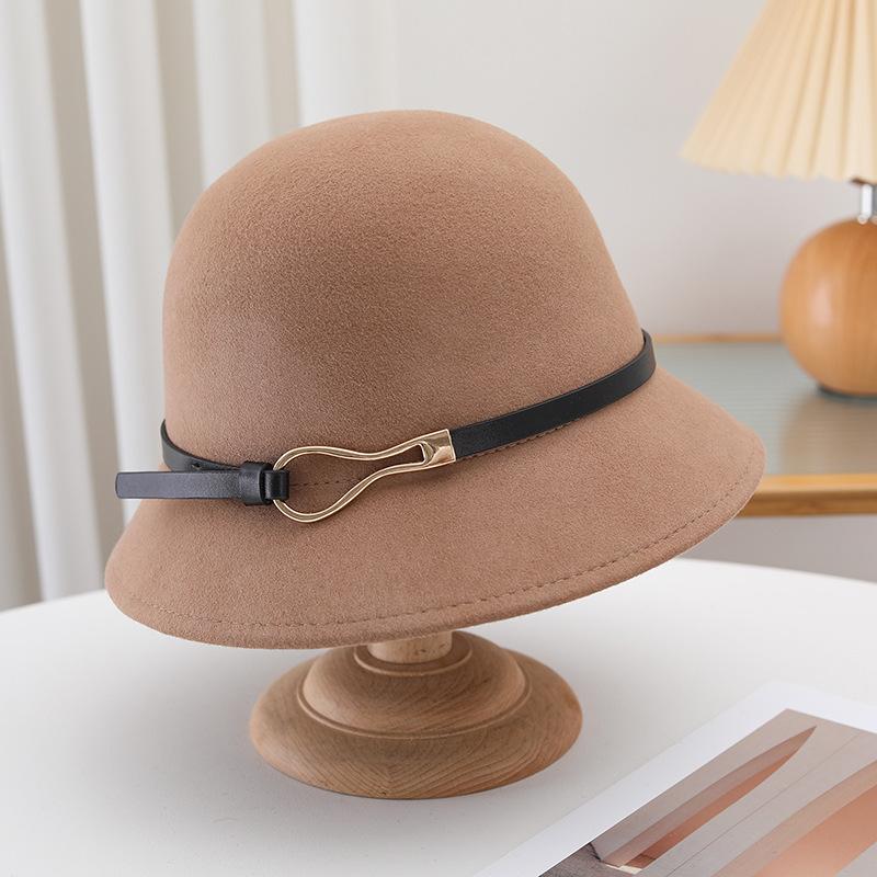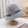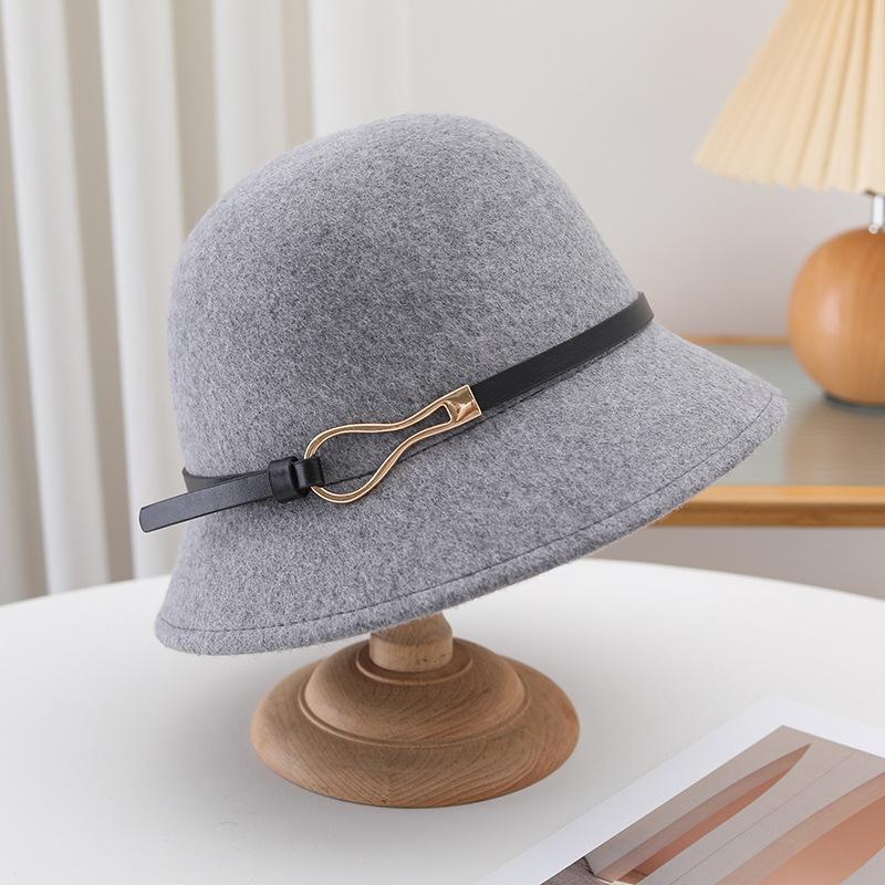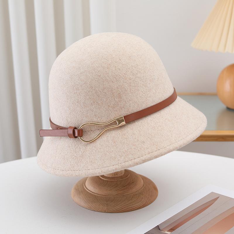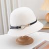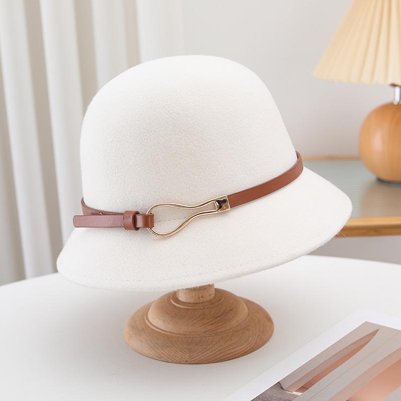 Sombrero de copa de lana con hebilla de cinturón para mujer, estilo Hepburn de otoño e invierno, sensación de rostro pequeño, sombrero de pescador de cúpula vintage