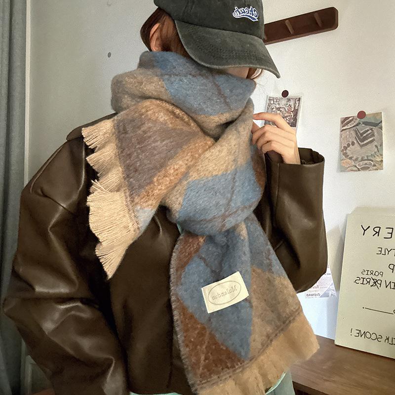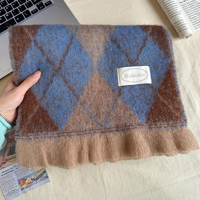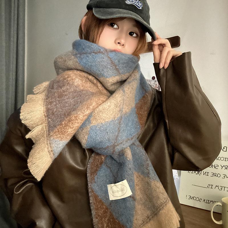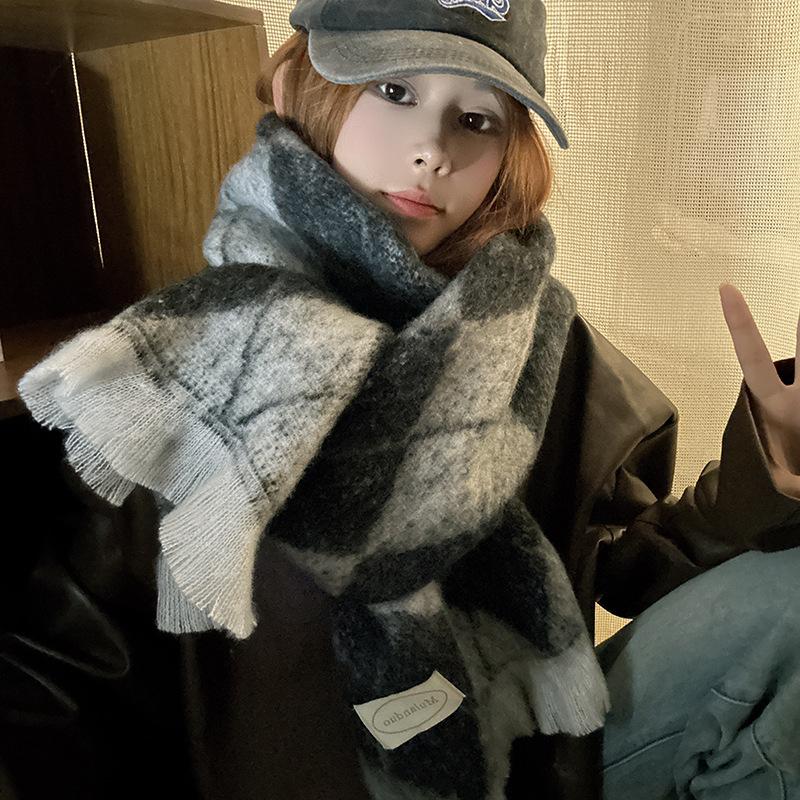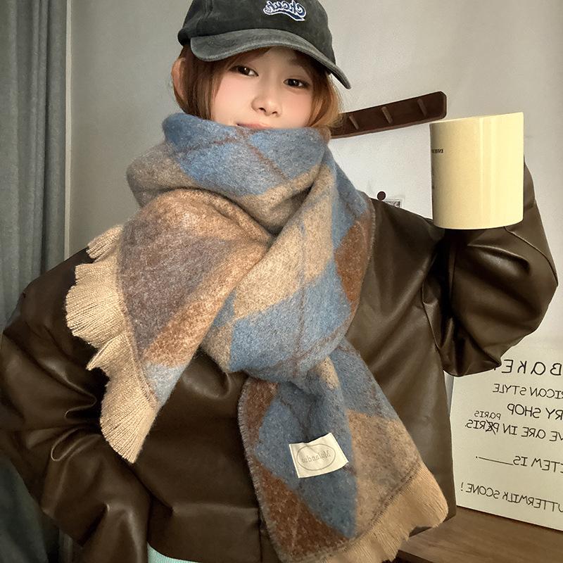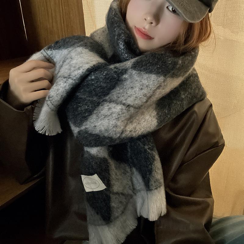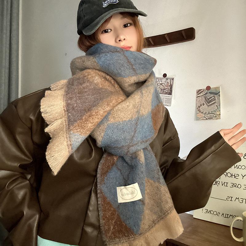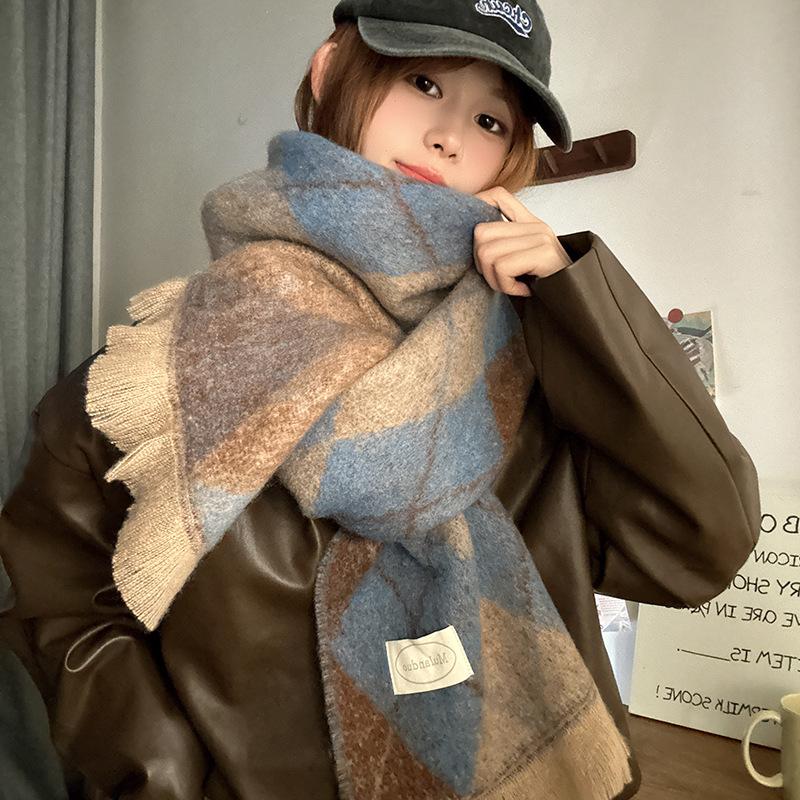 Para algunos C ~ azul oscuro azul claro * color bufanda de diamante otoño e invierno cálido Joker bufanda de Año Nuevo amantes mujeres