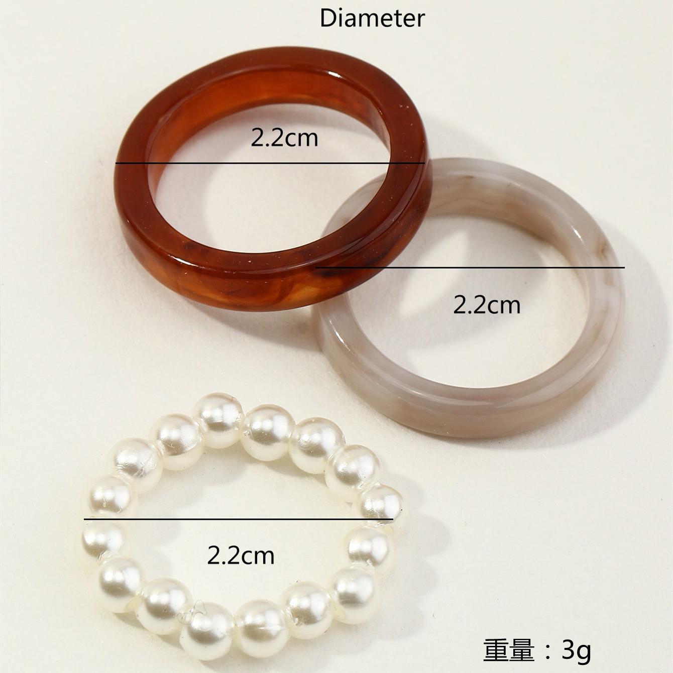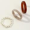Juego de 3 anillos de perlas acrílicas de moda japonesa y coreana, personalizados, creativos, simples, estilo Mori, estilo frío, temperamento retro, moderno
