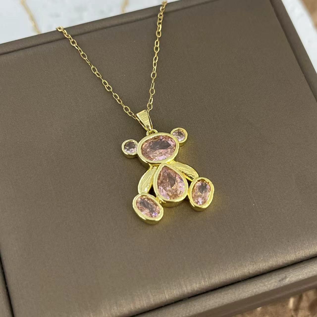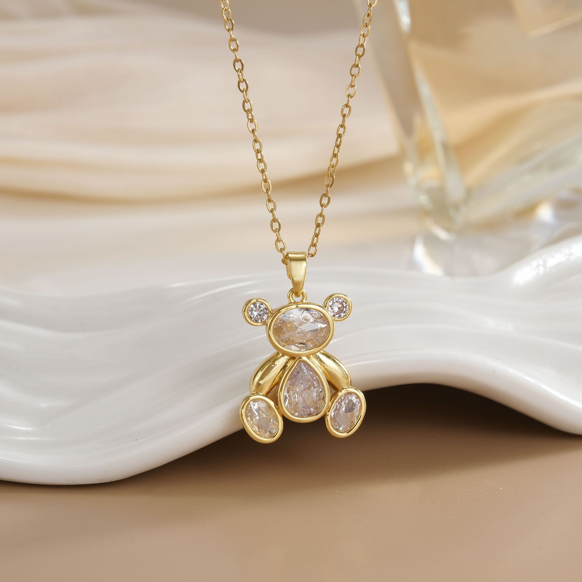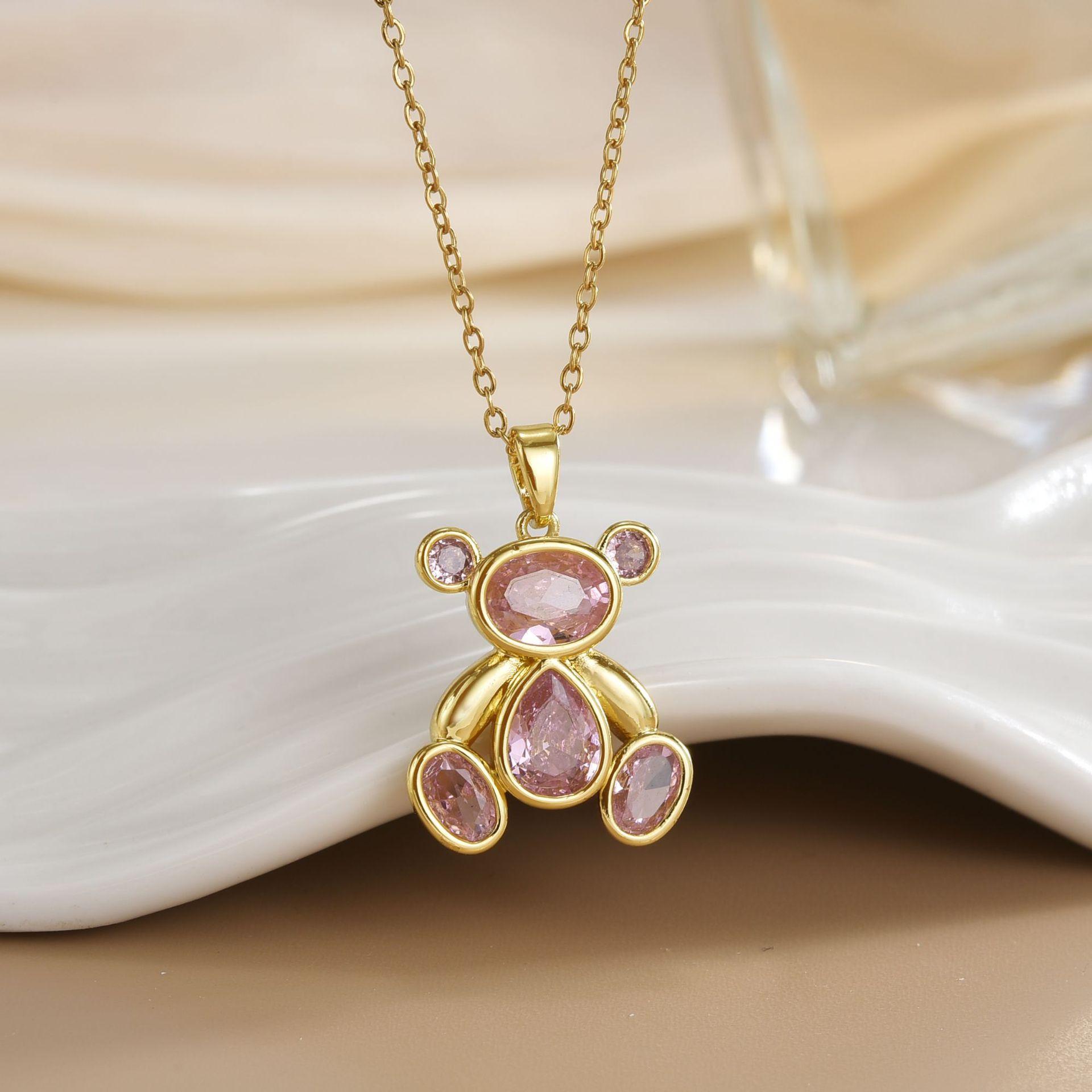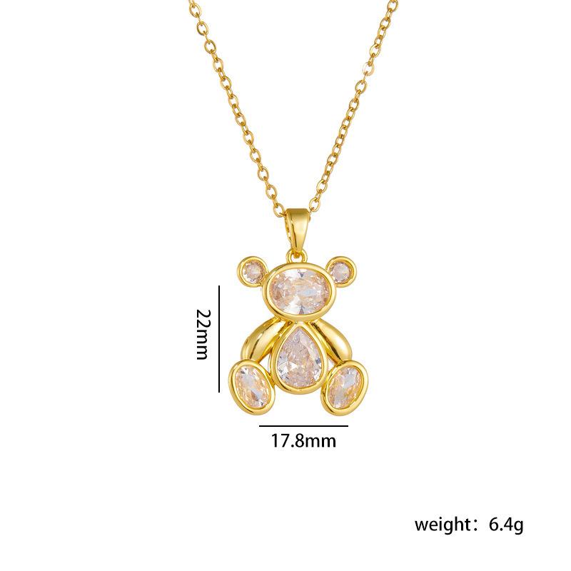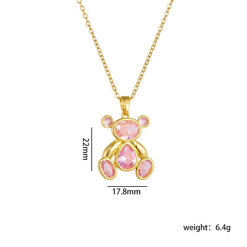 Collar con colgante de oso globo de dibujos animados de circonita bañado en cobre y oro de 18 quilates, muy popular entre las mujeres, accesorios personalizados de alta calidad.