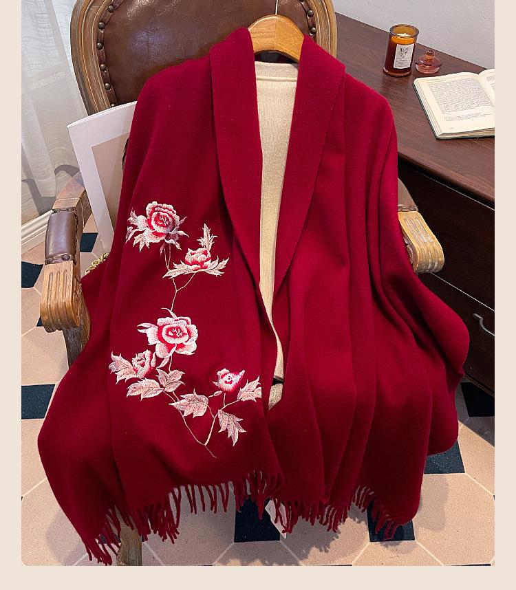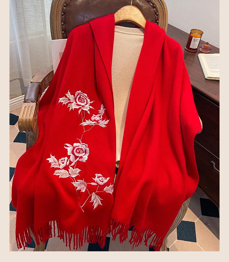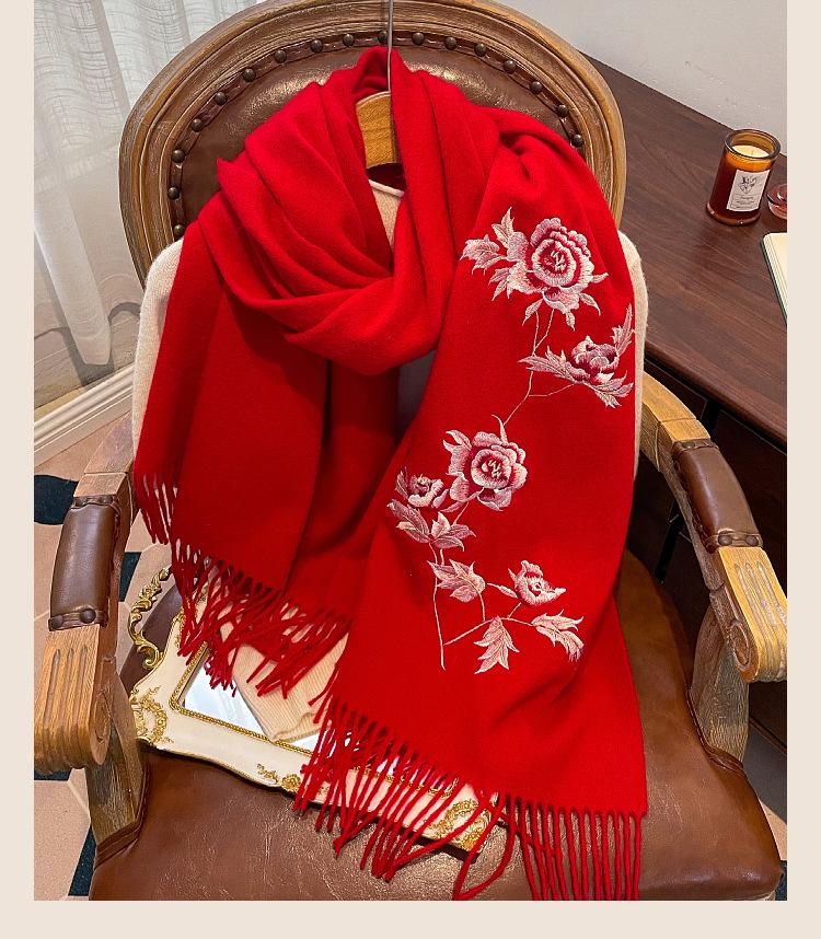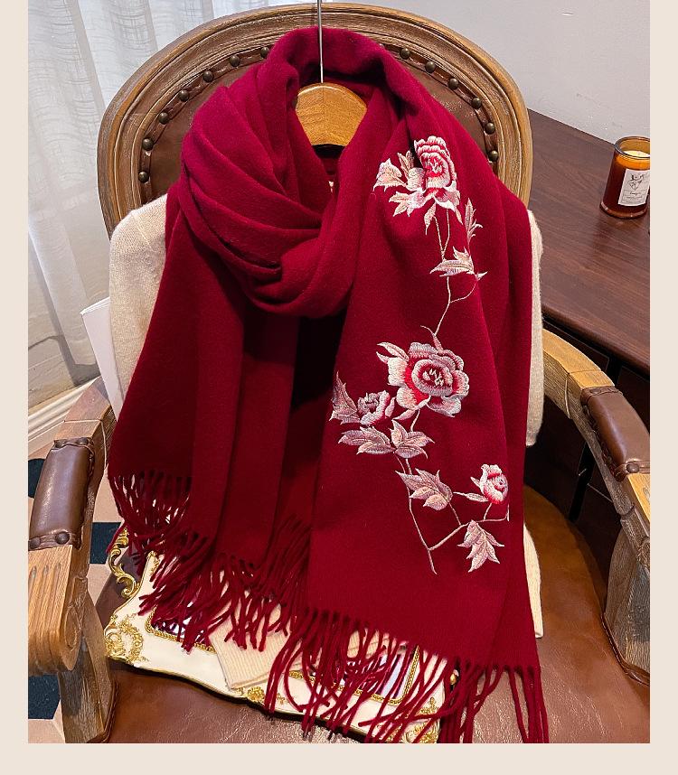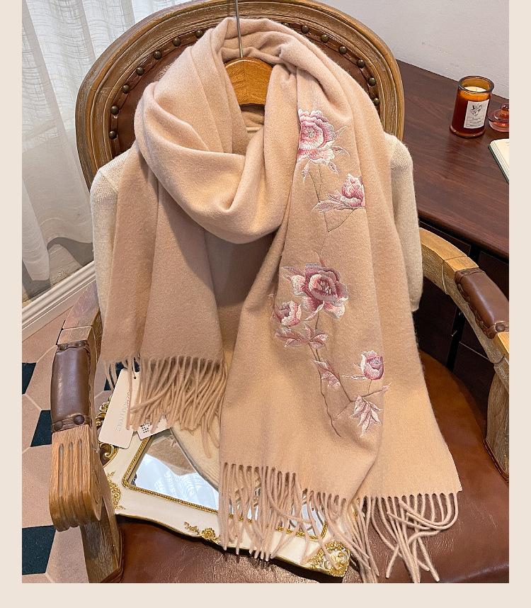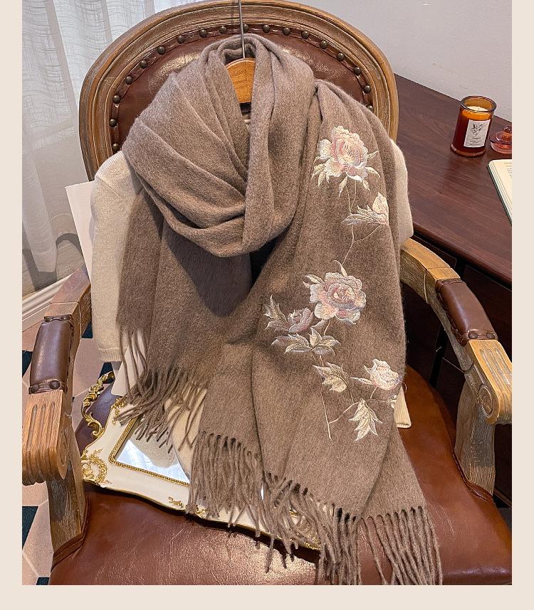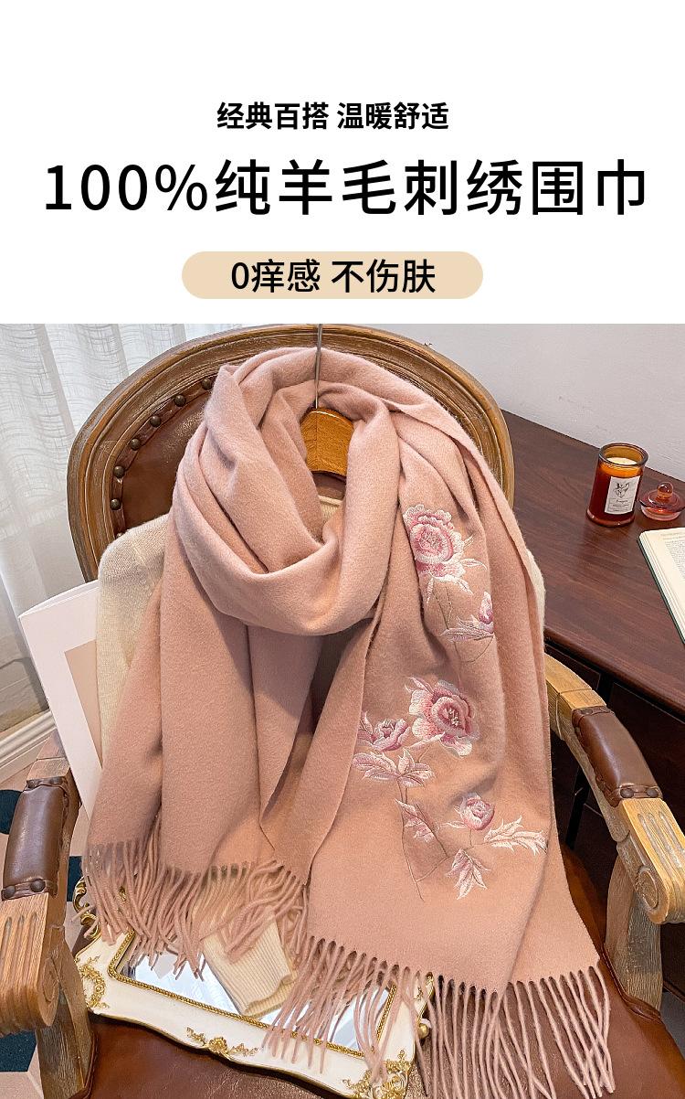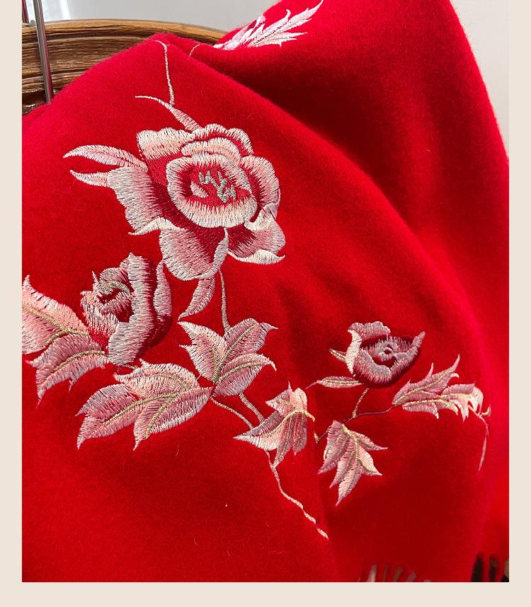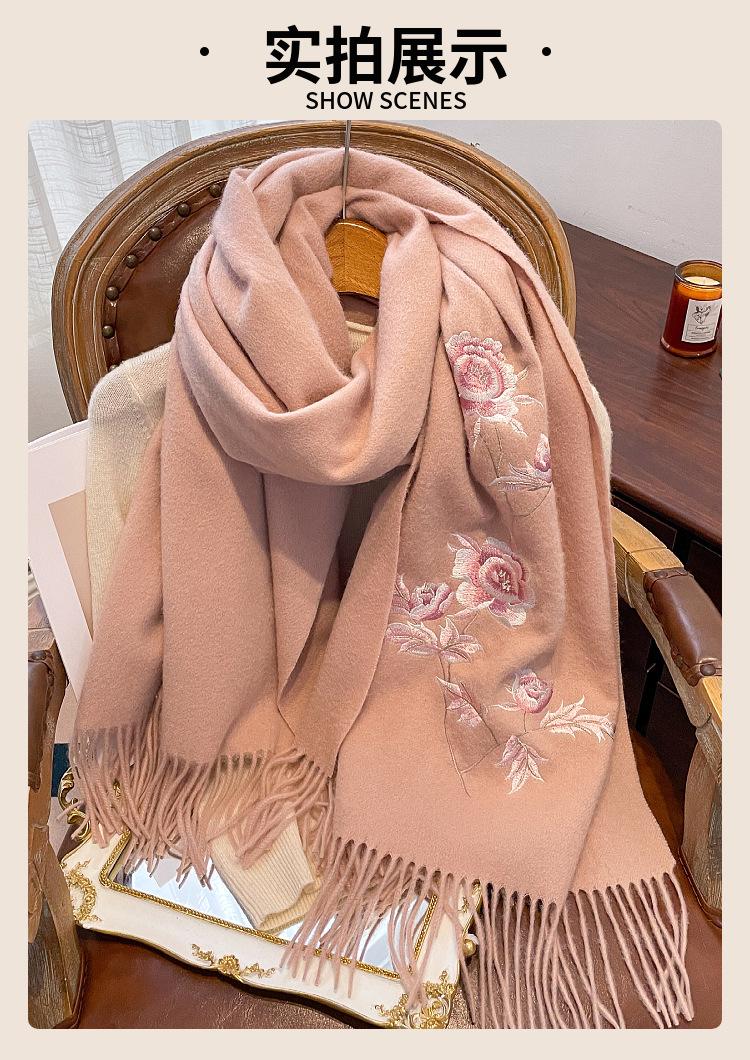 Bufanda Bordada de Alta Calidad para Otoño e Invierno para Mujer, Nueva Llegada, Estilo Chino, Bufanda 100% Lana, Regalo de Moda para Madre