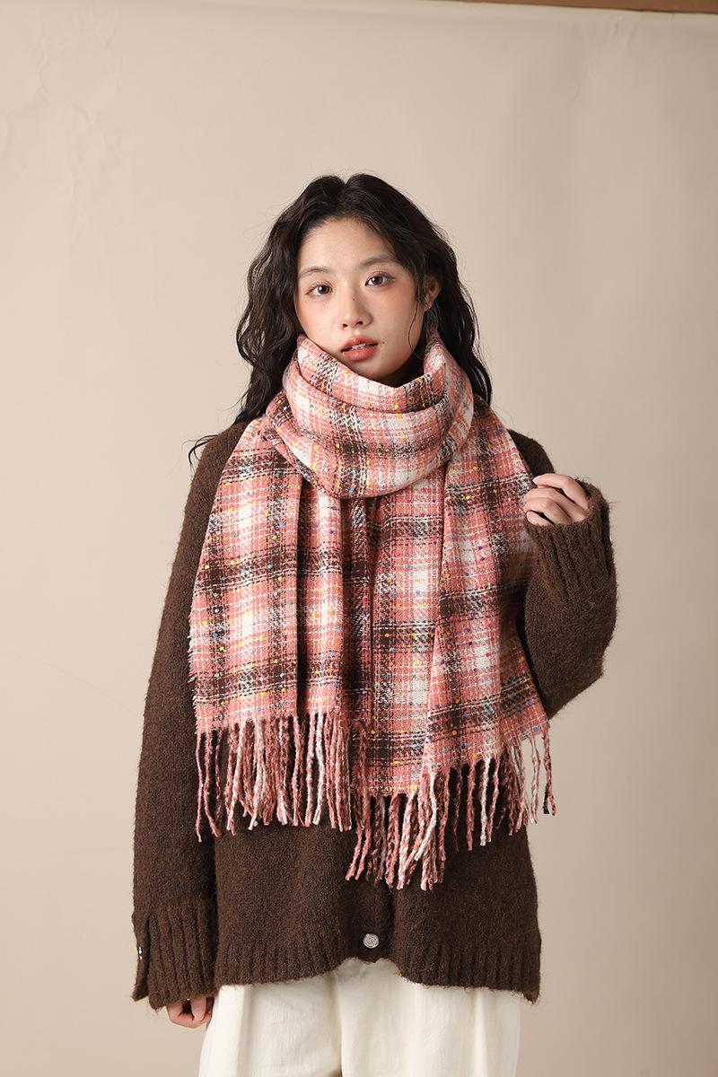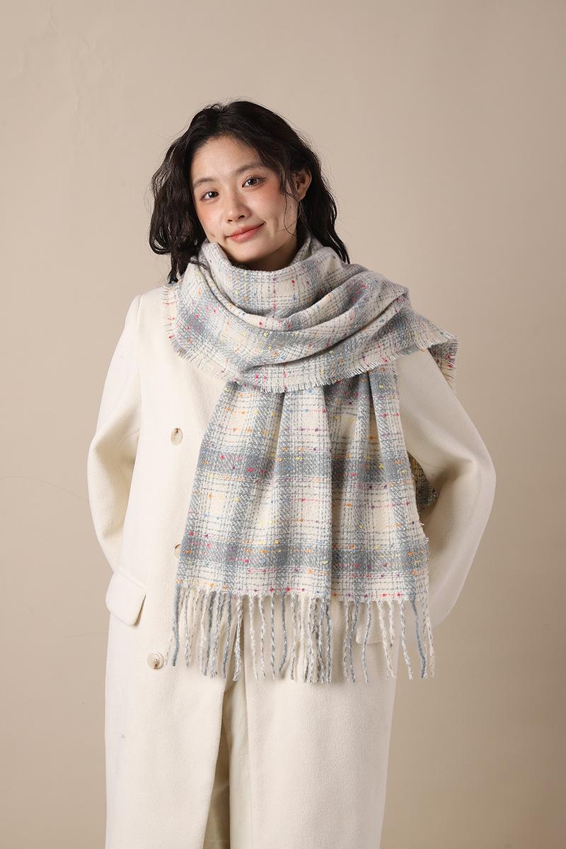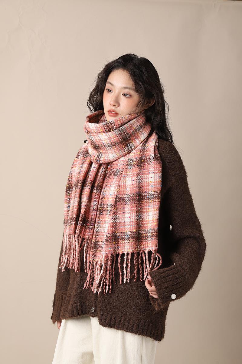 2025 Nuevo Estilo Coreano Bufanda de Cuadros de Gipsófila para Mujer Otoño e Invierno Chal para Pareja de Estudiantes Bufanda Versátil Cálida Venta al por Mayor