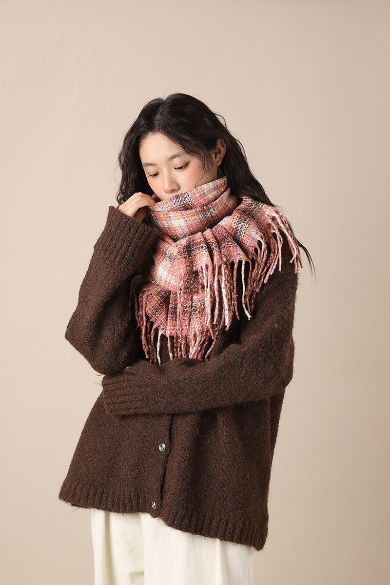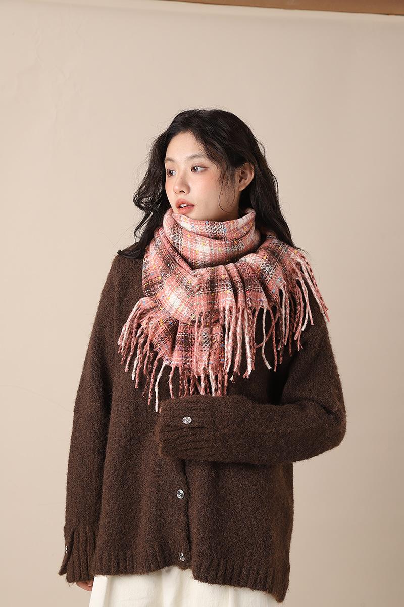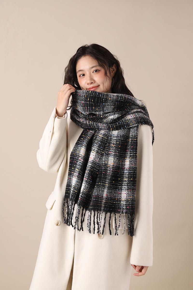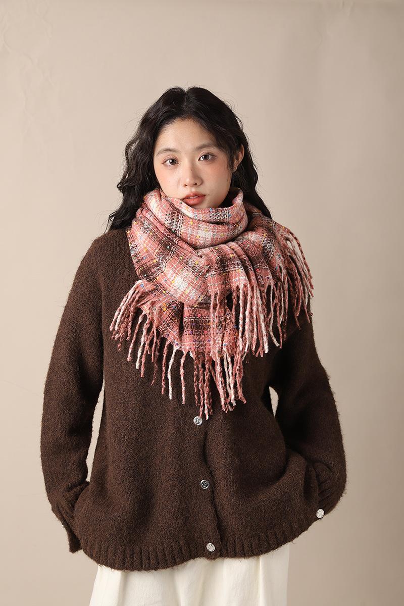 2025 Nuevo Estilo Coreano Bufanda de Cuadros de Gipsófila para Mujer Otoño e Invierno Chal para Pareja de Estudiantes Bufanda Versátil Cálida Venta al por Mayor