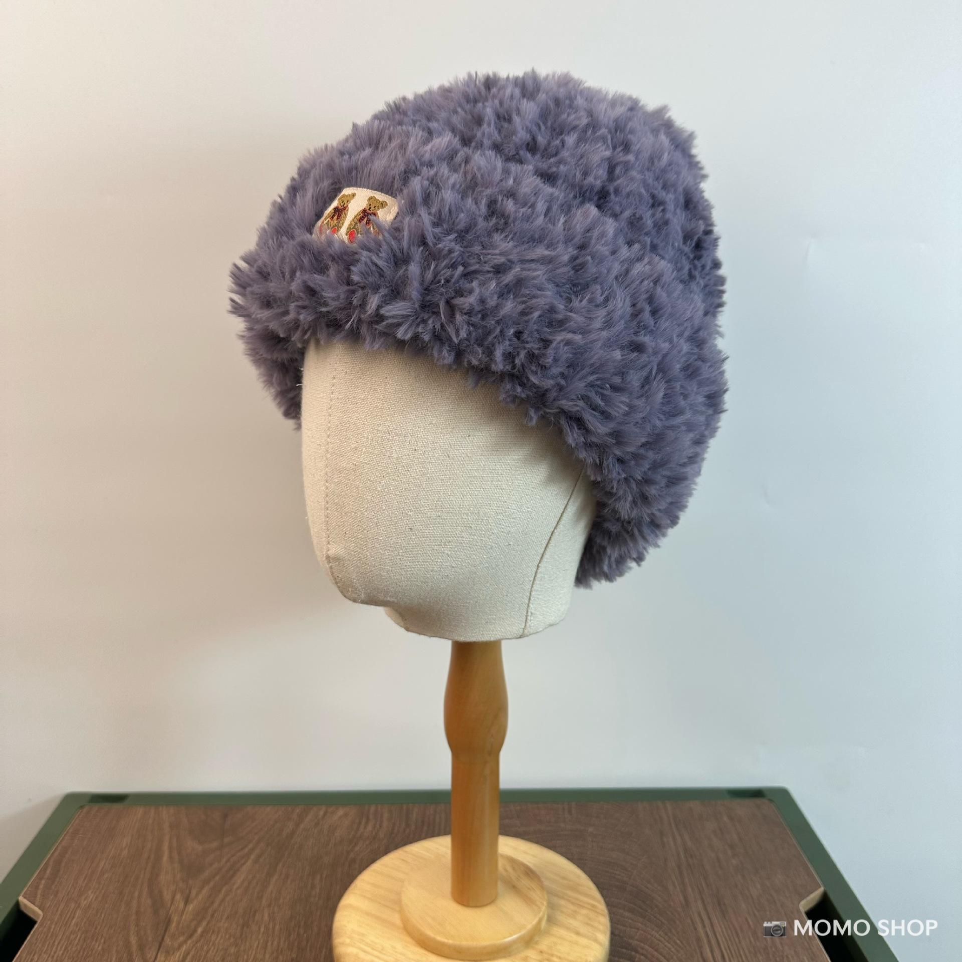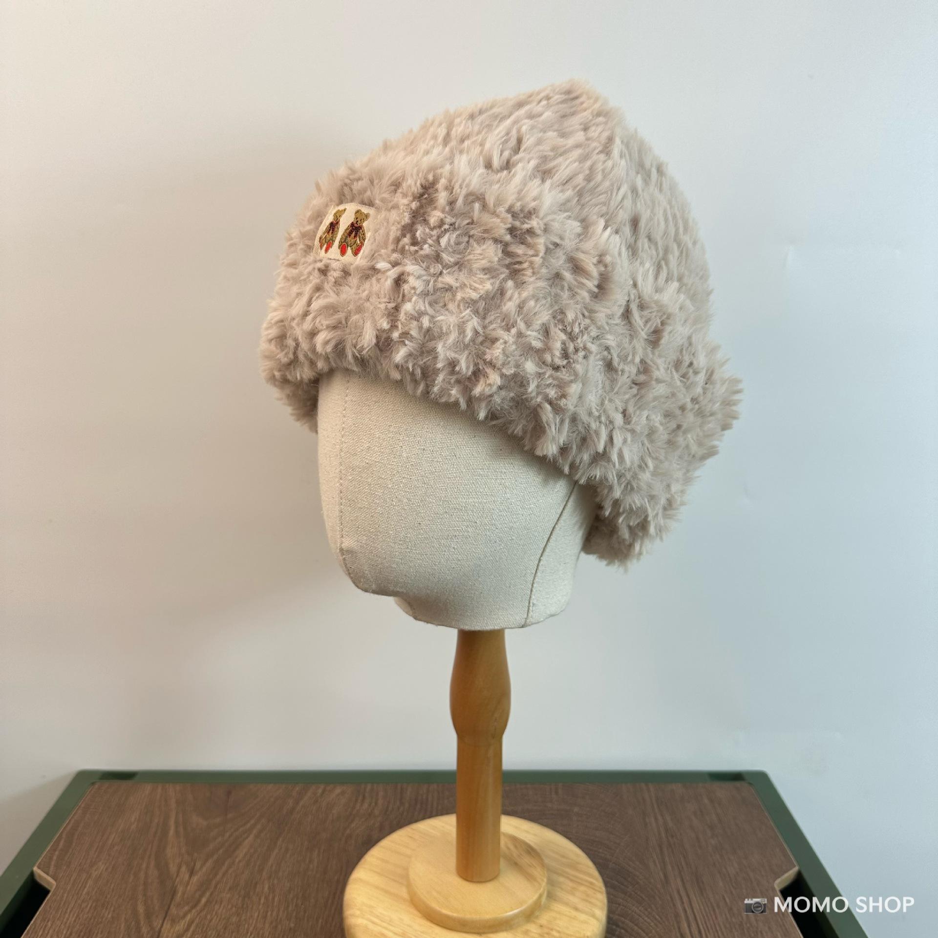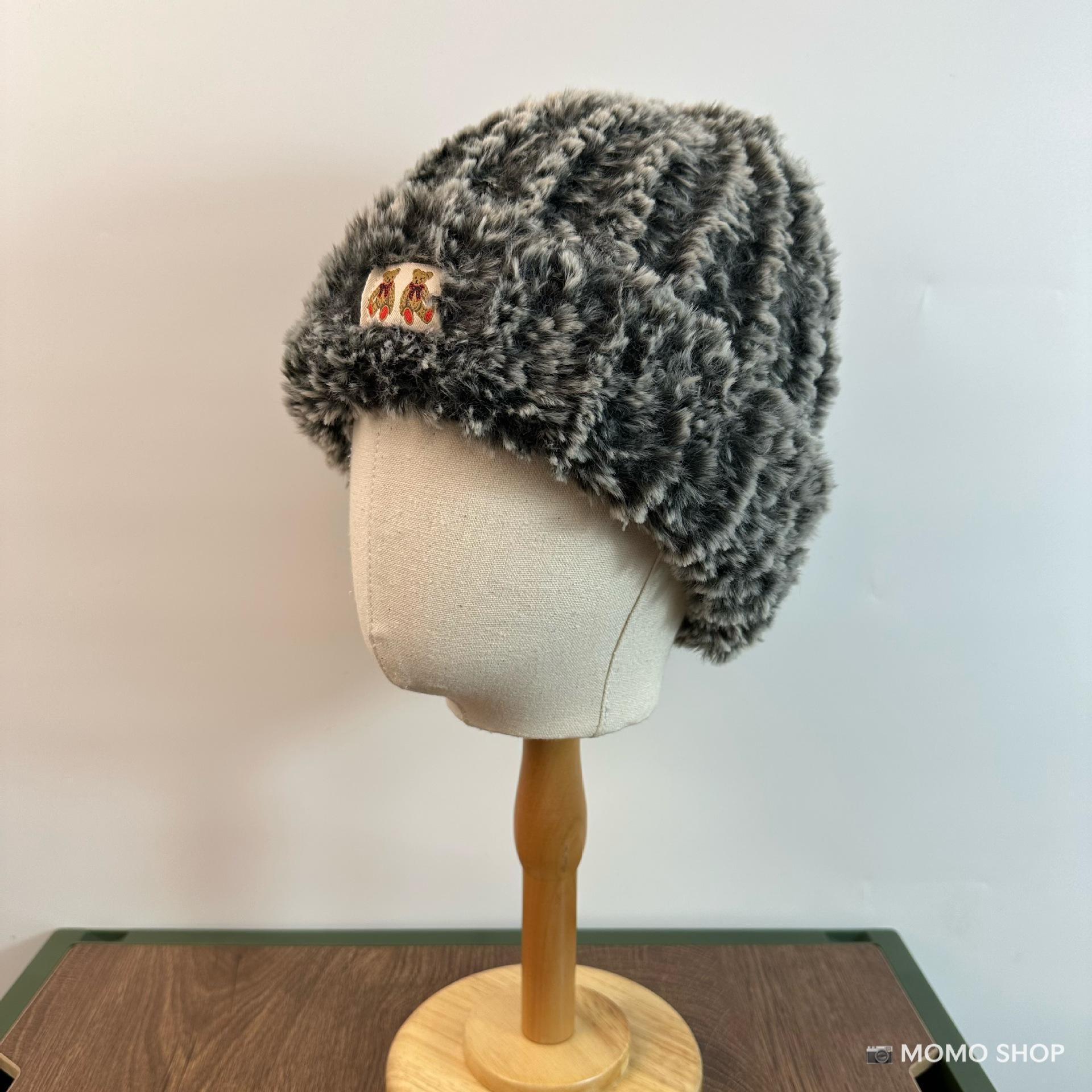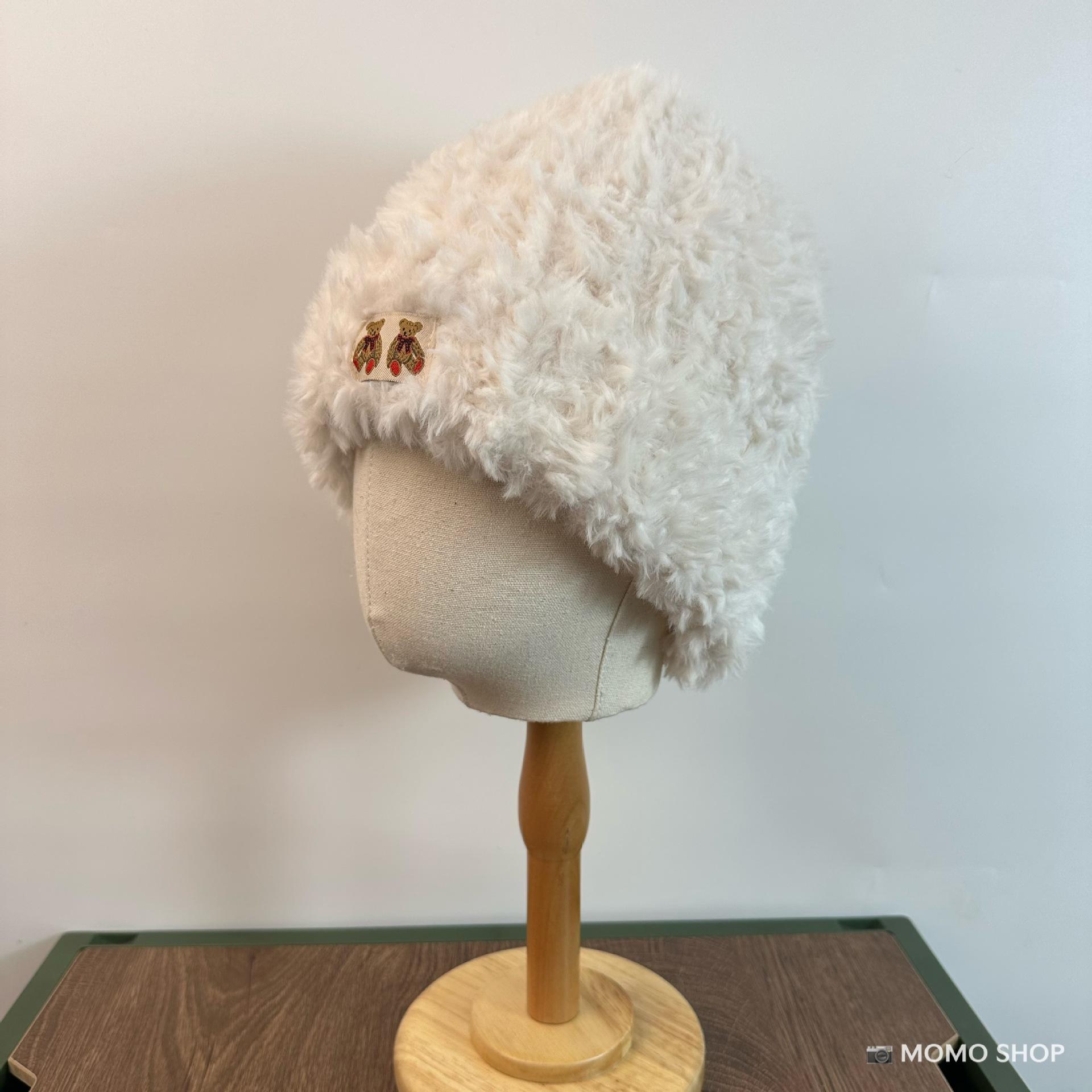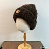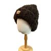 Gorro esponjoso con etiqueta de tela de dos osos para niños, otoño e invierno, cálido, resistente al frío, con protección para los oídos, gorro de lana de punto, cara linda pequeña