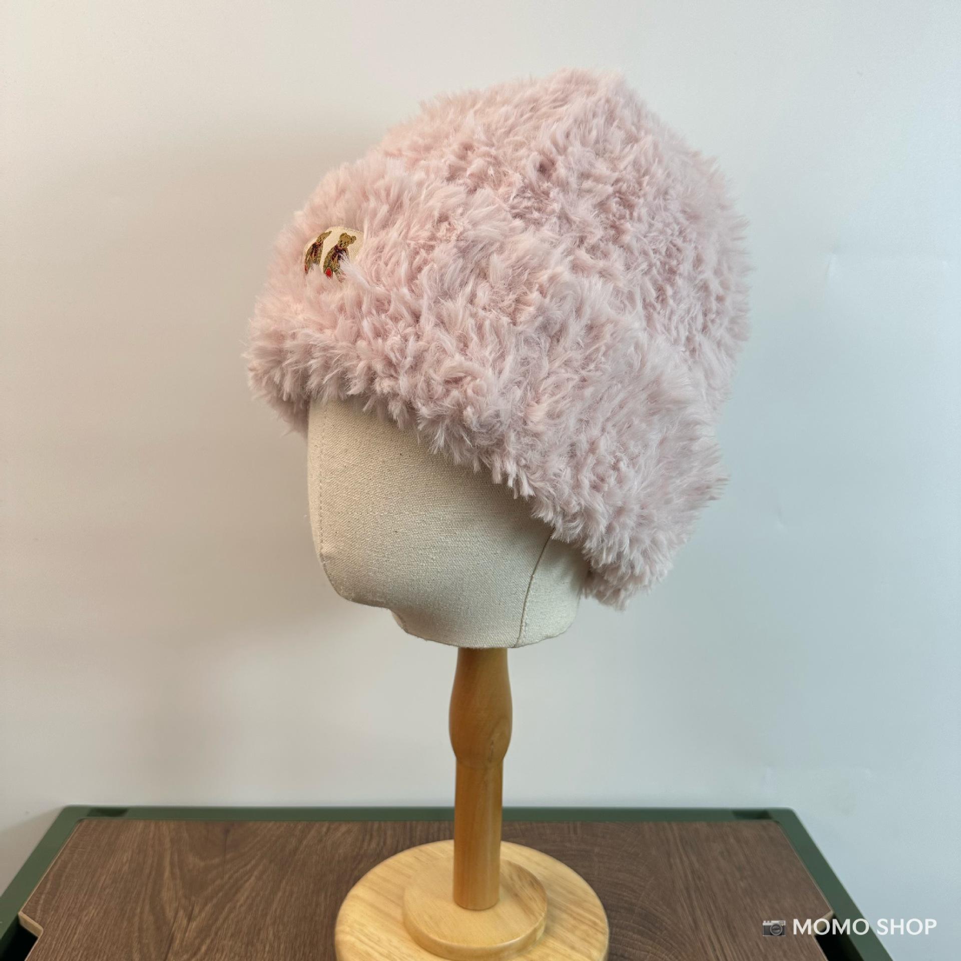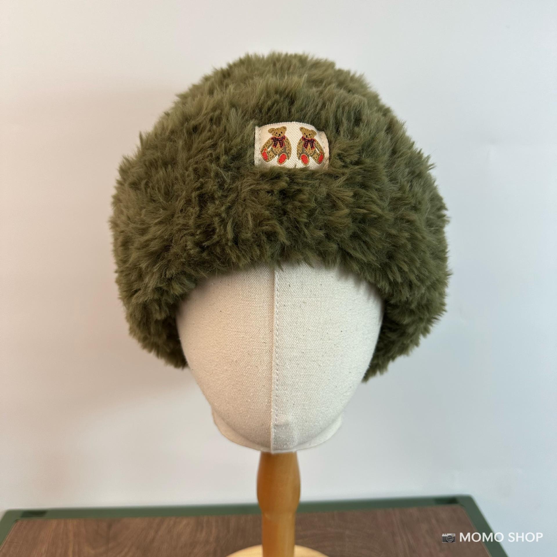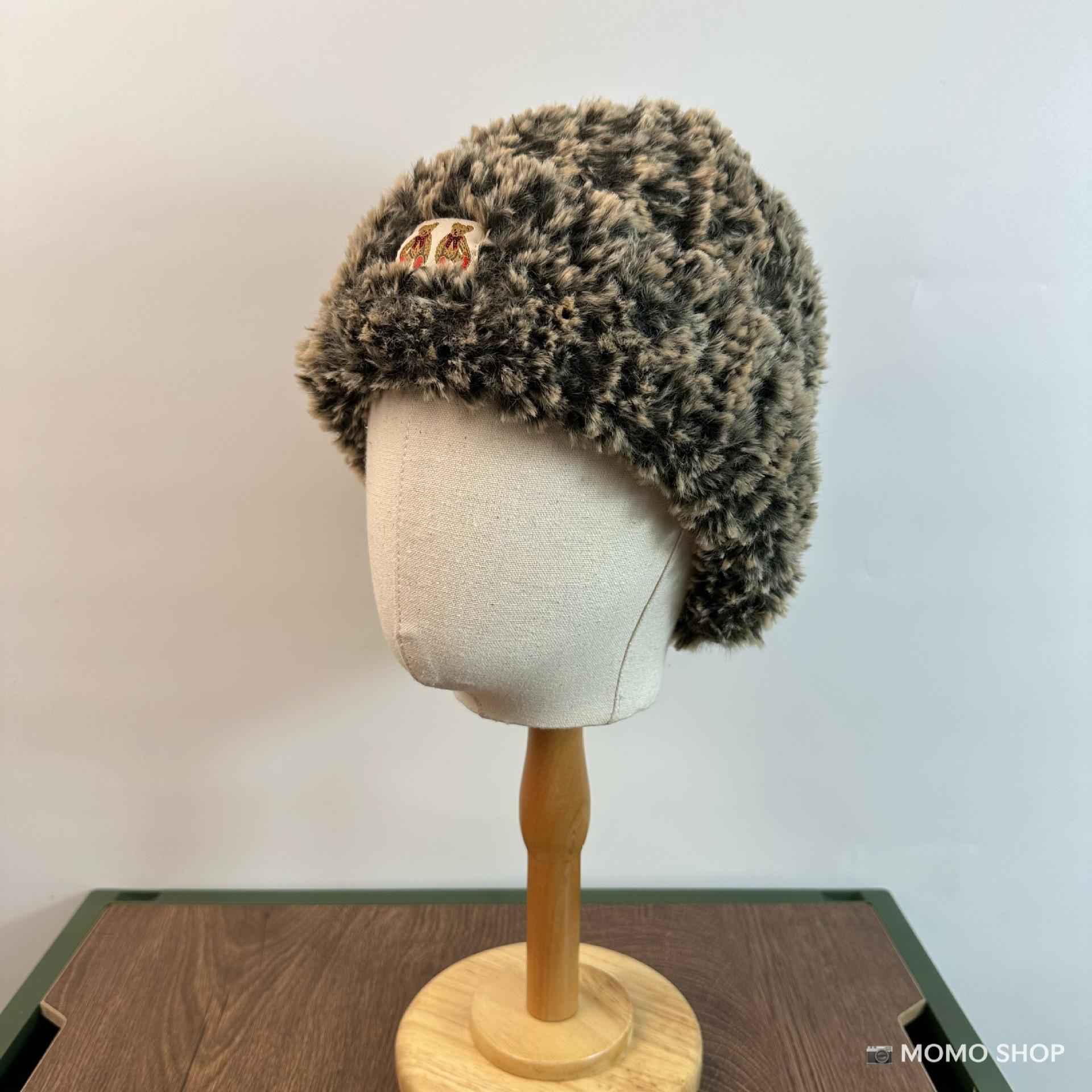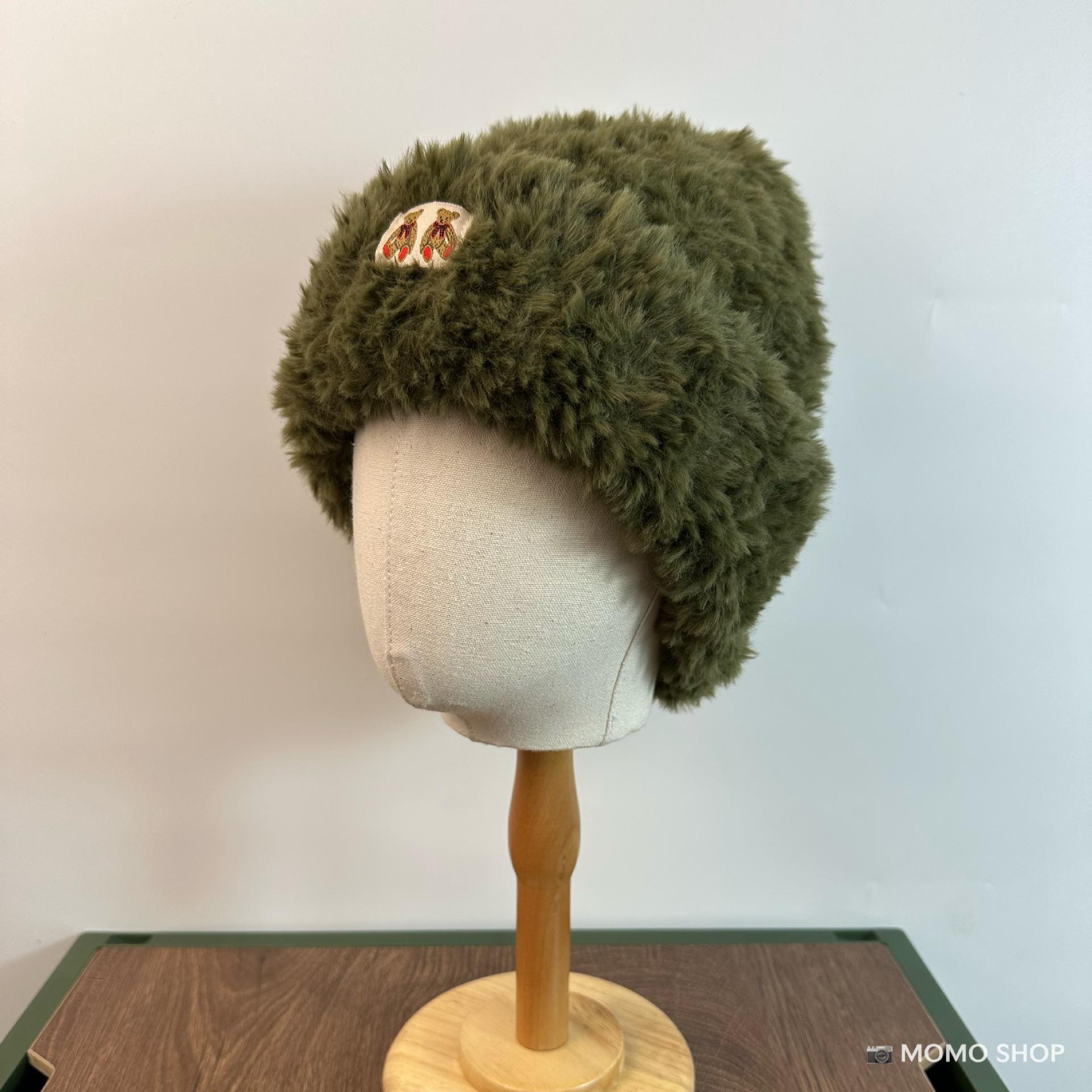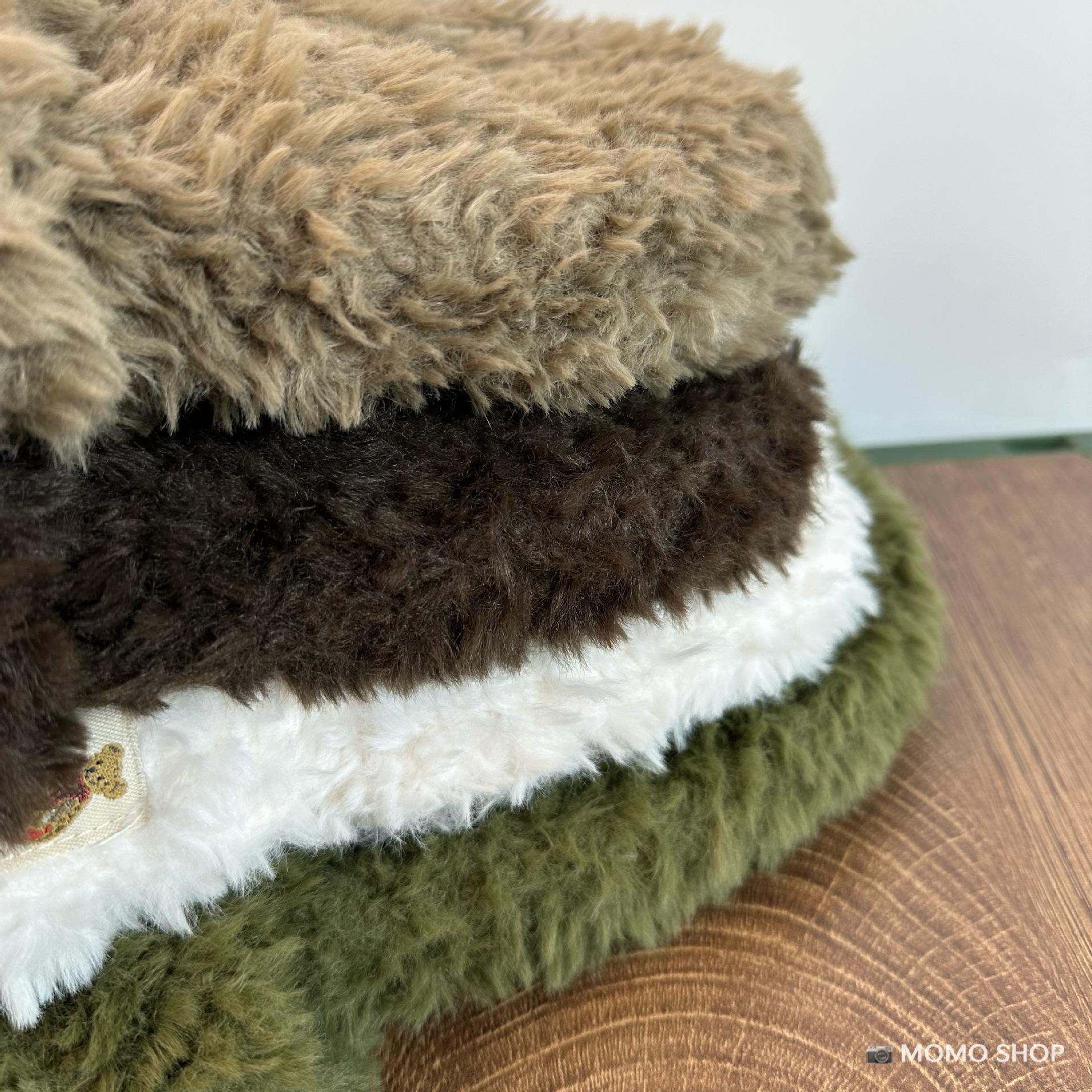 Gorro esponjoso con etiqueta de tela de dos osos para niños, otoño e invierno, cálido, resistente al frío, con protección para los oídos, gorro de lana de punto, cara linda pequeña