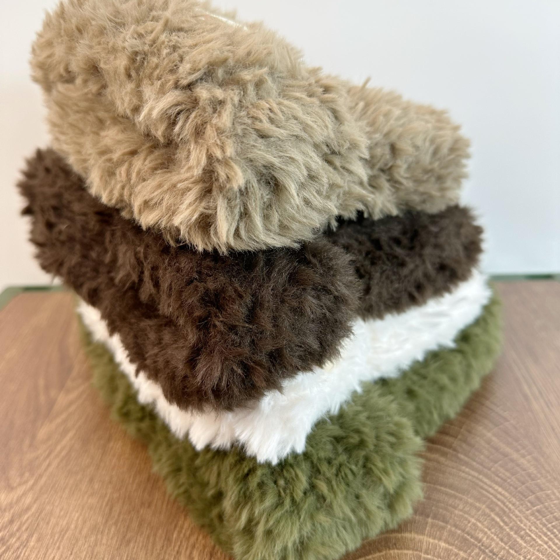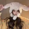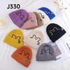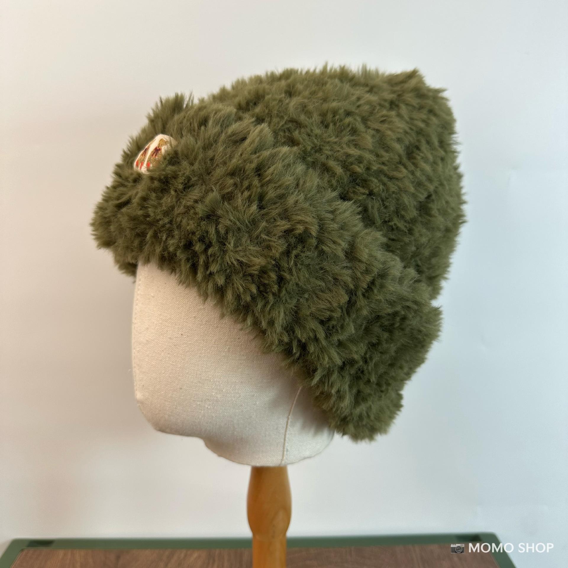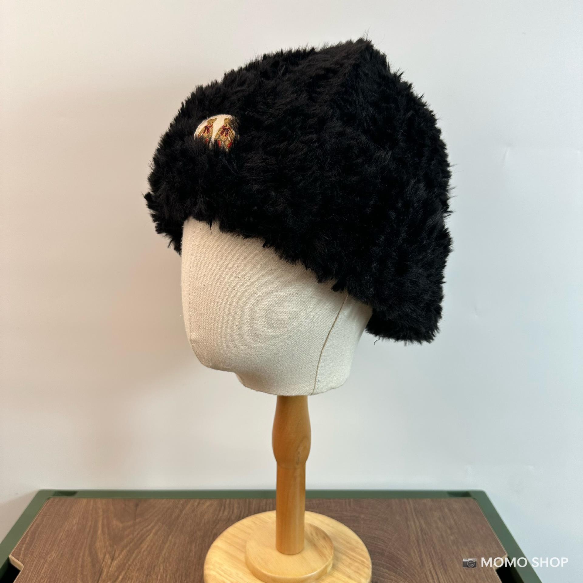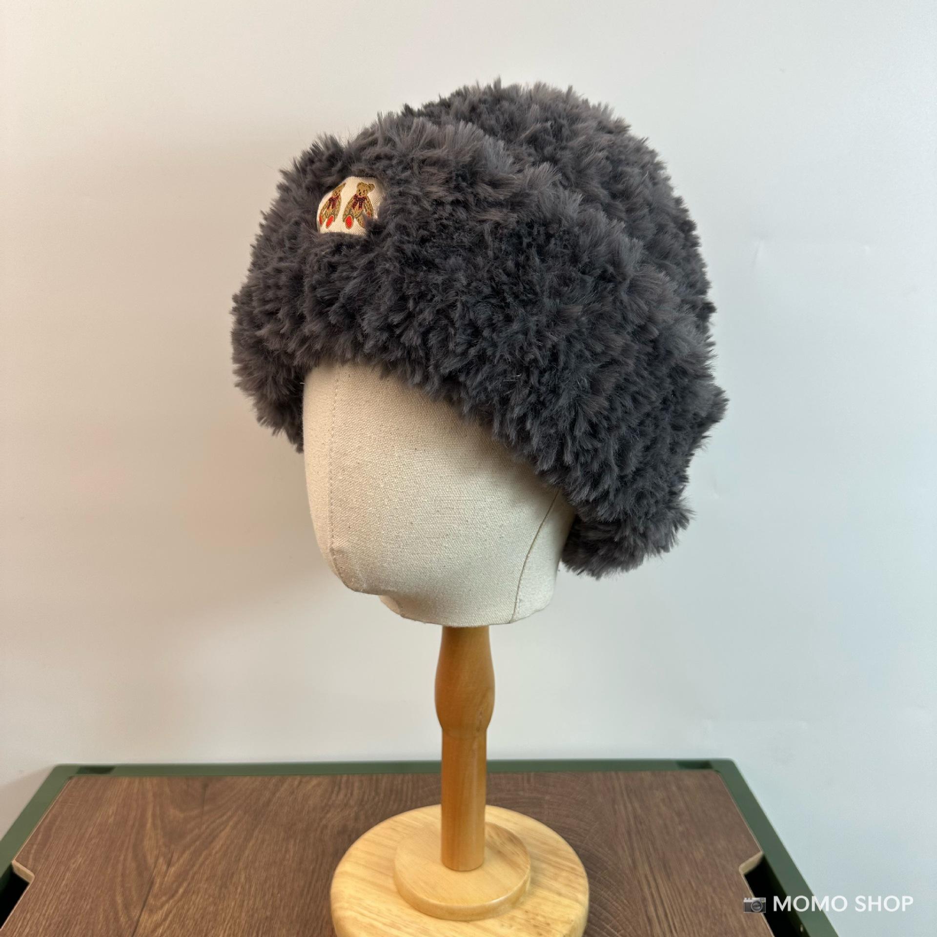 Gorro esponjoso con etiqueta de tela de dos osos para niños, otoño e invierno, cálido, resistente al frío, con protección para los oídos, gorro de lana de punto, cara linda pequeña