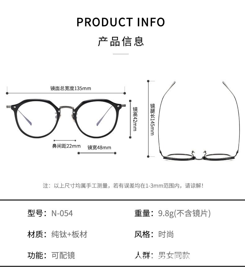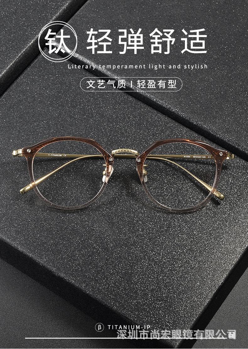 Gafas para miopía de titanio puro con degradado de dos colores, cara pequeña, artefacto liso, placa poligonal retro N054, montura para gafas de celebridades de Internet