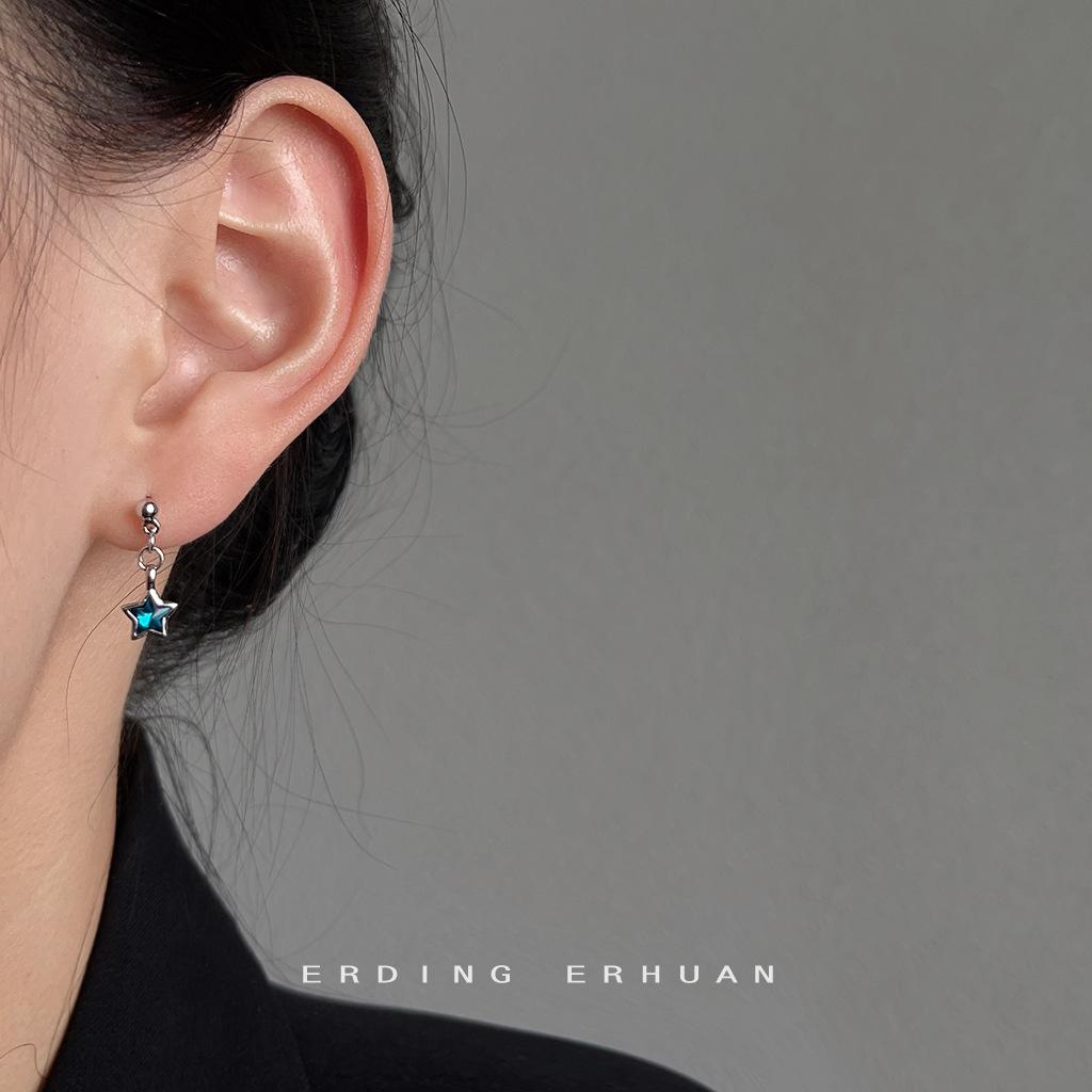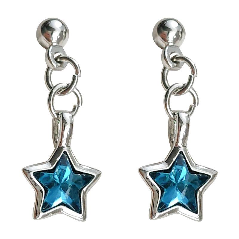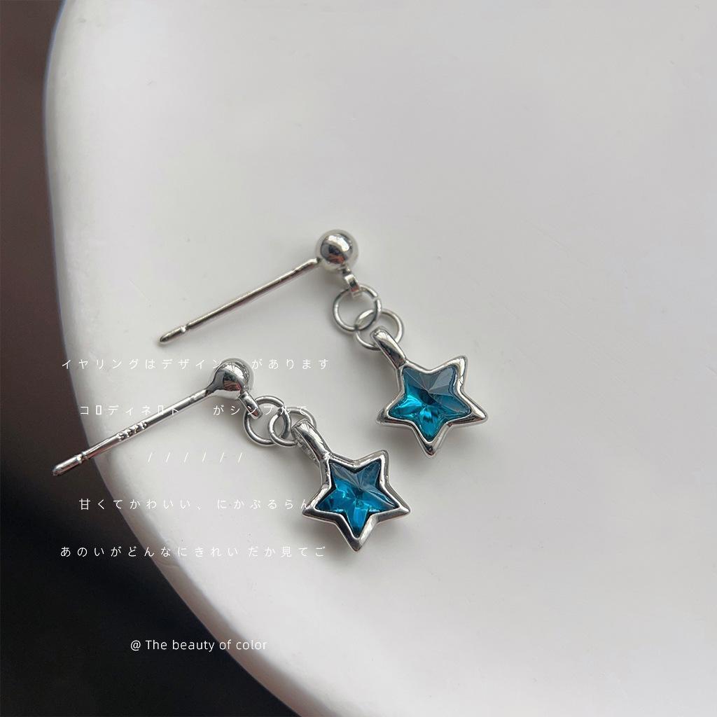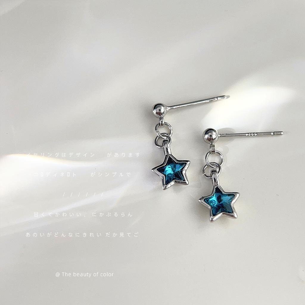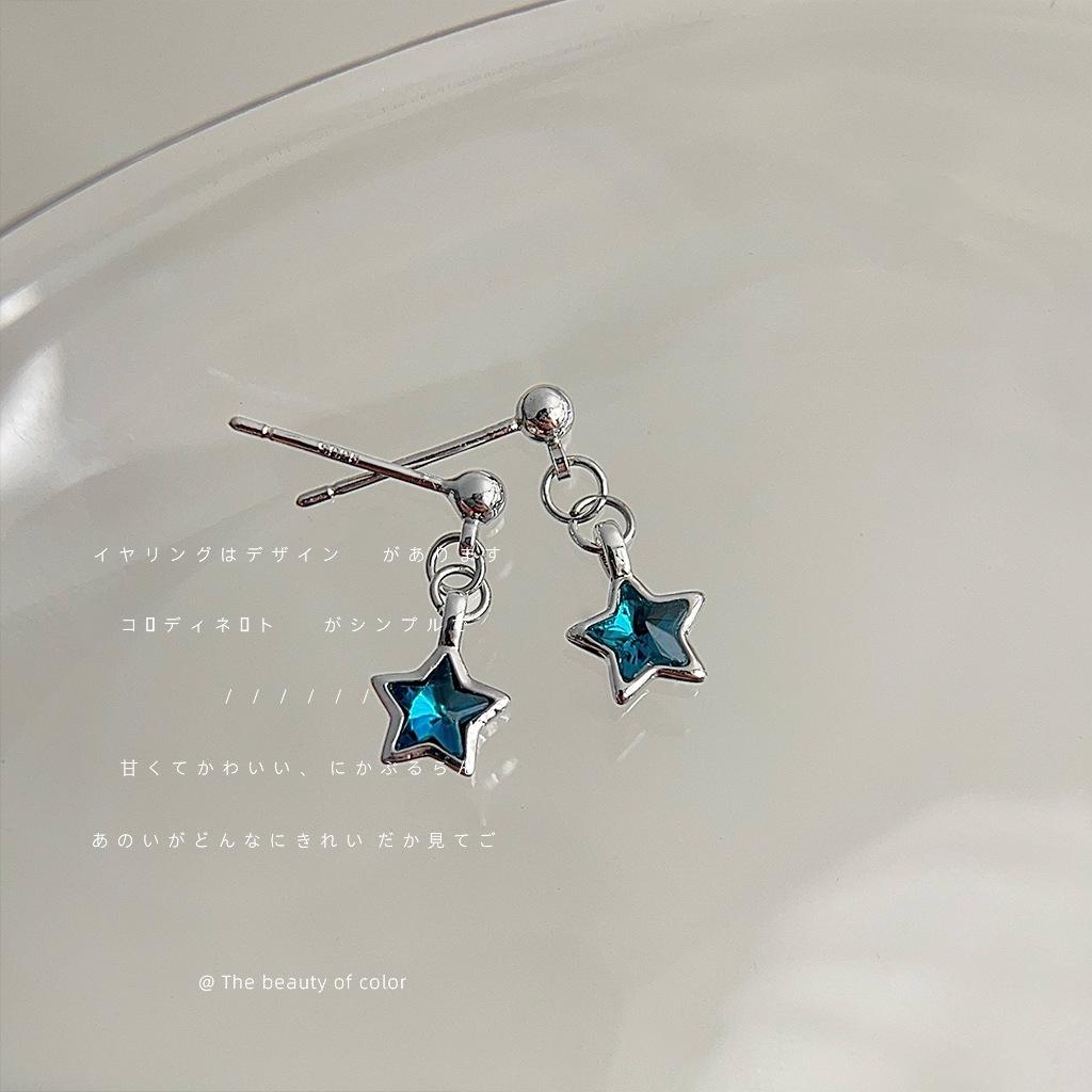Mini pendientes de estrella de cinco puntas de cristal azul, exquisitos pendientes sencillos y bonitos.