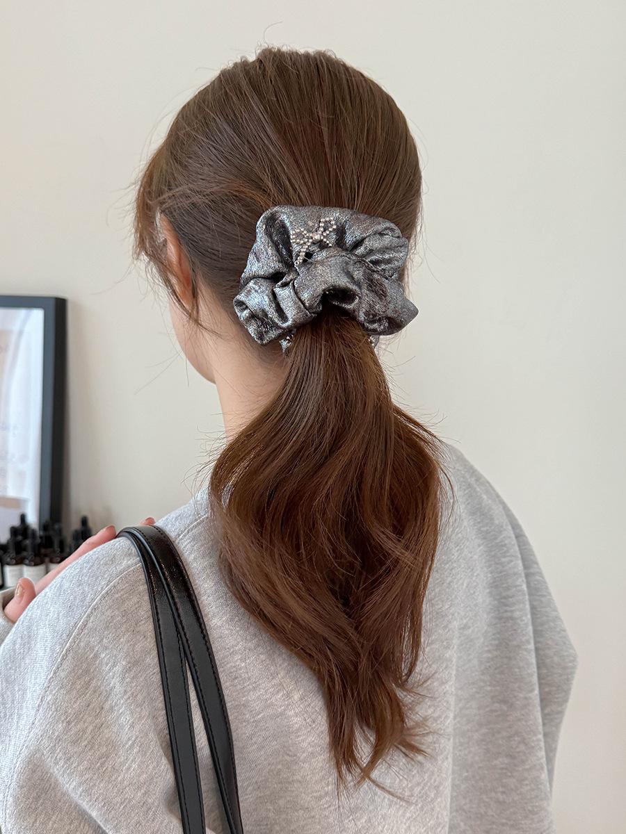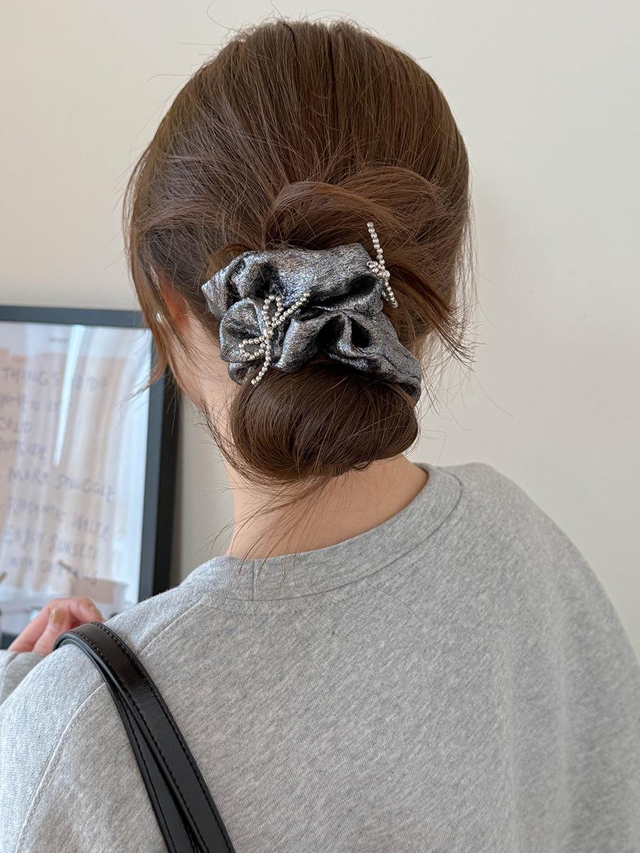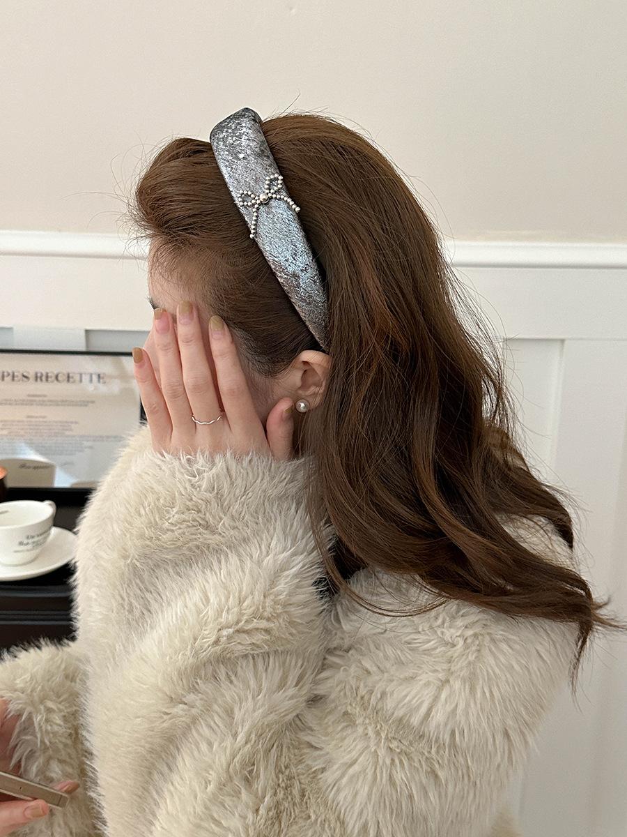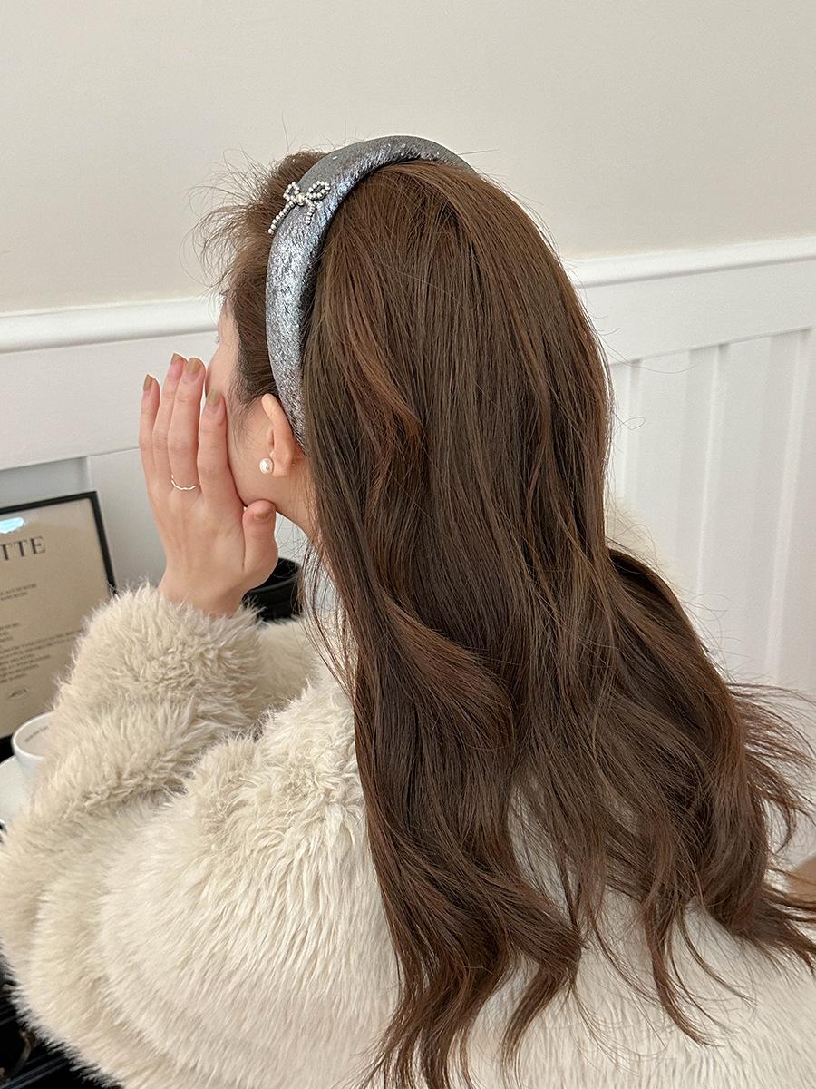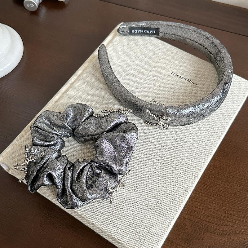 Diadema con lazo plateado metálico de alta gama para mujer, banda para el cabello con parte superior craneal alta que combina con todo, accesorio para el cabello para mujer