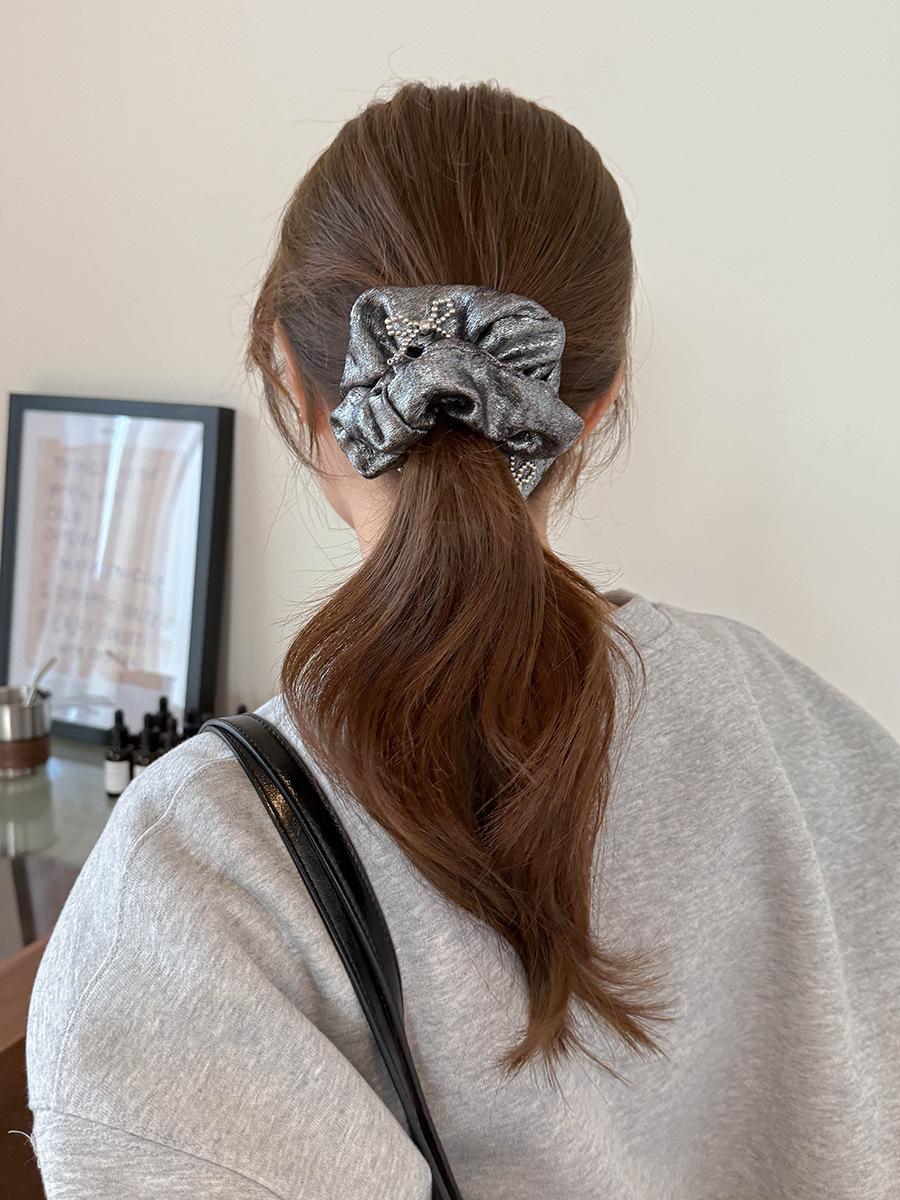 4564-1-gun gray bow headband, 4564-2-gun gray bow hair tie