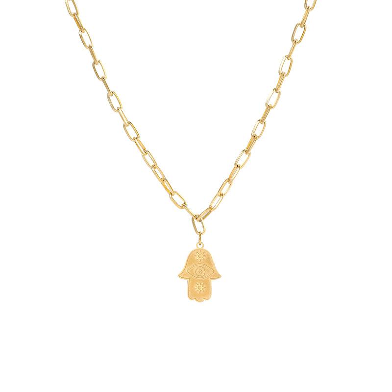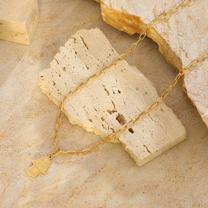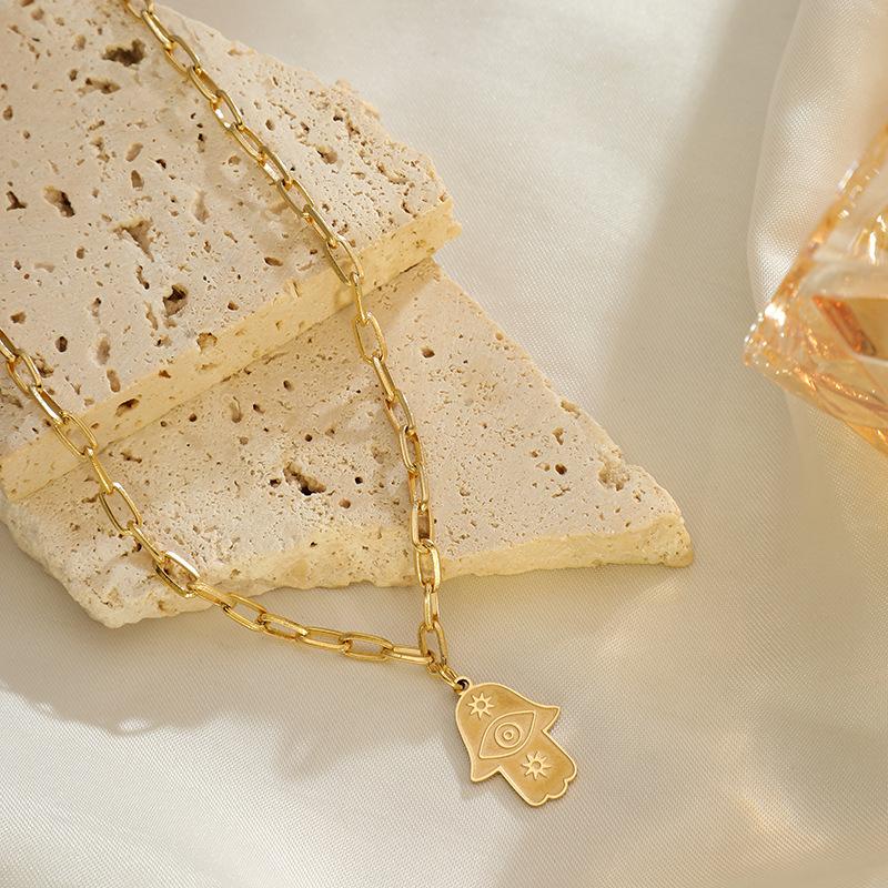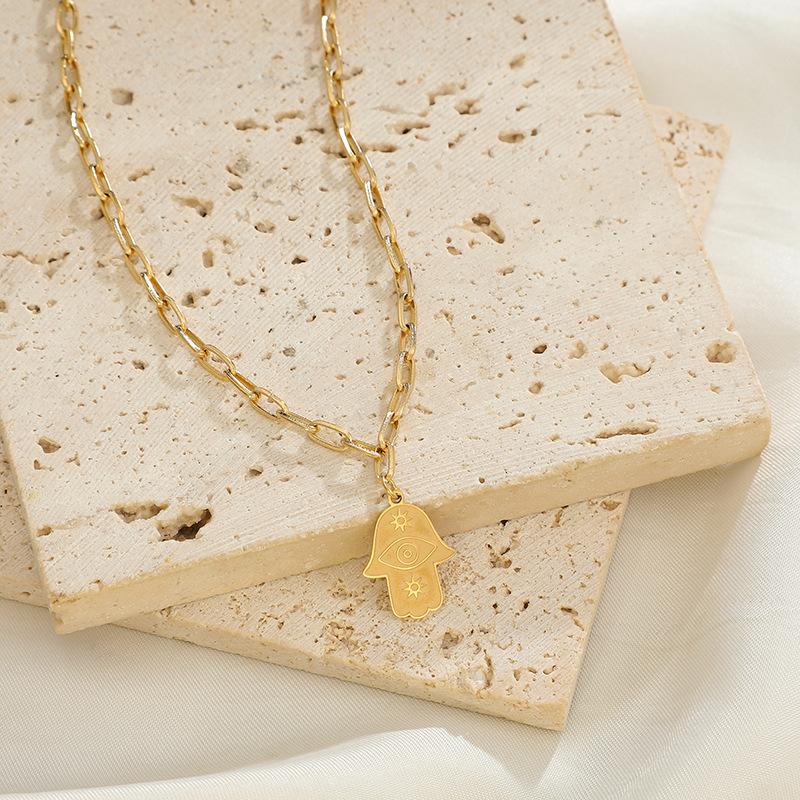 Collar con colgante de ojo de gato nuevo y atractivo transfronterizo de Europa y Estados Unidos, cadena de clavícula con personalidad que combina con todo, collar de acero inoxidable chapado en oro.