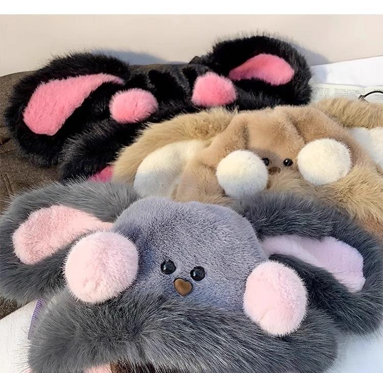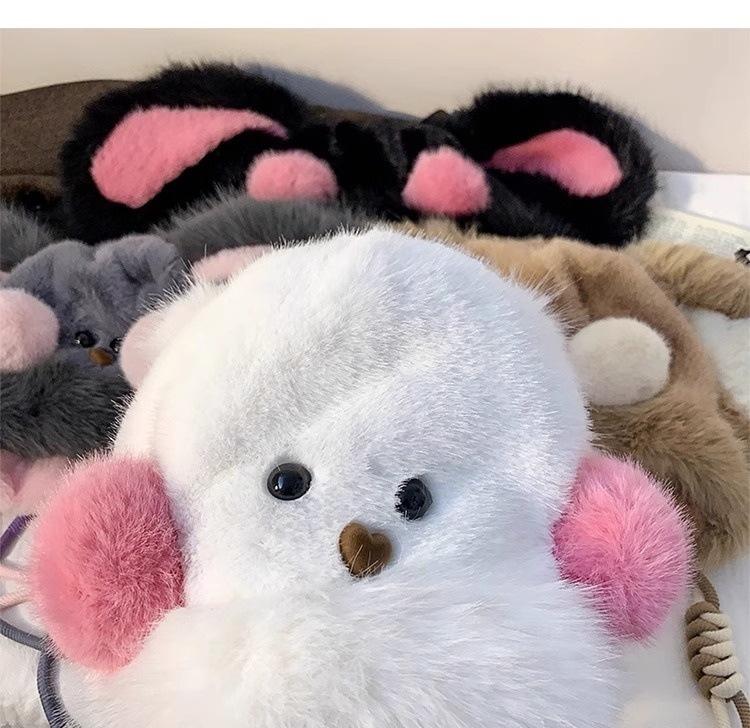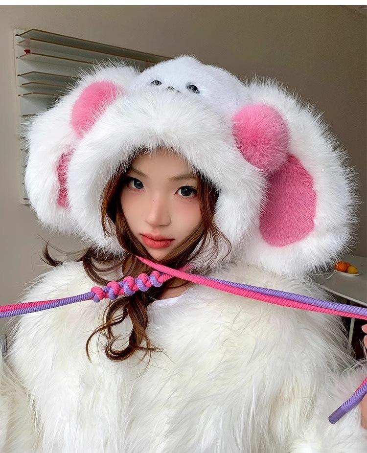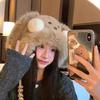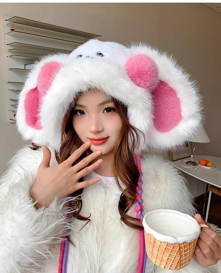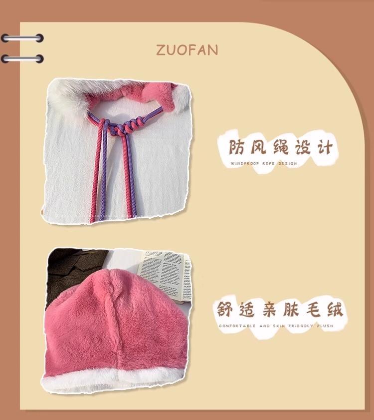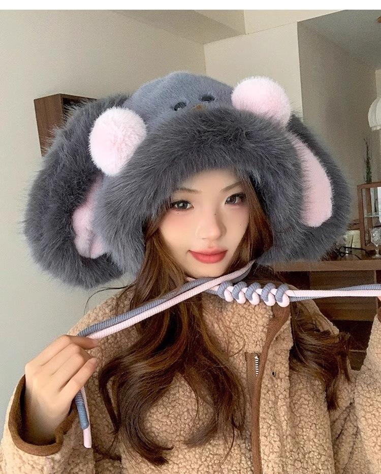 Lindo gorro Lei Feng de peluche con orejas grandes para mujer, cálido gorro de esquí con protección para las orejas para invierno, gorro pequeño con cabeza grande y cara grande.
